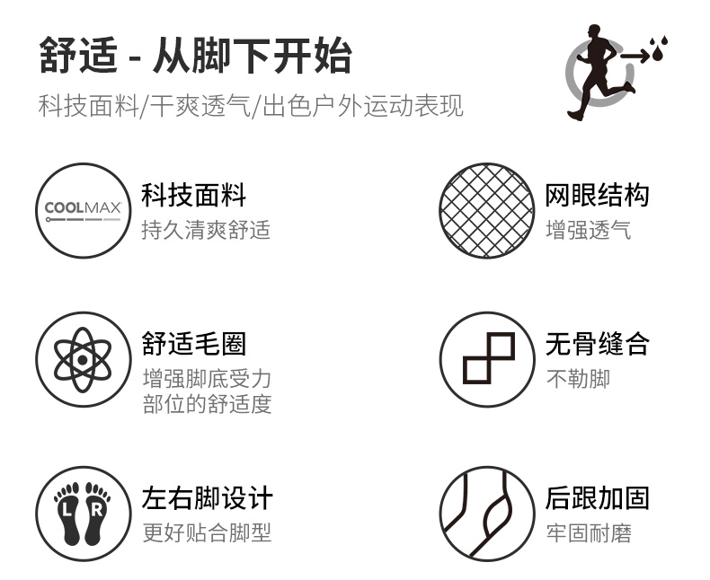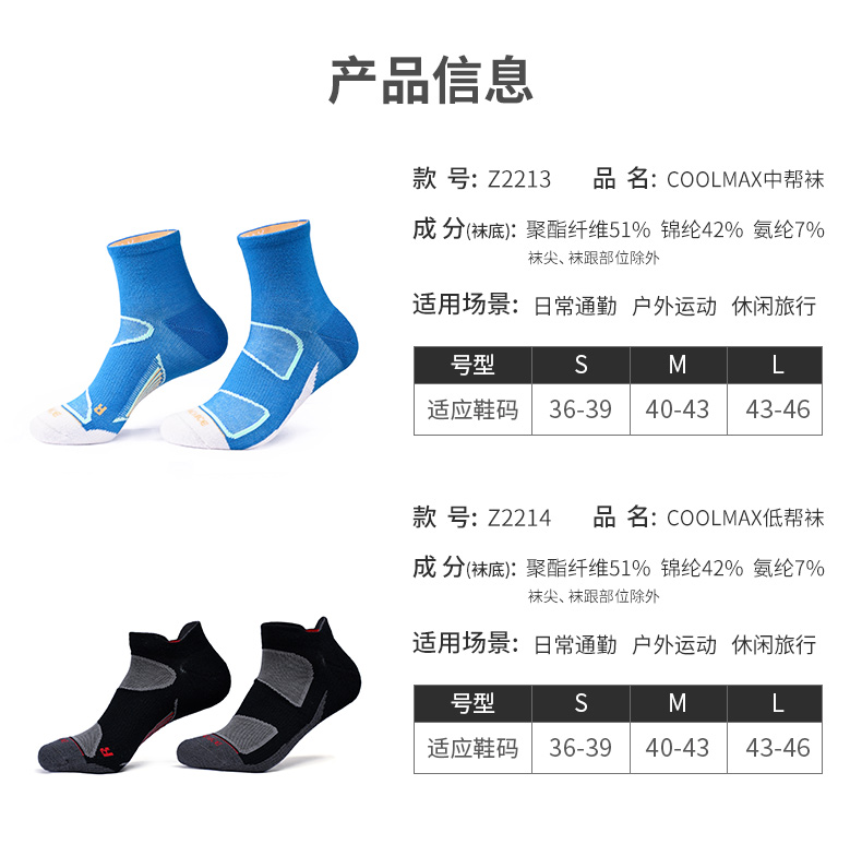 黑冰户外徒步袜CoolMax透气排汗男女款运动登山袜子2213