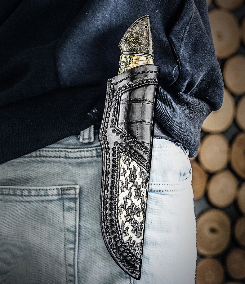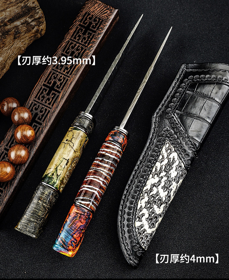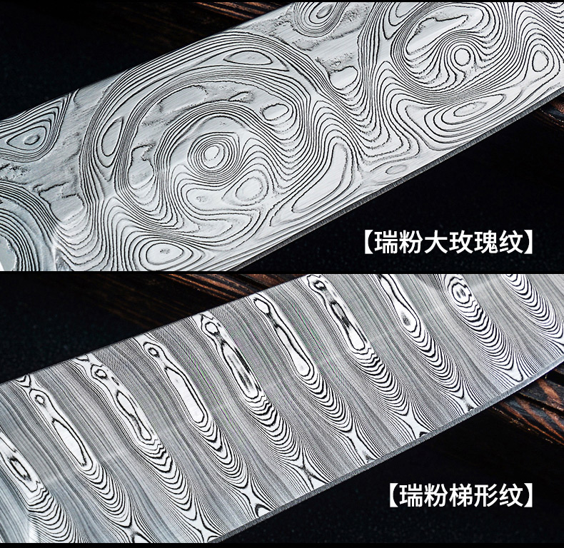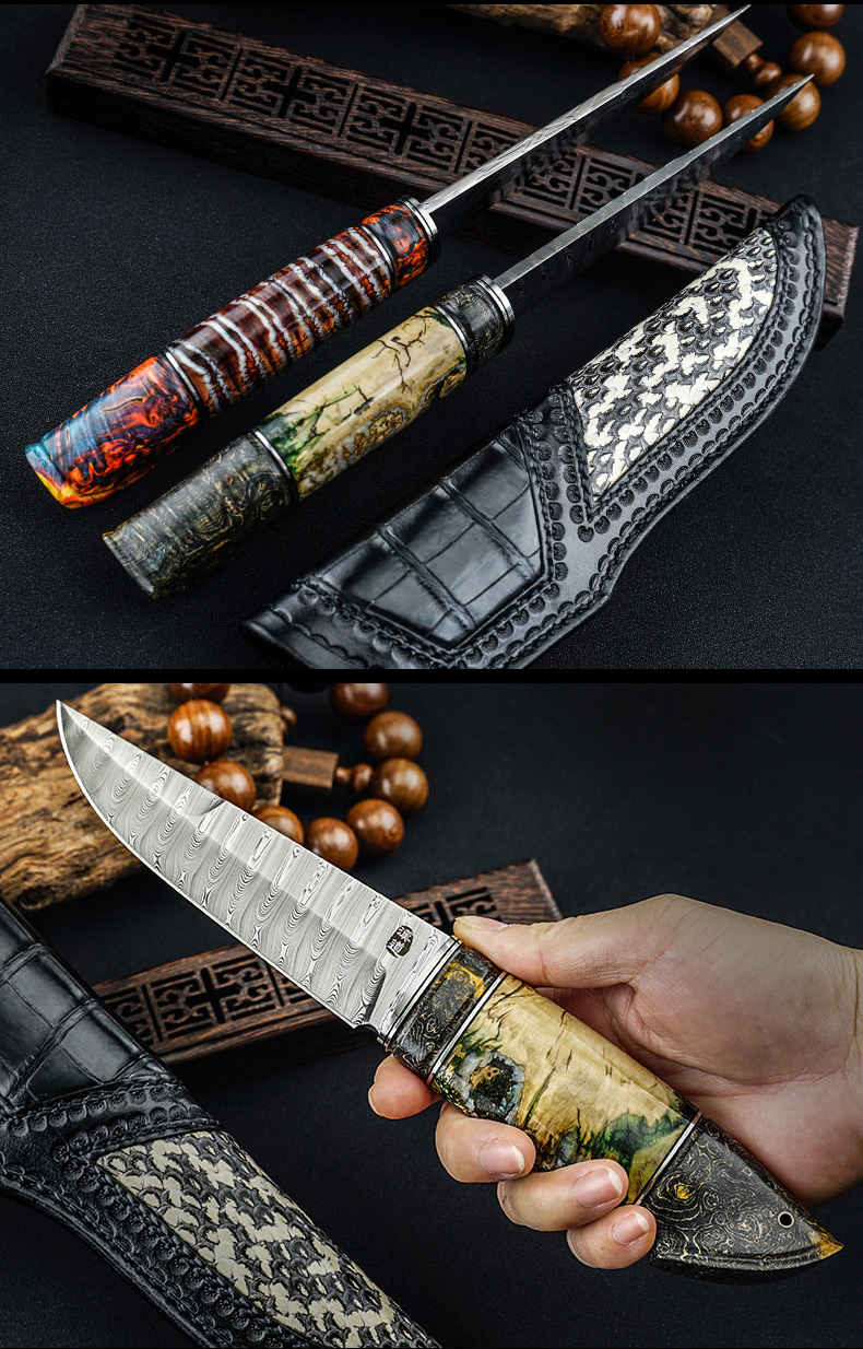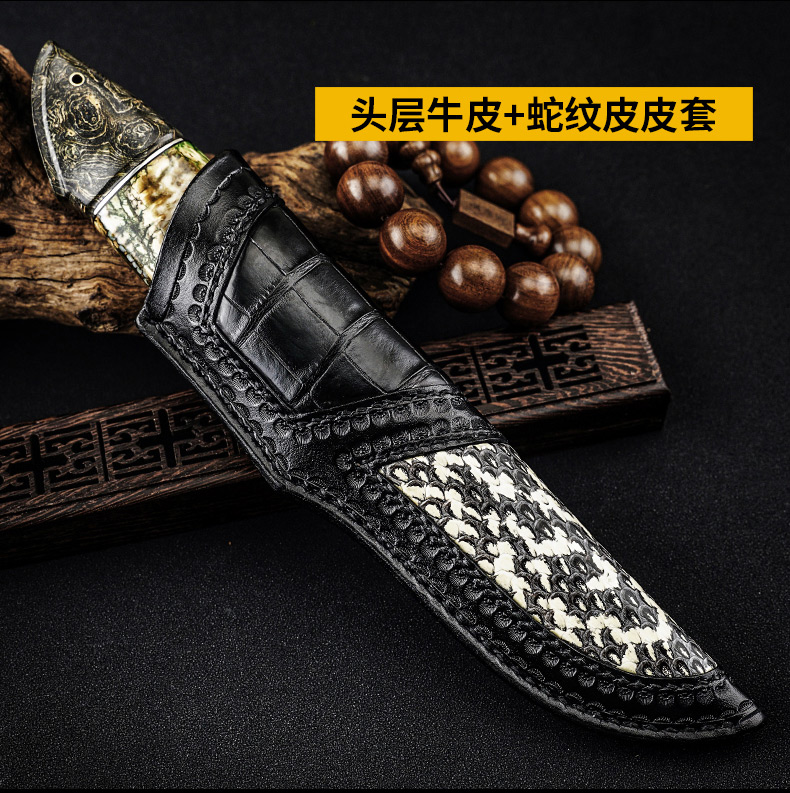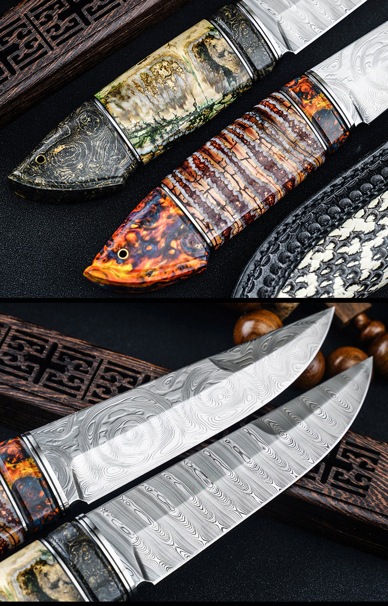 汉道【灵峰直刀】瑞粉大马士革纹钢手工直刀猛犸化石手柄收藏刀