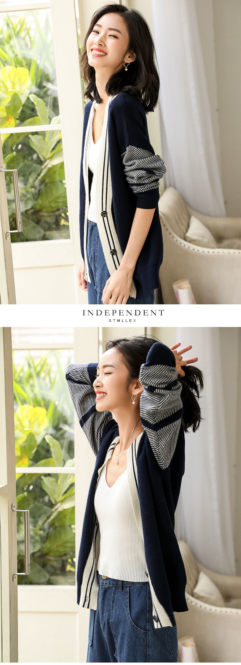 秋装女开衫中长款宽松针织衫打底毛衣休闲外套搭慵懒风女上衣