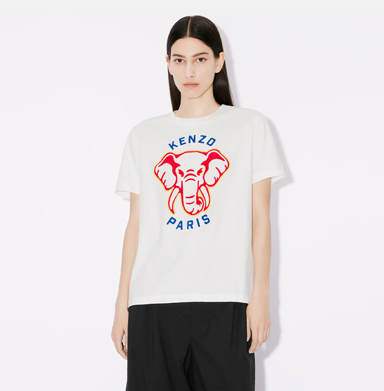 KENZO 高田贤三 女士大象徽标印花棉质圆领短袖T恤 白色 FE52 TS114 4SO 02
