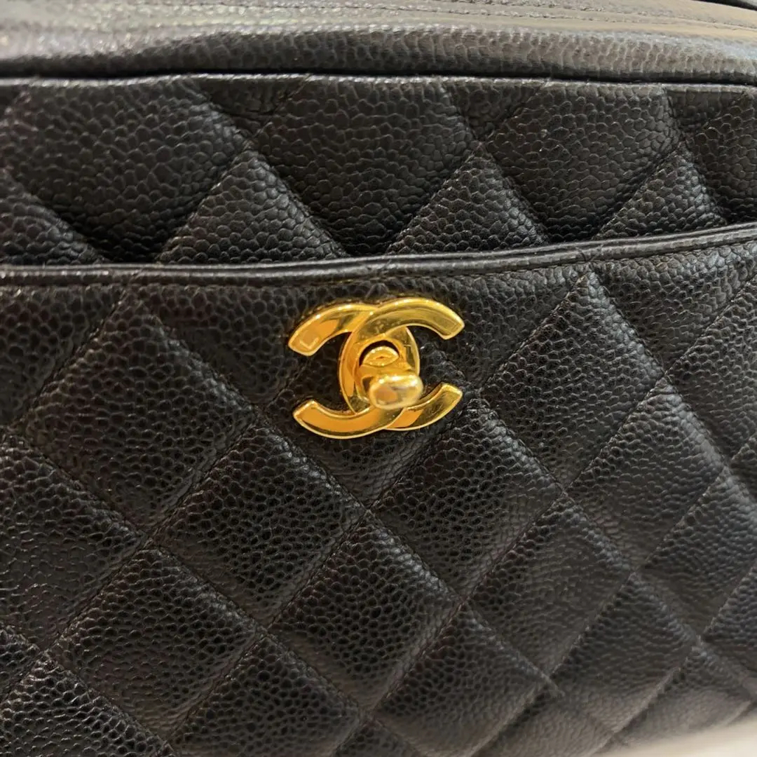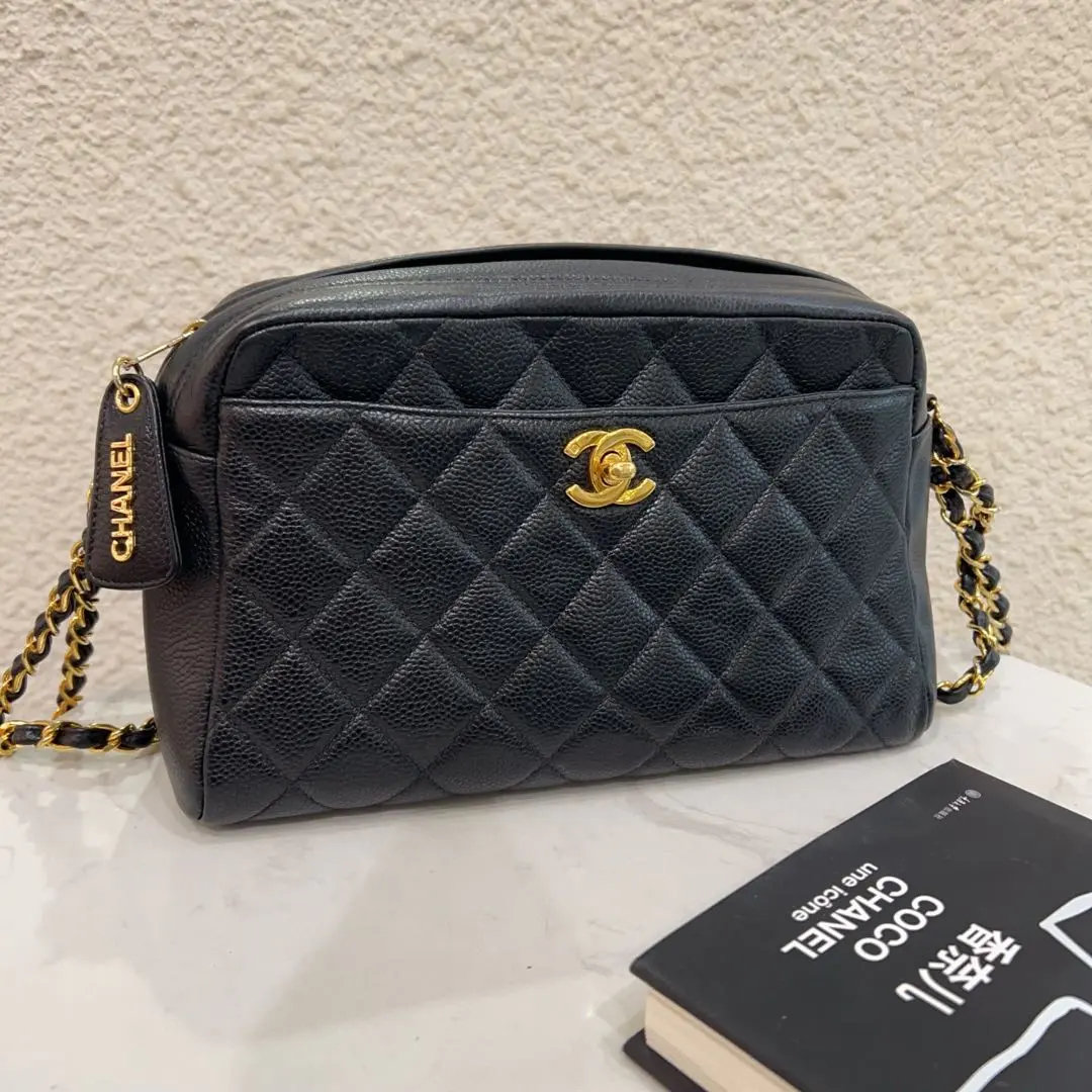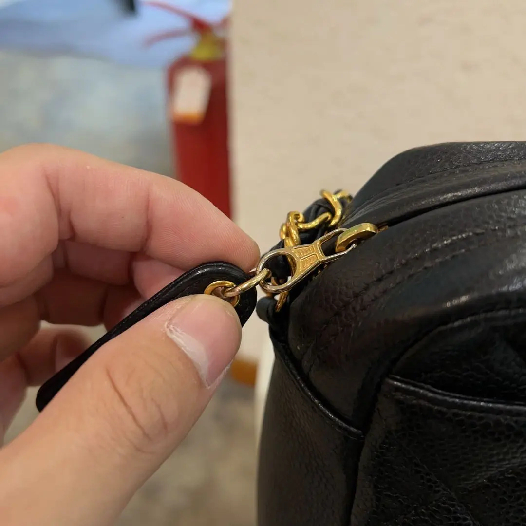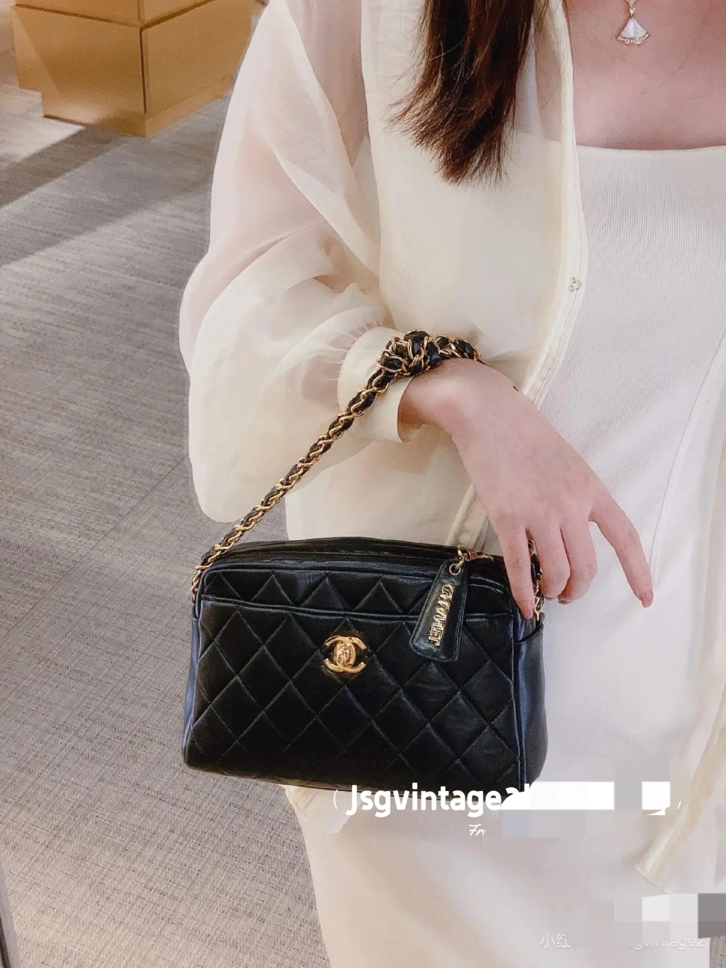 正品二手 Chanel vintage 中古 牛皮 黑金 打结 双股链条 相机包🆚97新 26*16 镭射3开。 难得成色很好的中古包