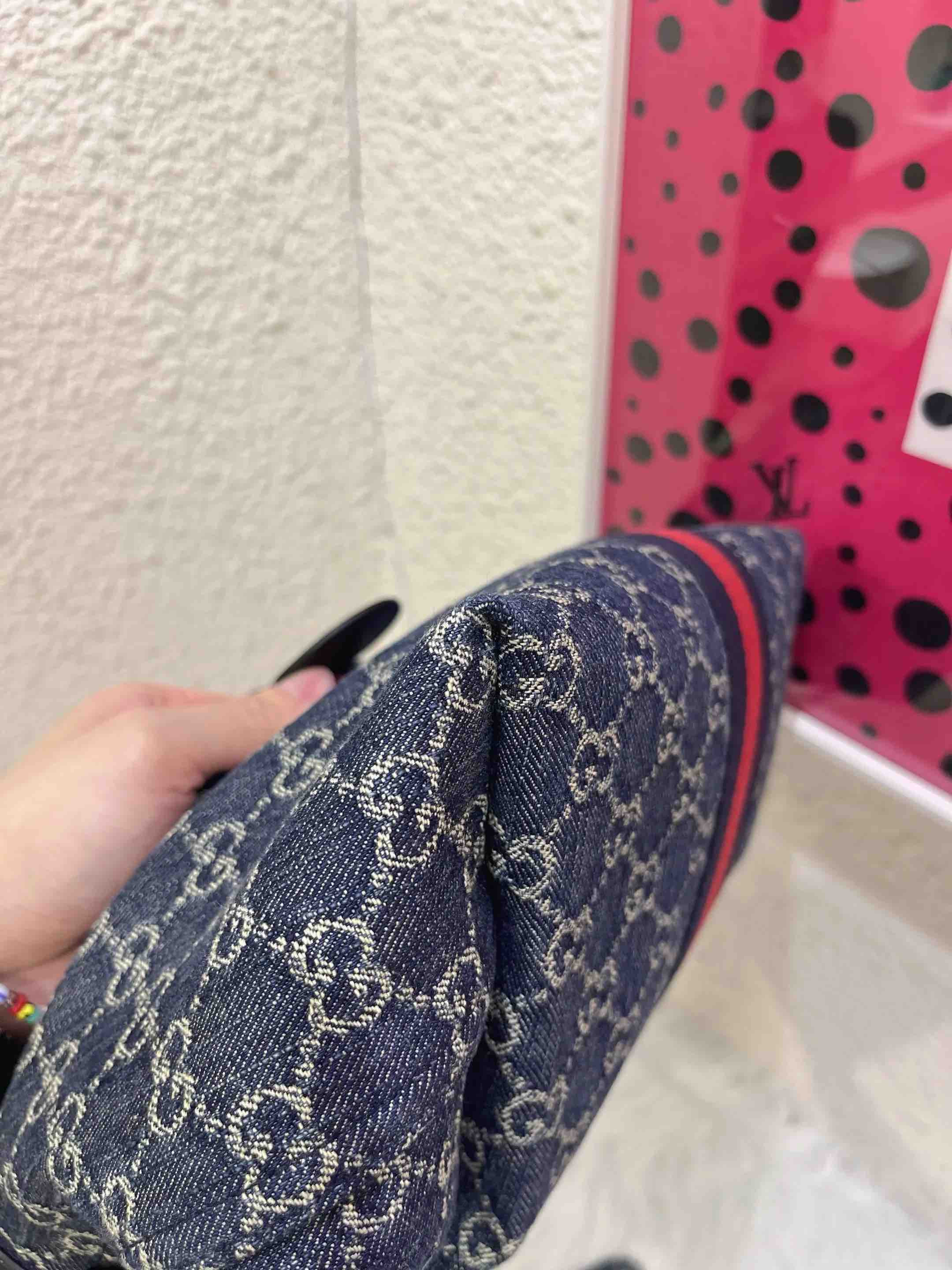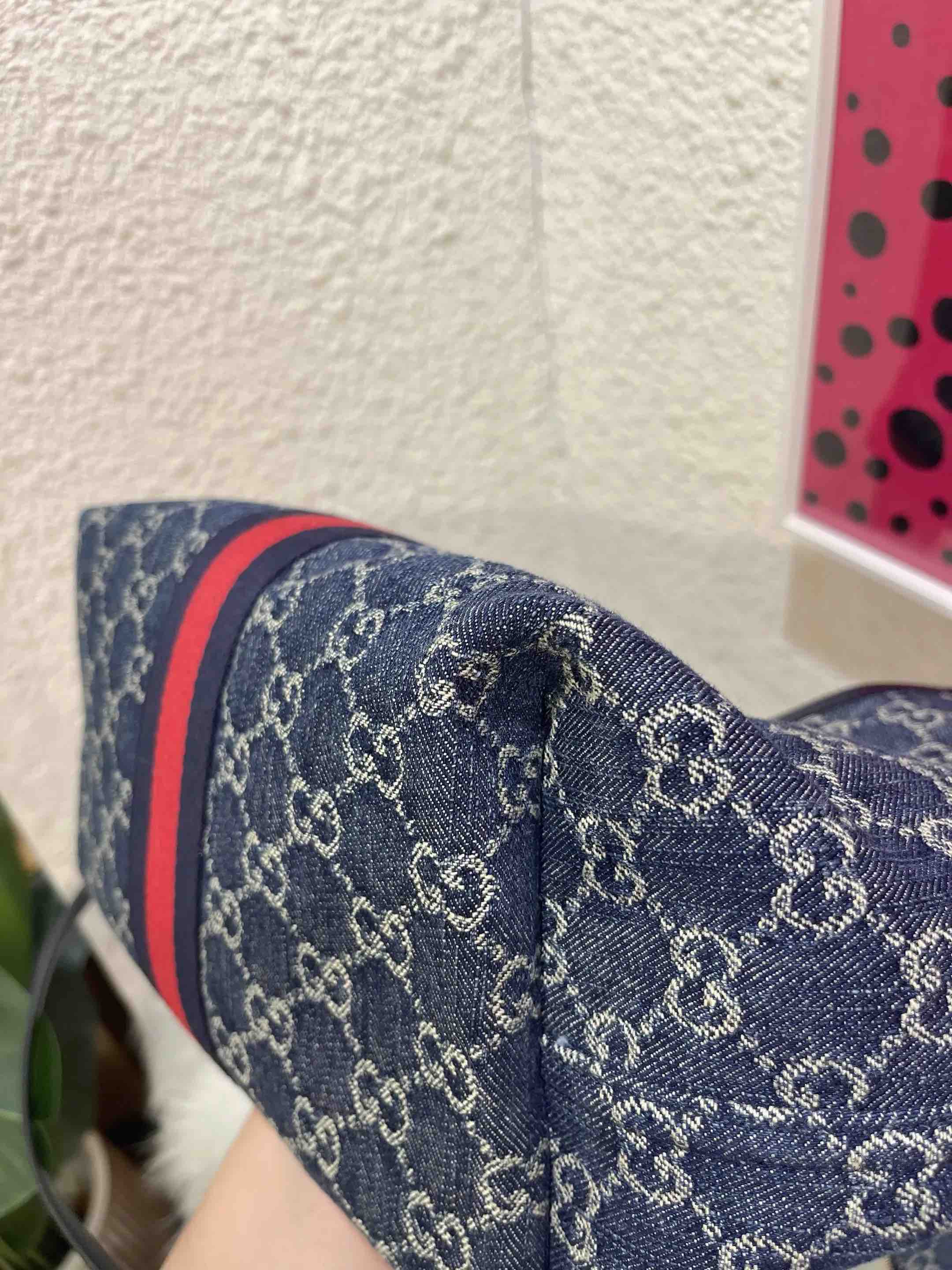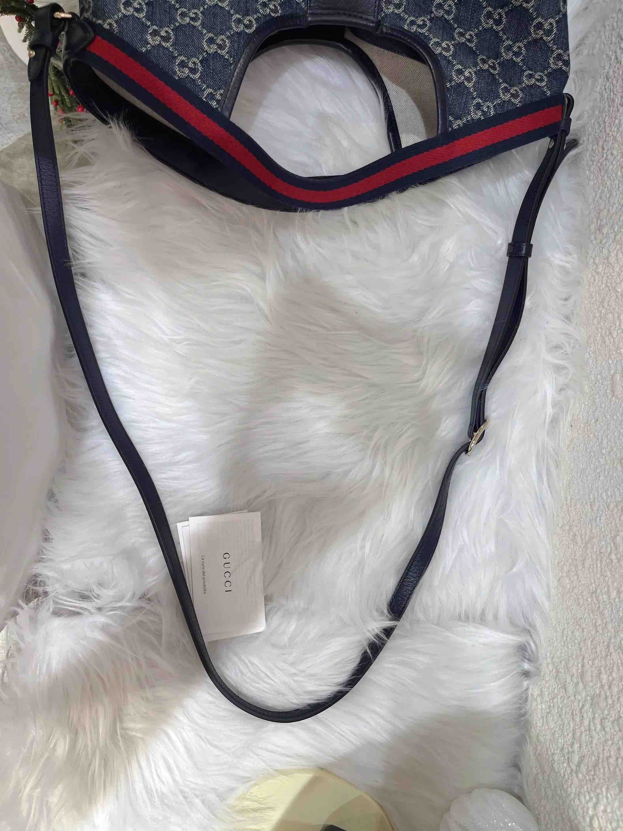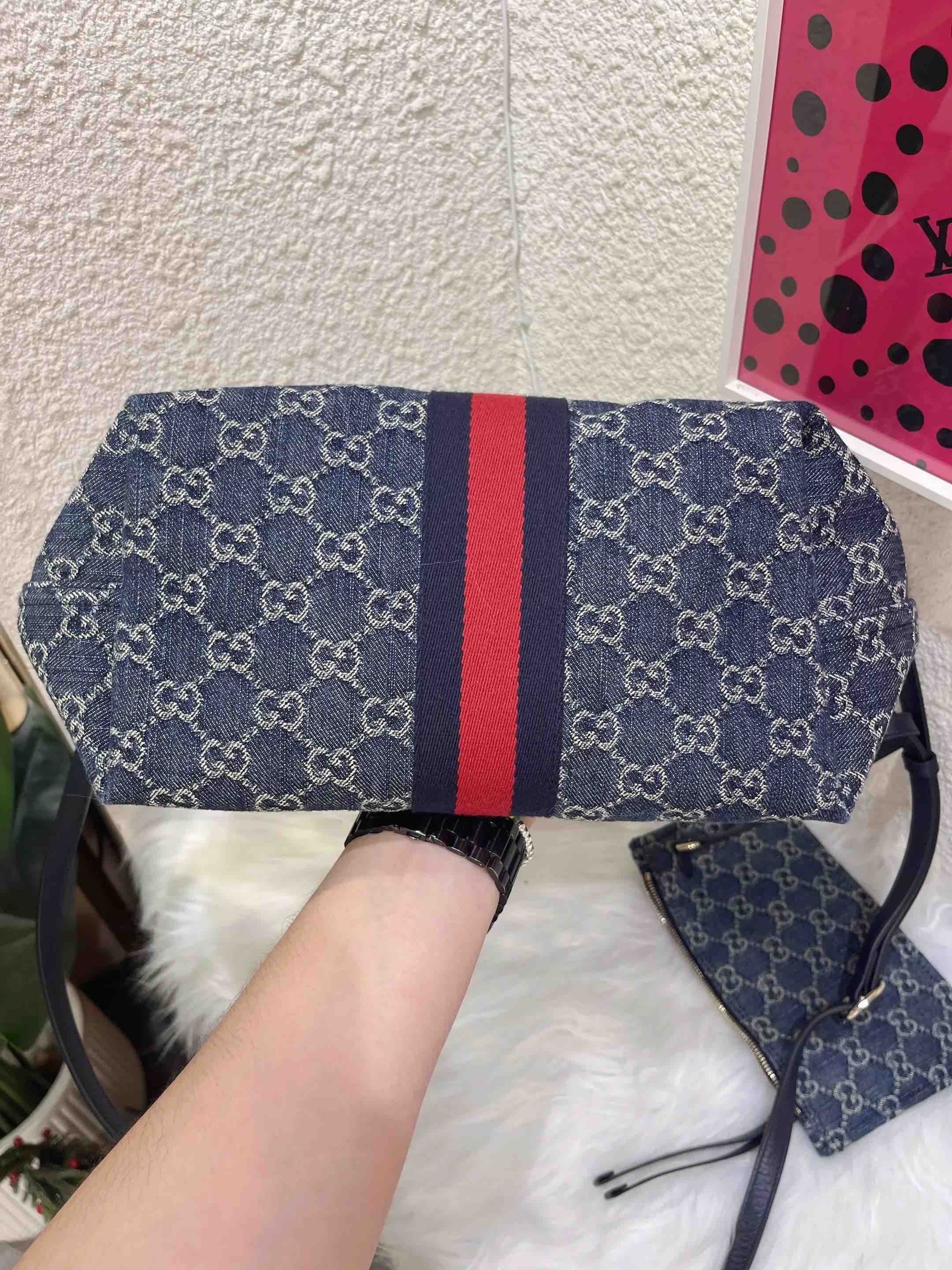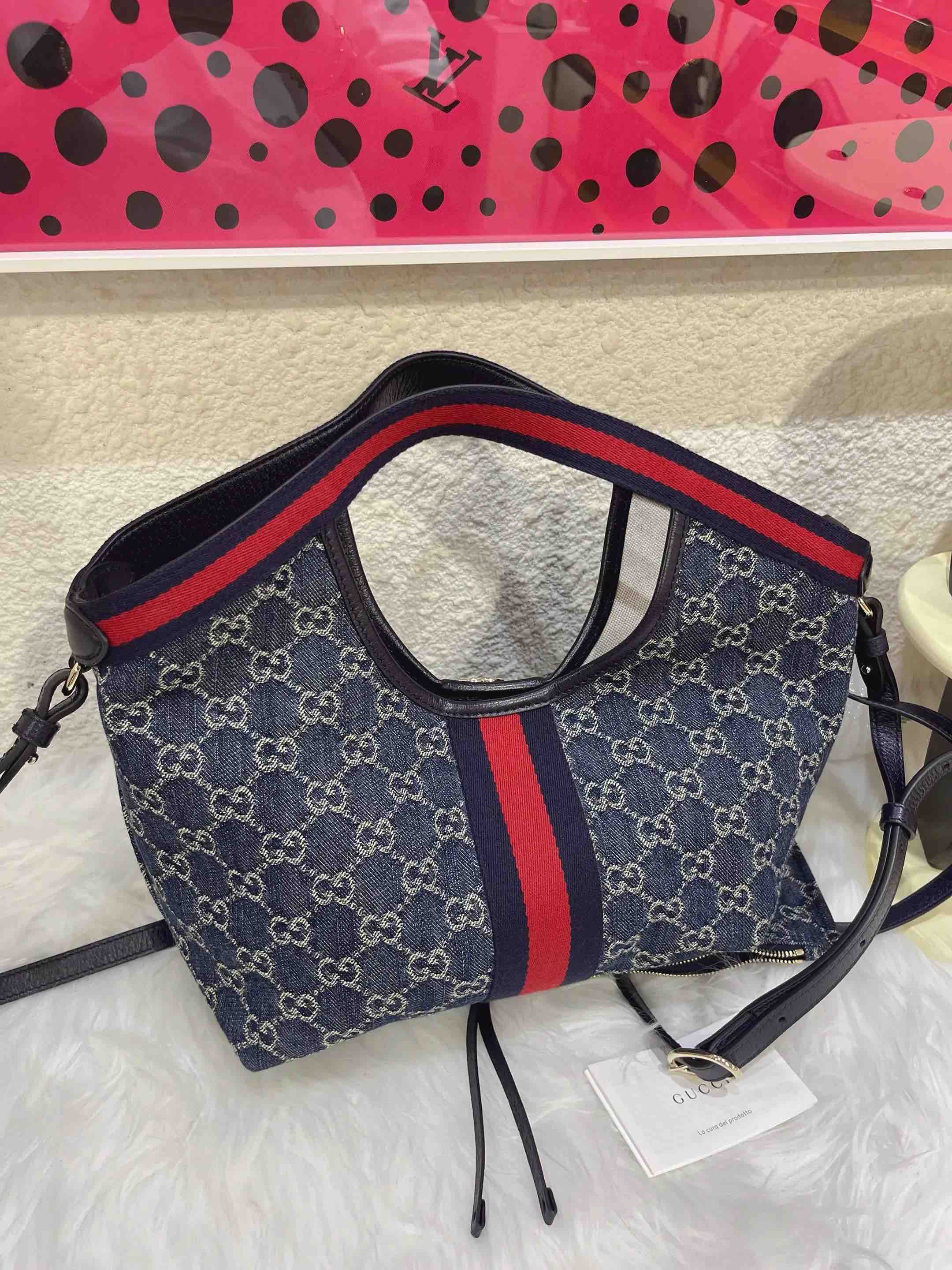 【商品详情】正品二手 GUCCI Giglio 小号 丹宁 蓝色 托特包🤎98 新 24×17 配件:说明书 子袋 肩带。田曦薇同款Giglio‼️入手持续爱ing~