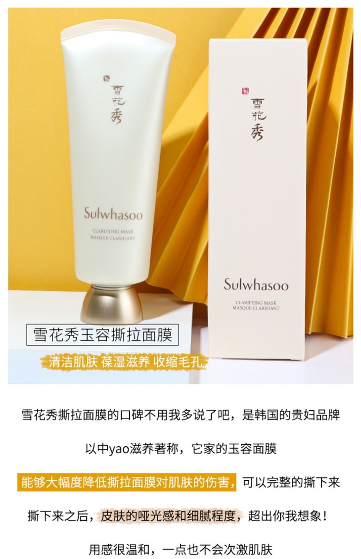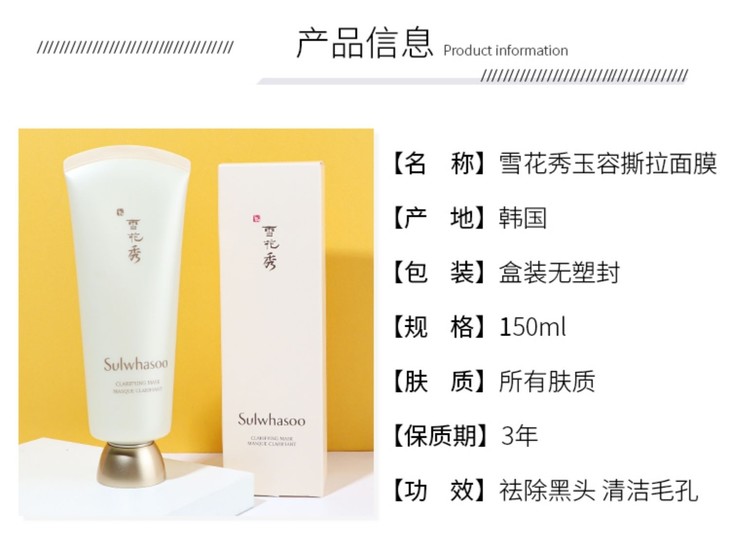 雪花秀玉容面膜150ml撕拉式去黑头清洁收缩毛孔去角质