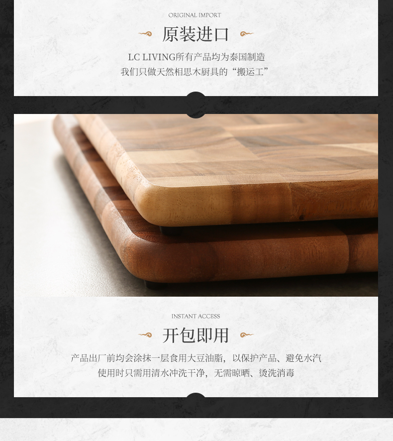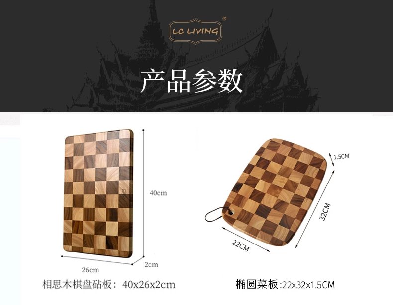 【品名】泰国进口Lc Living相思木棋盘格切菜板不发霉砧板加厚加大案板