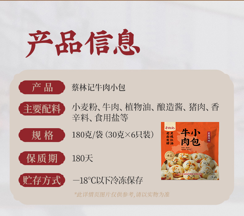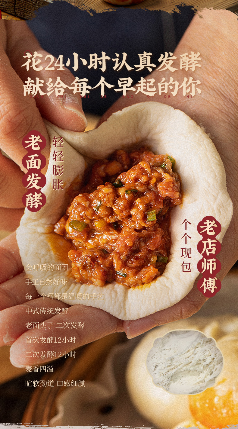 【京东快递】蔡林记手工老面包子180g*6袋(送火烧馍1袋) 早餐宵夜加热即食