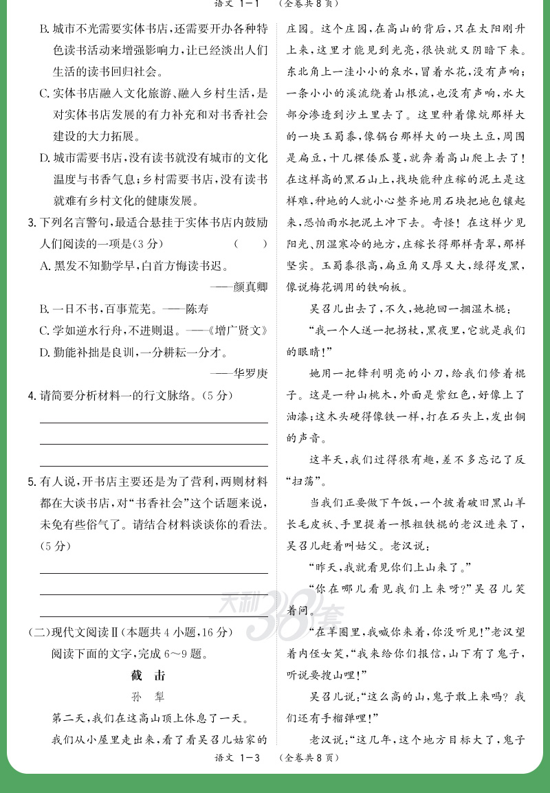 天利38套 2026高中名校期中期末联考测试卷 语文 数学 英语 物理 化学 历史 政治 生物 地理