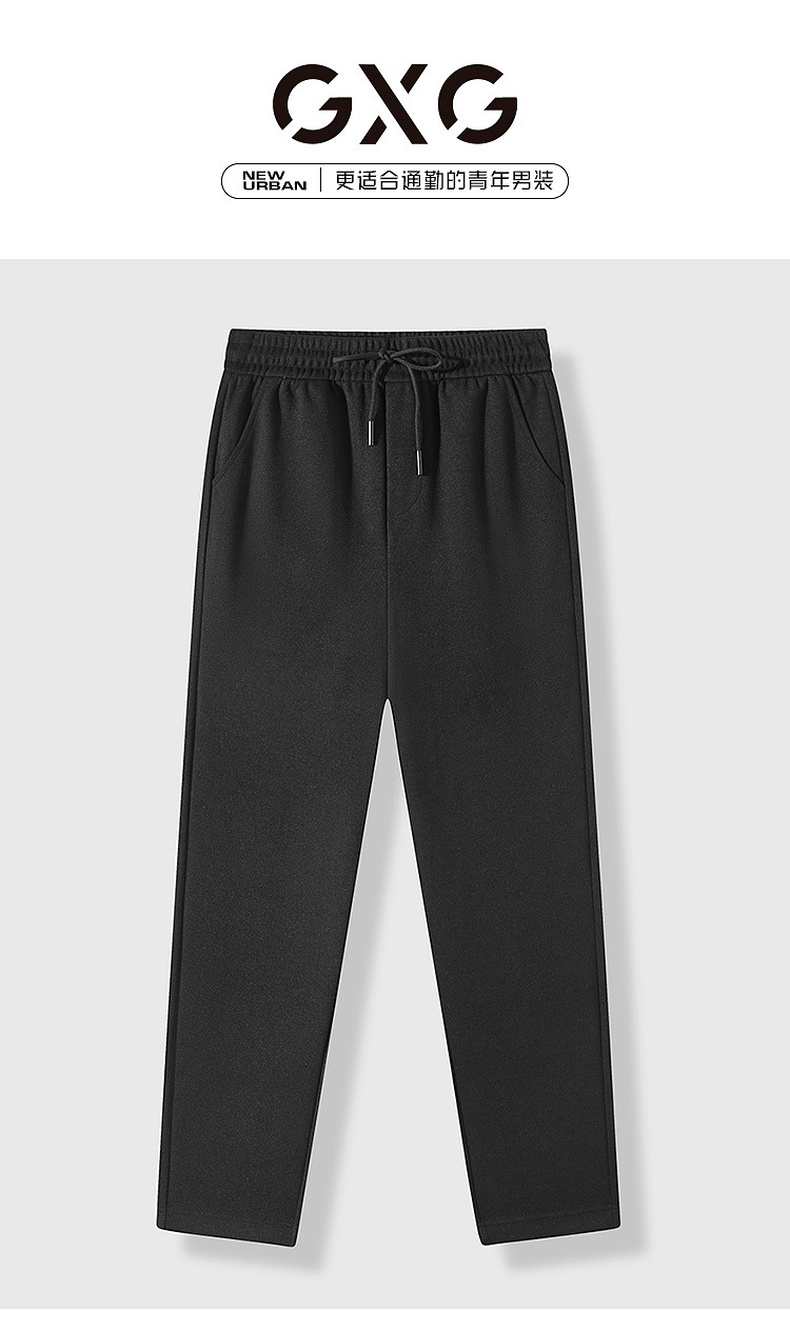 GXG男装冬季简约纯色百搭男士直筒休闲裤舒适保暖长裤K&C