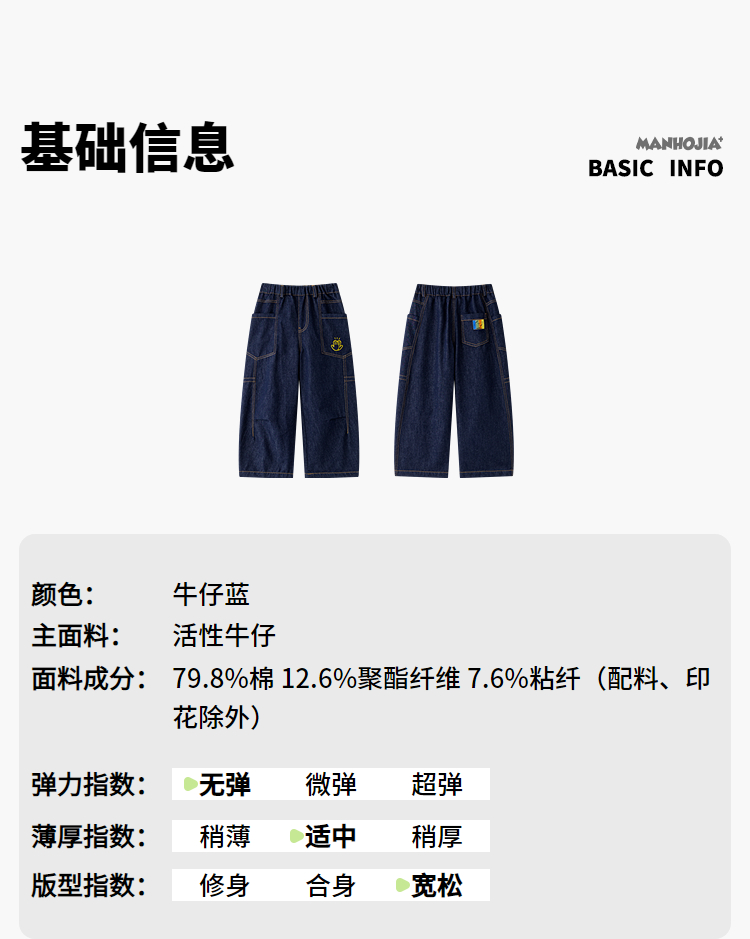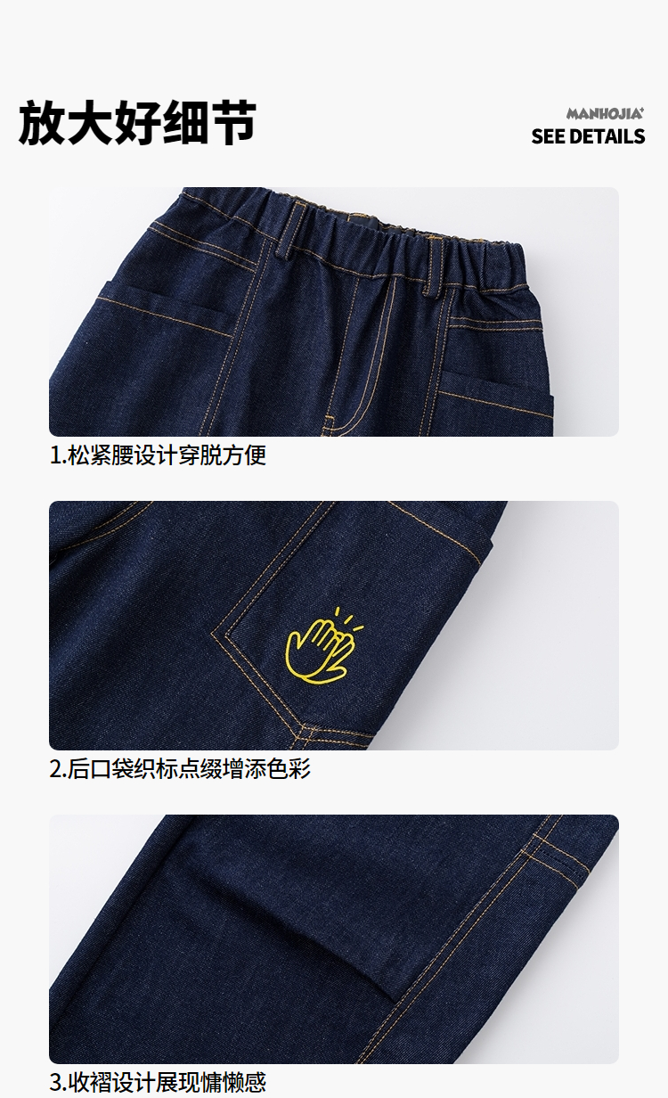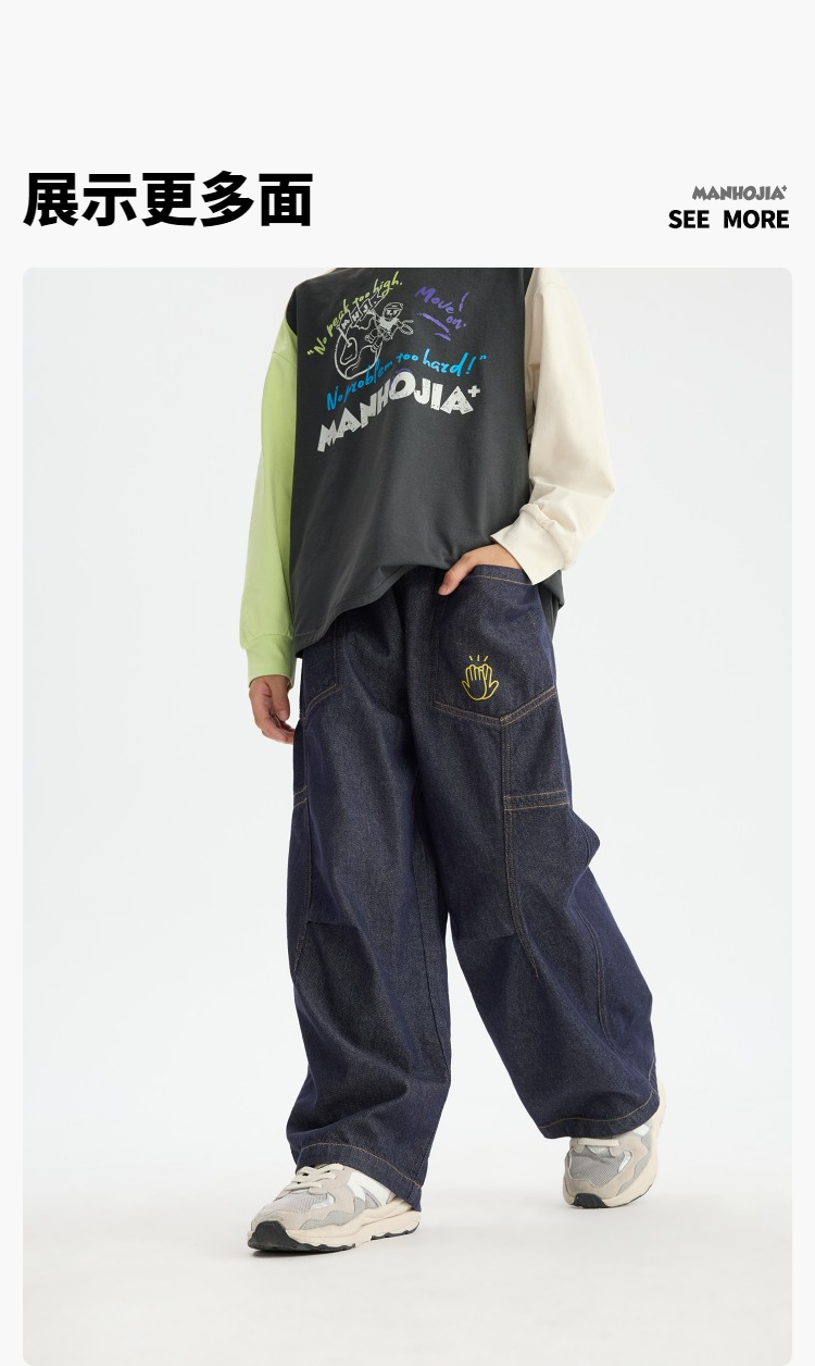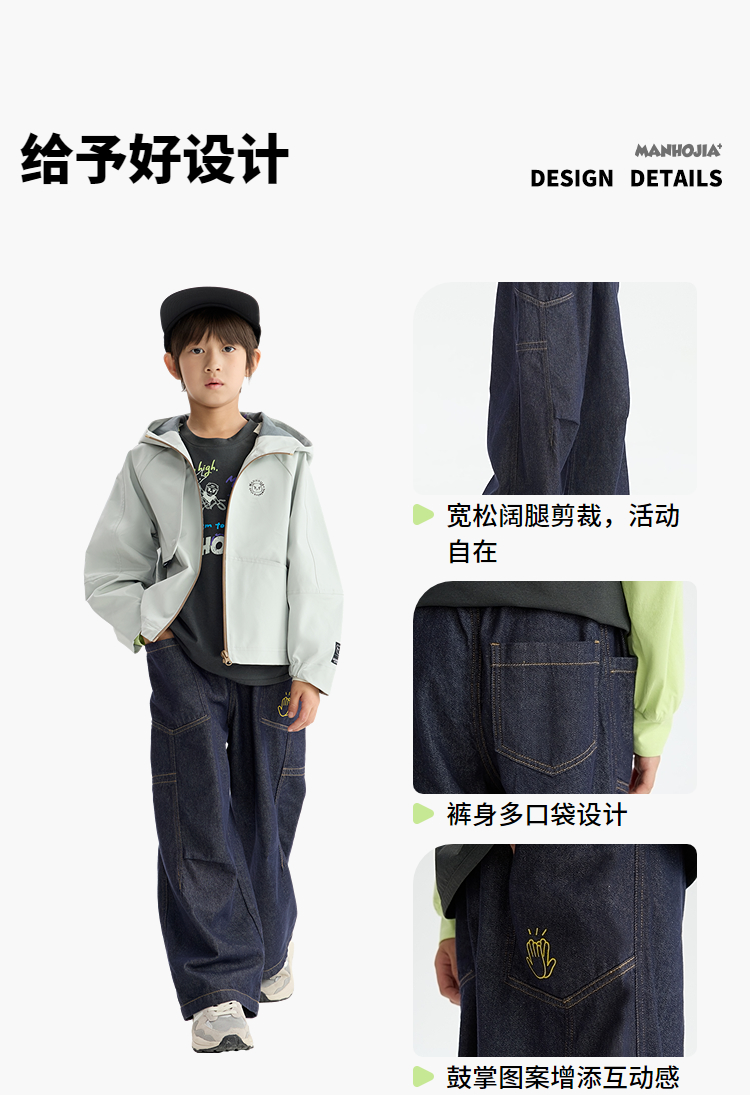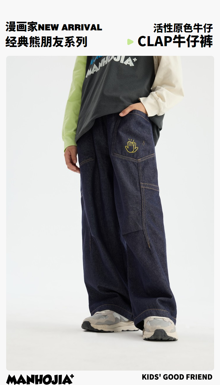 漫画家【CLAP牛仔裤】儿童牛仔裤原色宽松多口袋工装阔腿裤男女童