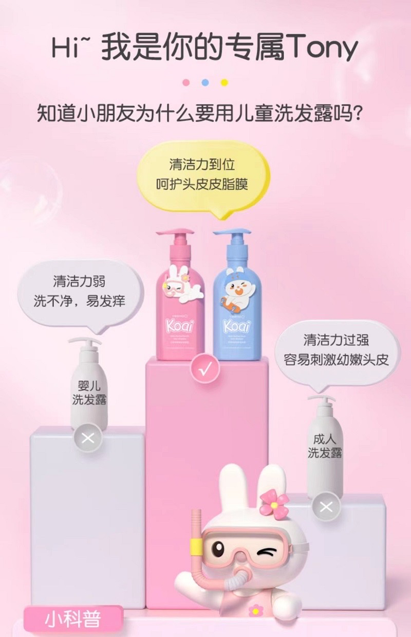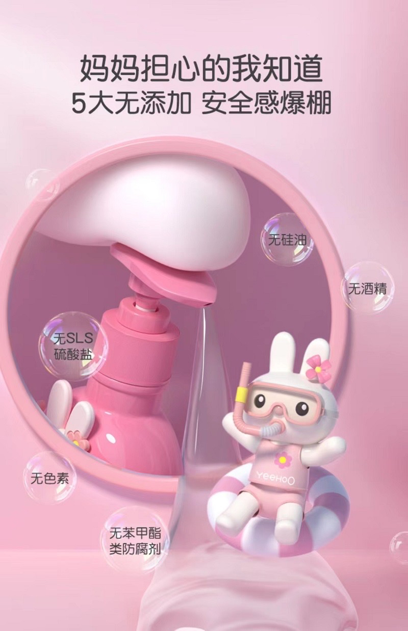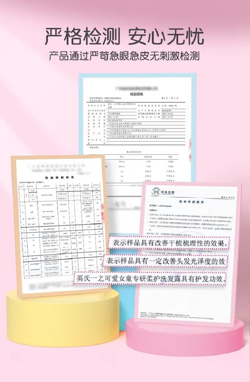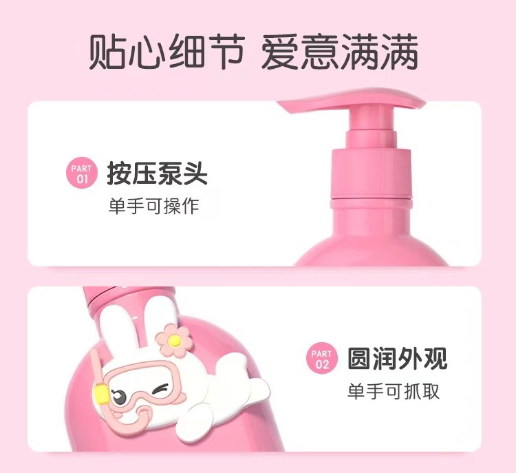亲和配方,柔和清洁头部发丝,泡沫细腻绵密,洁净后发丝清爽舒适,根据男女童发质特点不同配,男女分开使用,男童配方洗后清爽不油腻,女童洗后顺滑不打结