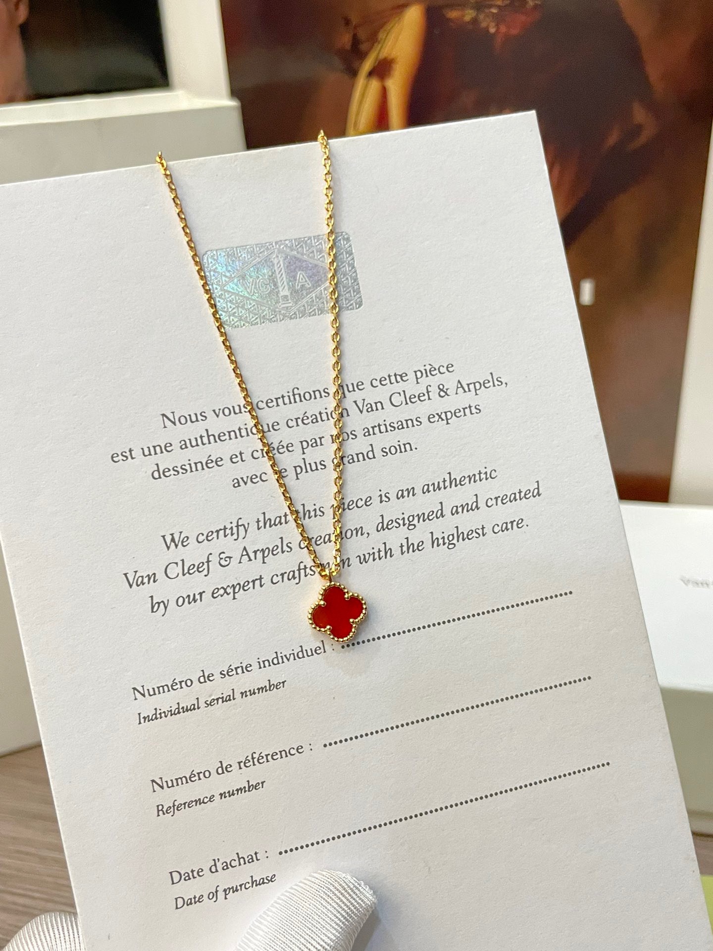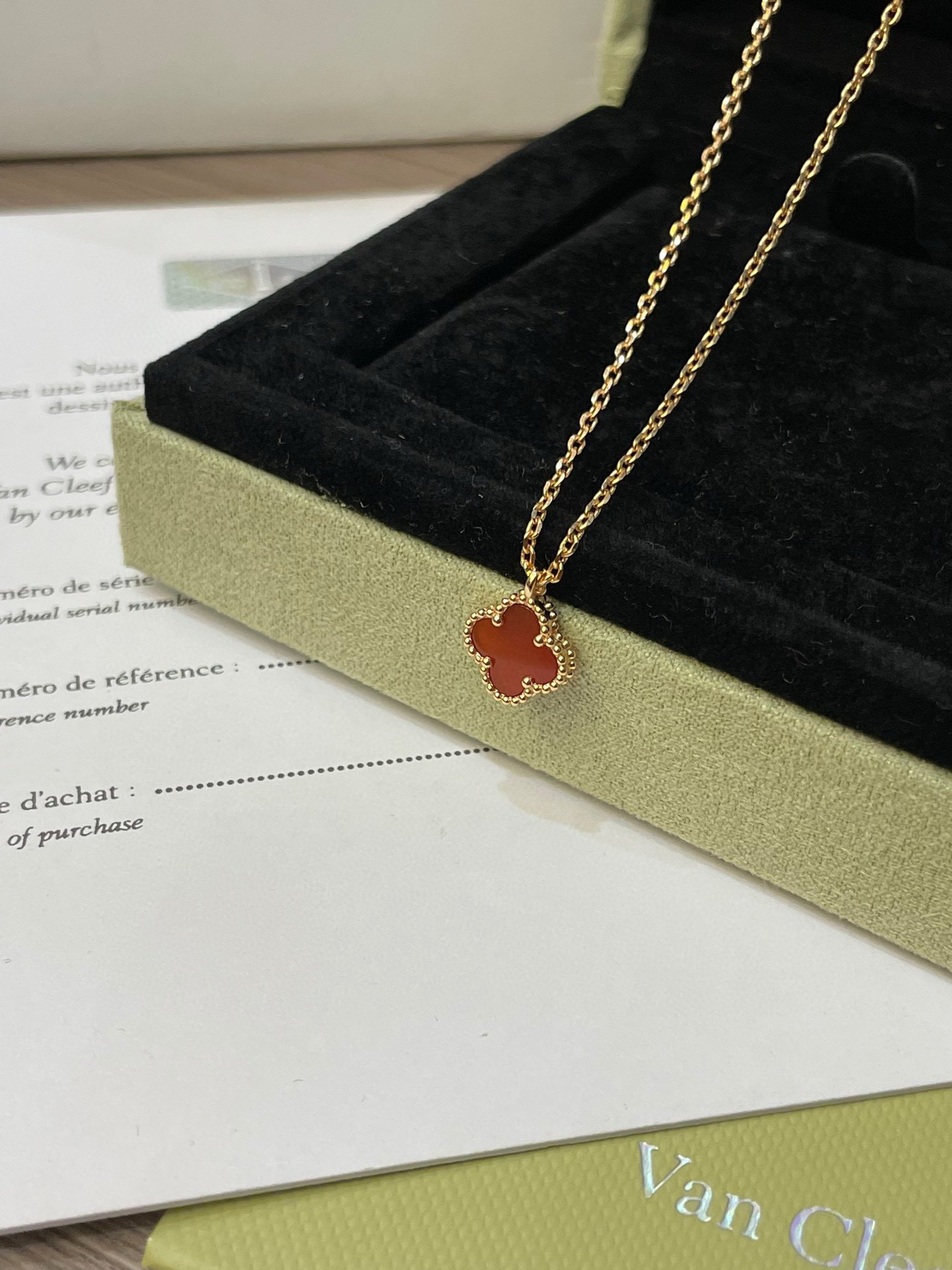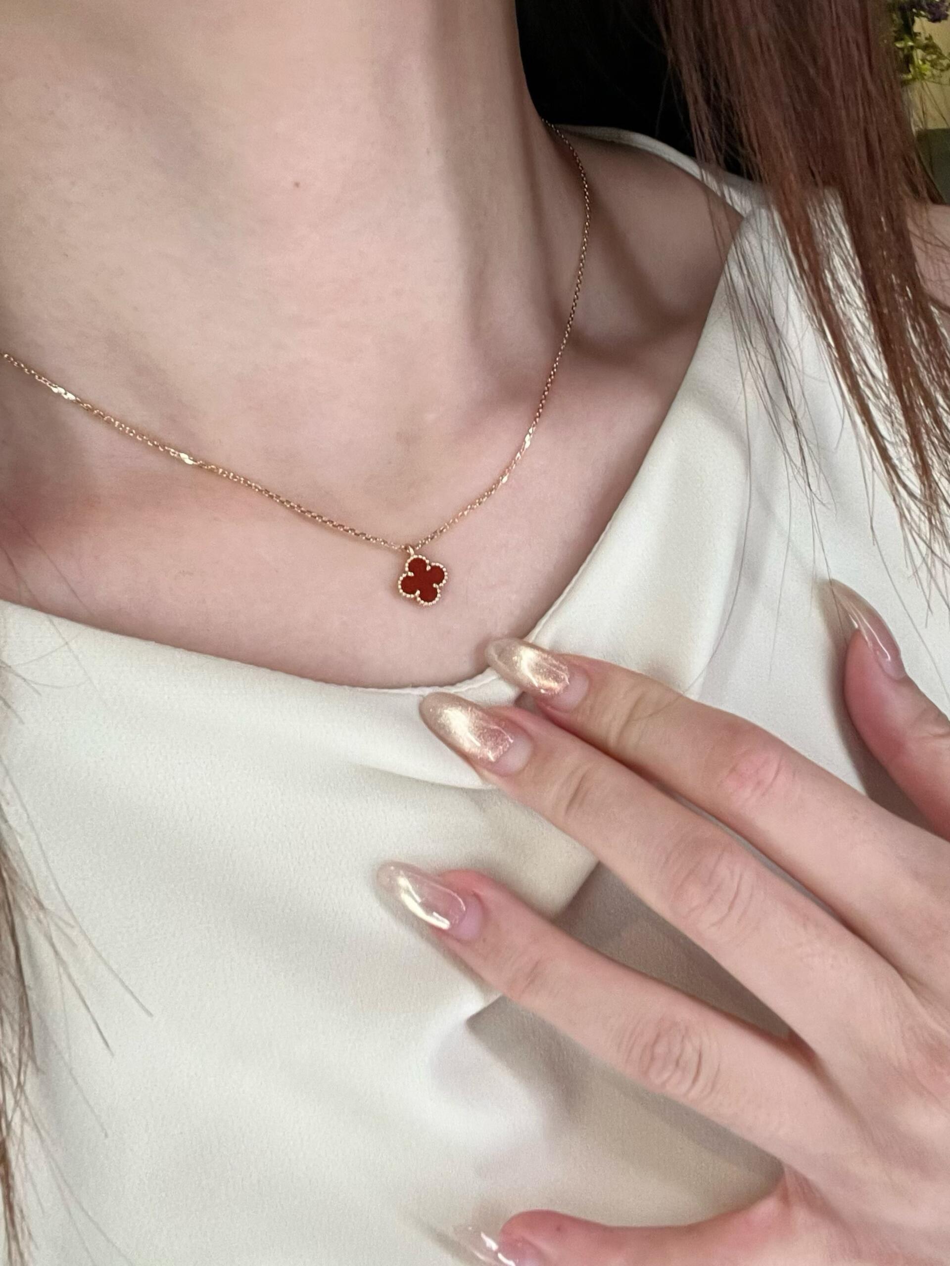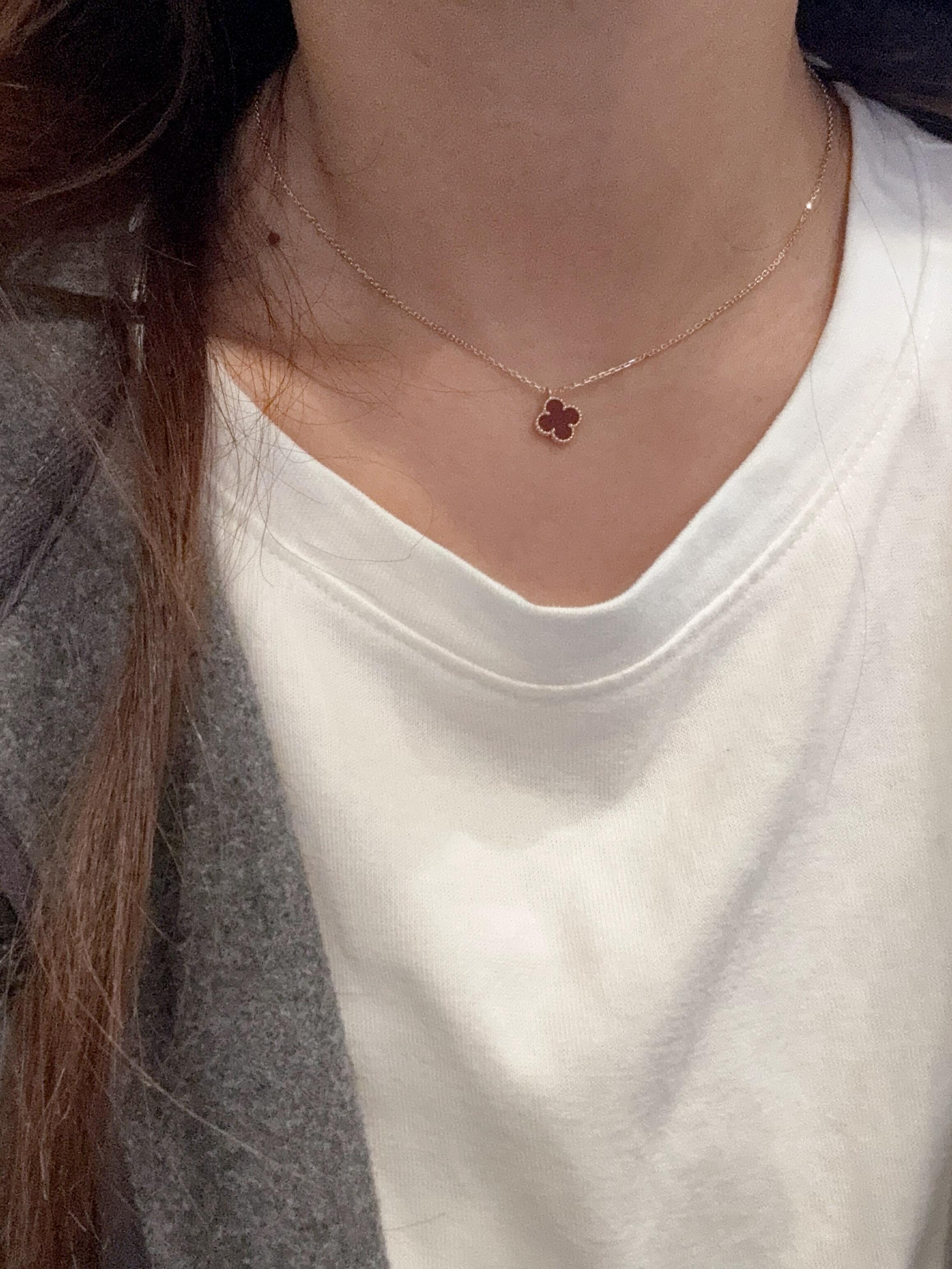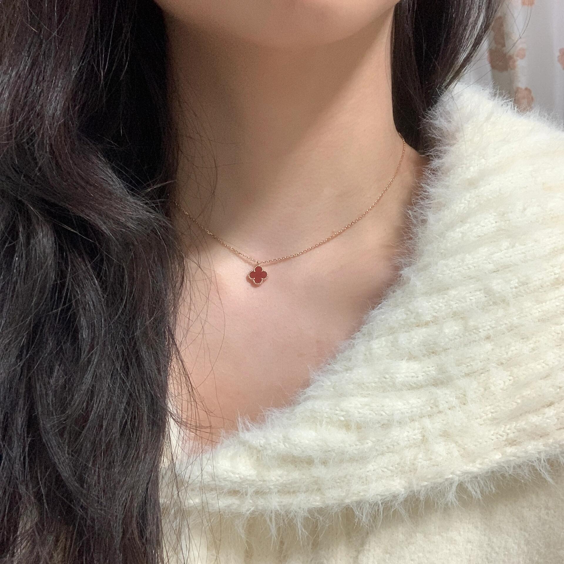V金版【Z品定制级 1:1钢印 】VCA 梵克雅宝mini小号四叶草项链 红玉髓风水玄学 提升人脉 红色的四叶草是幸运 、财富的象征 气质与优雅,带上就摘不下来系列