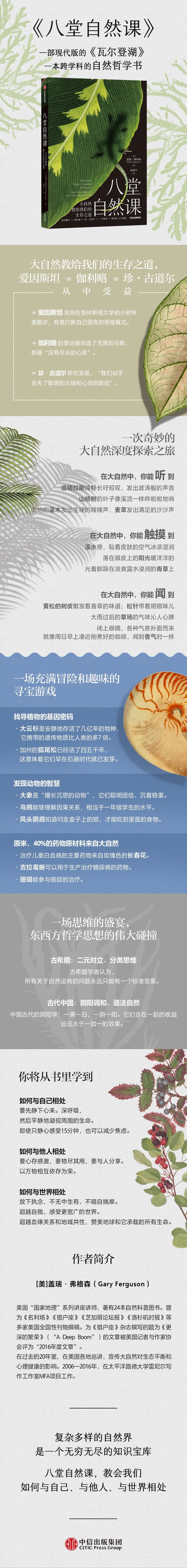 1. 《八堂自然课》是一部现代版的《瓦尔登湖》,一本跨学科的自然哲学书,《道德经》“道法自然”的美国解读本。