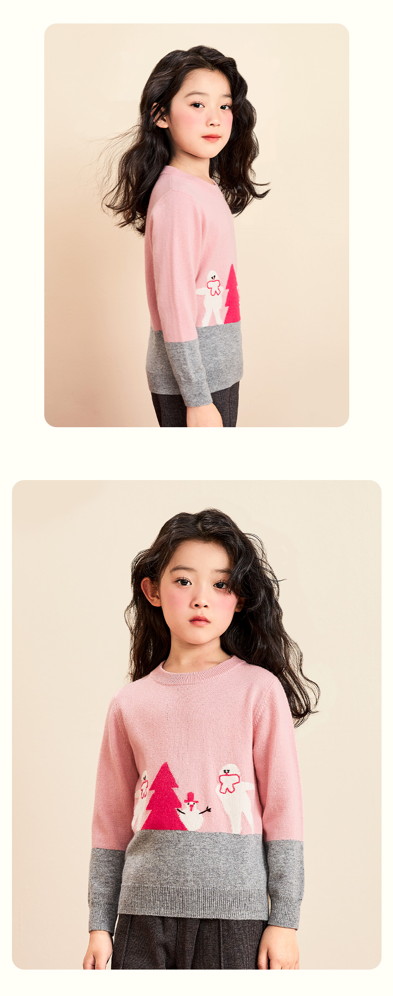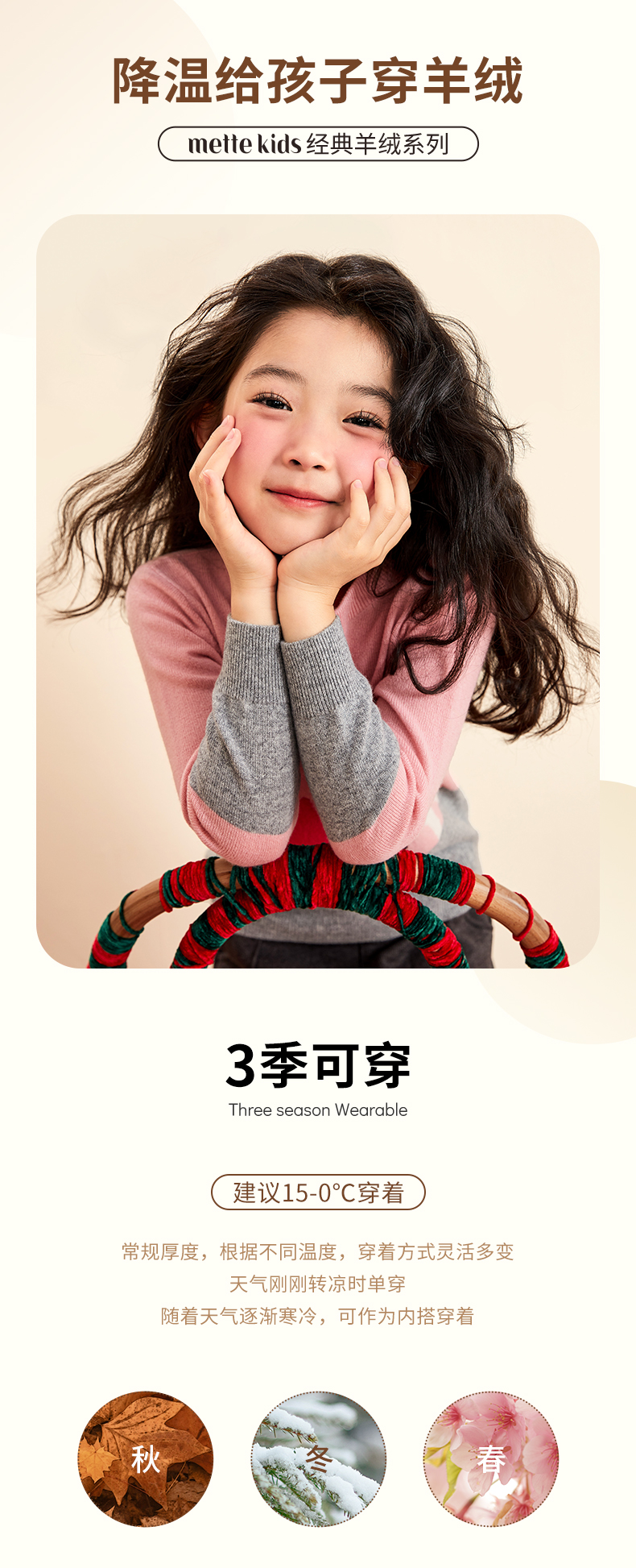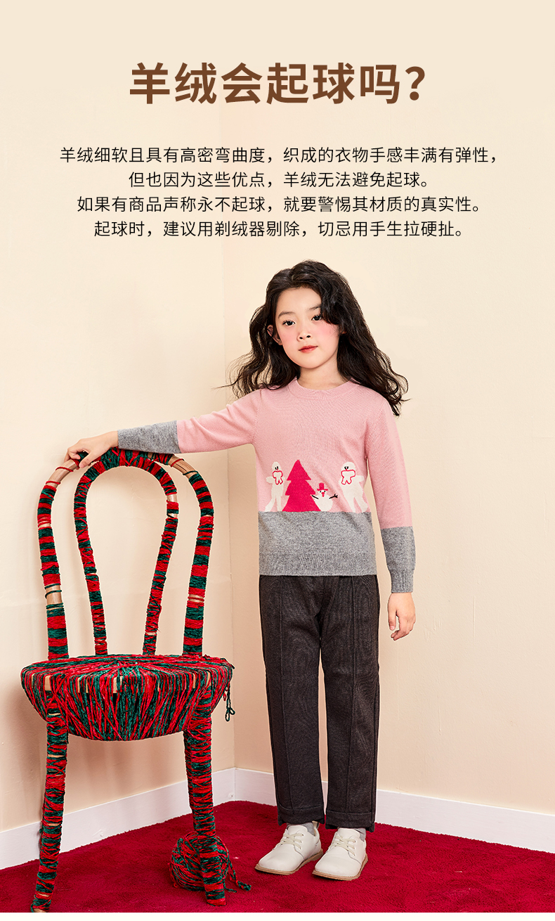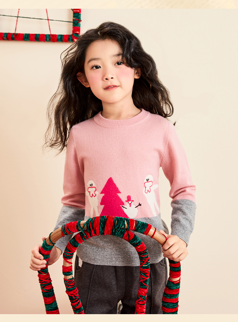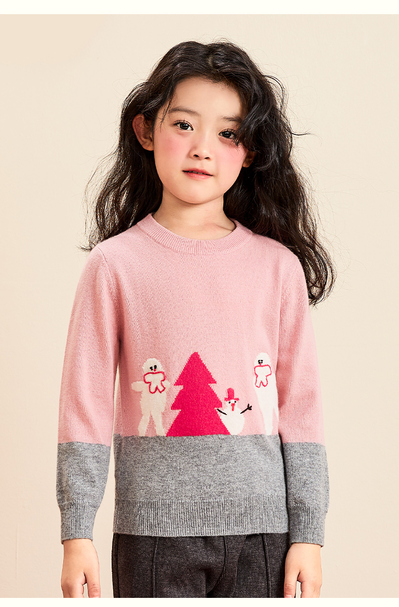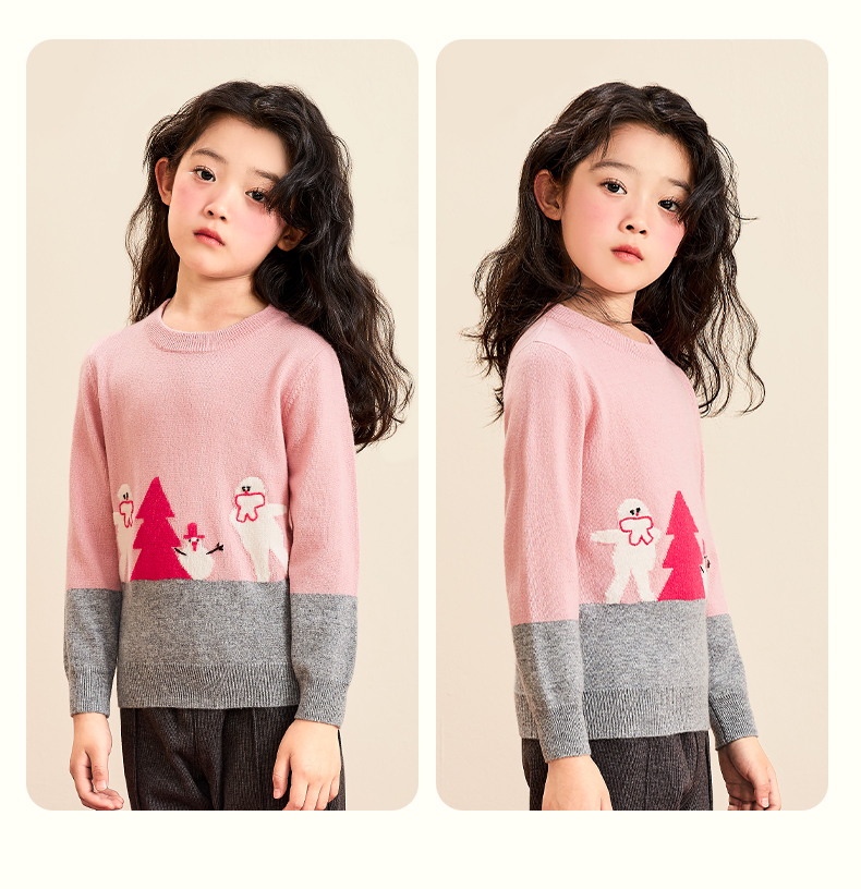 mettekids女童羊绒衫春秋季中大童打底衫针织衫儿童圆领洋气毛衣