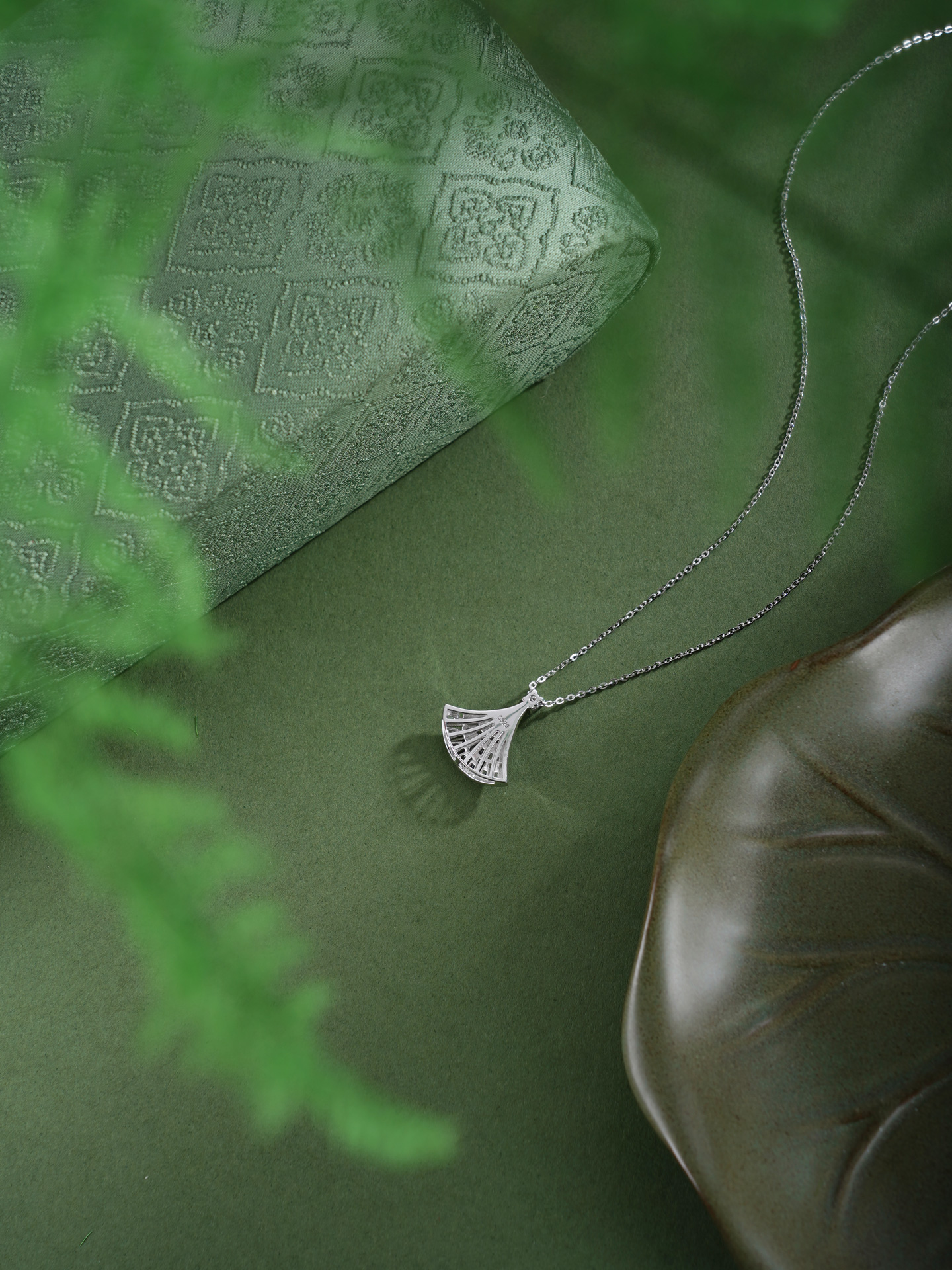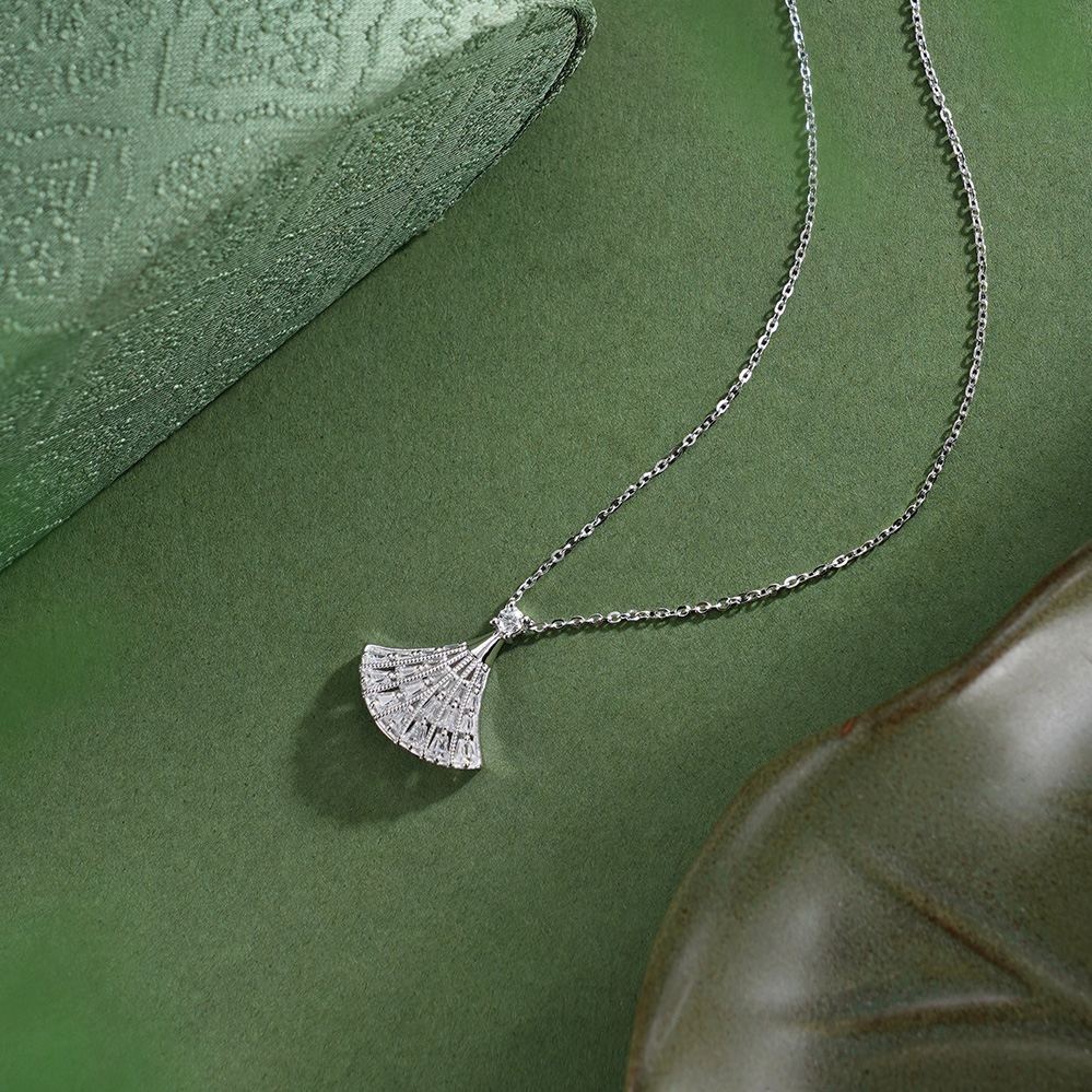 【寓意】:纯银银杏叶吊坠,如飞扬裙摆,舞动之姿喻示生命活力,寓意在时光中绽放从容光华。