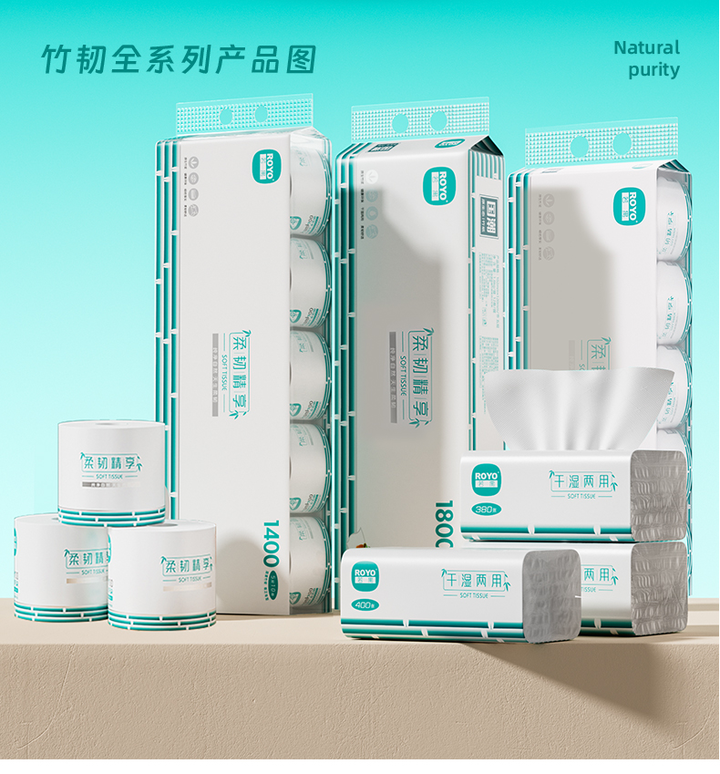 若禺软抽纸国潮竹韧系列5层加厚380张/包原生竹浆干湿两用柔韧亲肤1件40包 RR1406