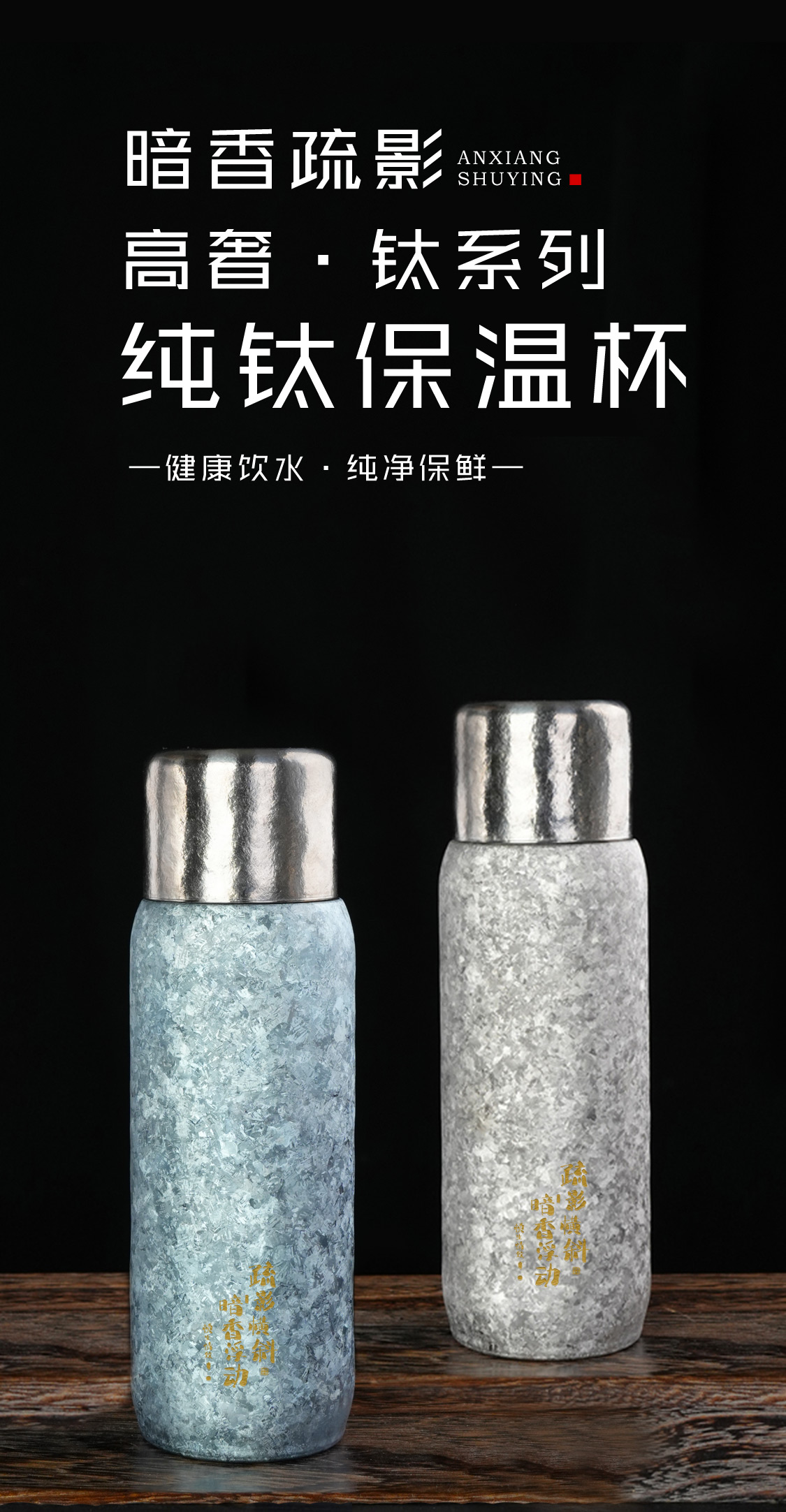 暗香疏影纯钛保温杯 双层纯钛高档水杯户外旅行焖泡茶杯