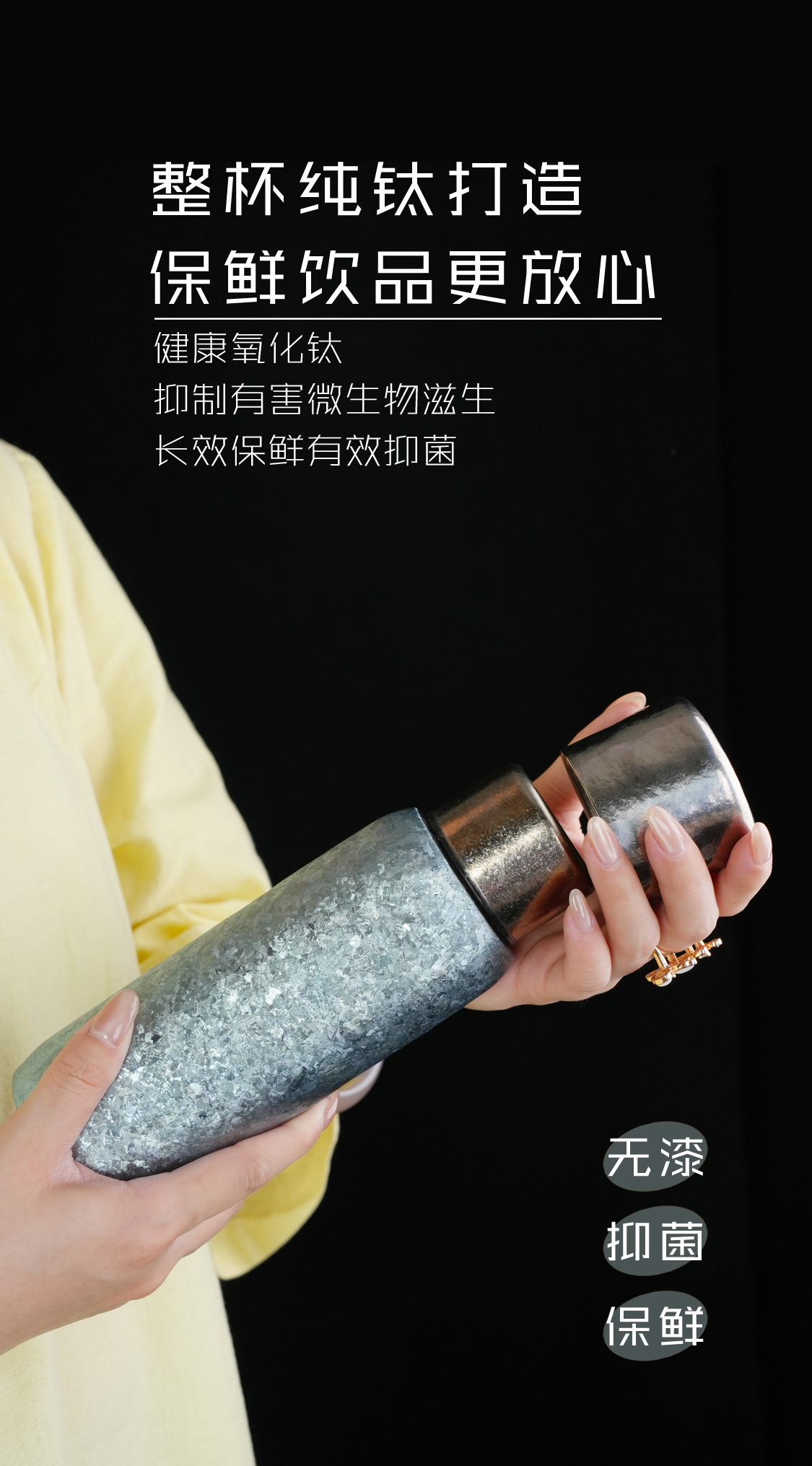 飞剑云动真空保温杯/290/390ml/500ml纯钛保温杯焖茶泡茶钛焖享杯