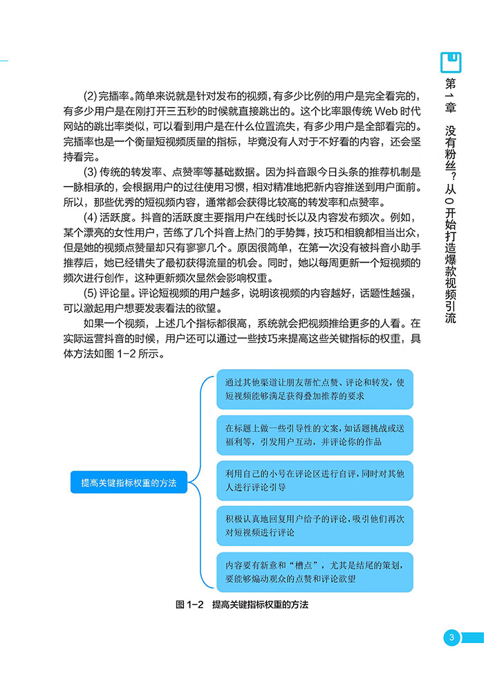 (1) 内容全面,从搜索规则开始切入,到IP 定位规划促销活动策划,再到之后的营销方式的选择和使用,涵盖了抖音运营的多个环节。