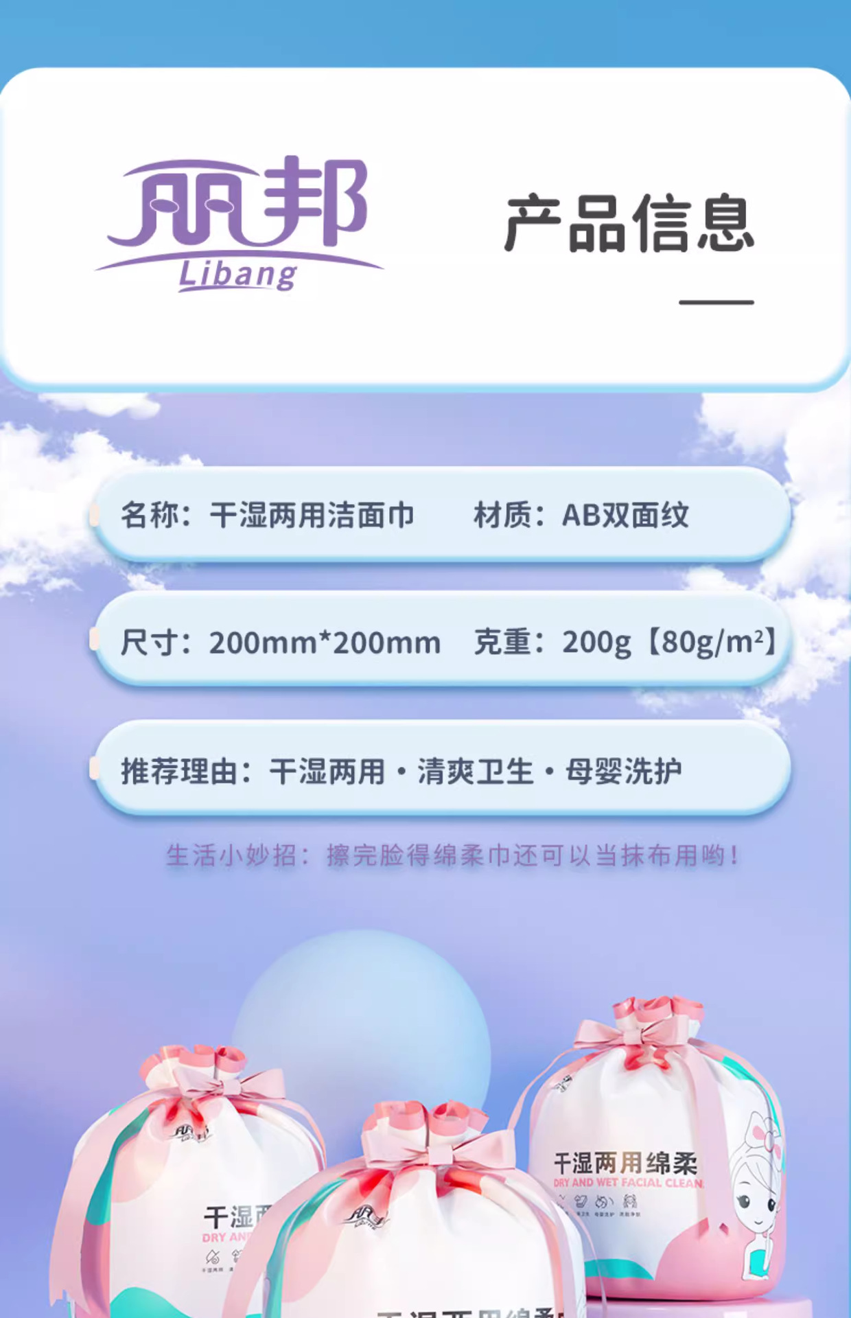 自营(泰利嘉)- 一次性干湿两用卷筒式绵柔巾 加厚耐用【4卷装】送收纳袋