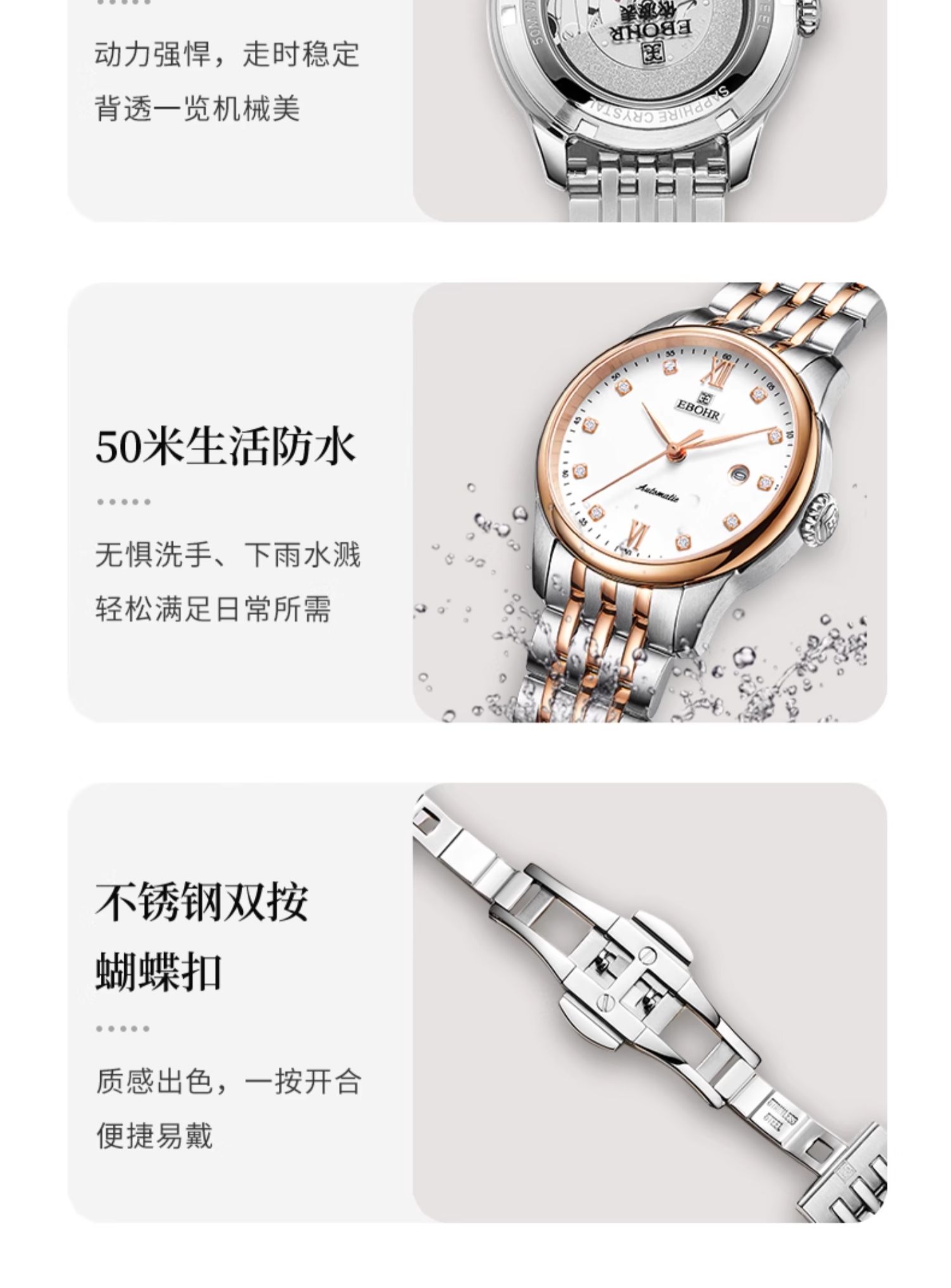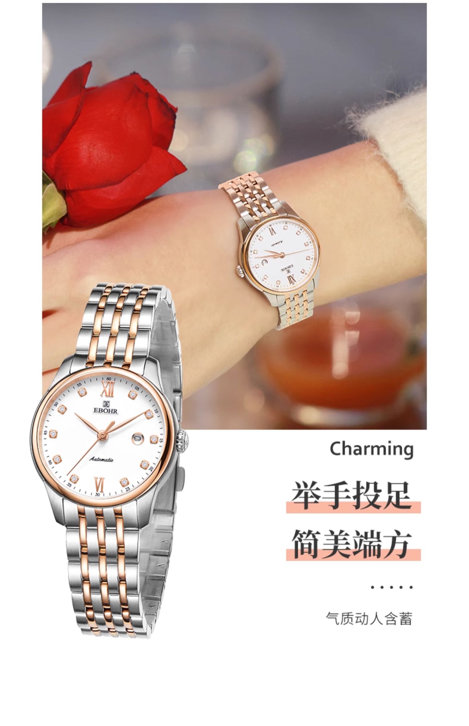 依波(EBOHR)蝶恋花系列时尚镂空全自动防水女士机械表3629