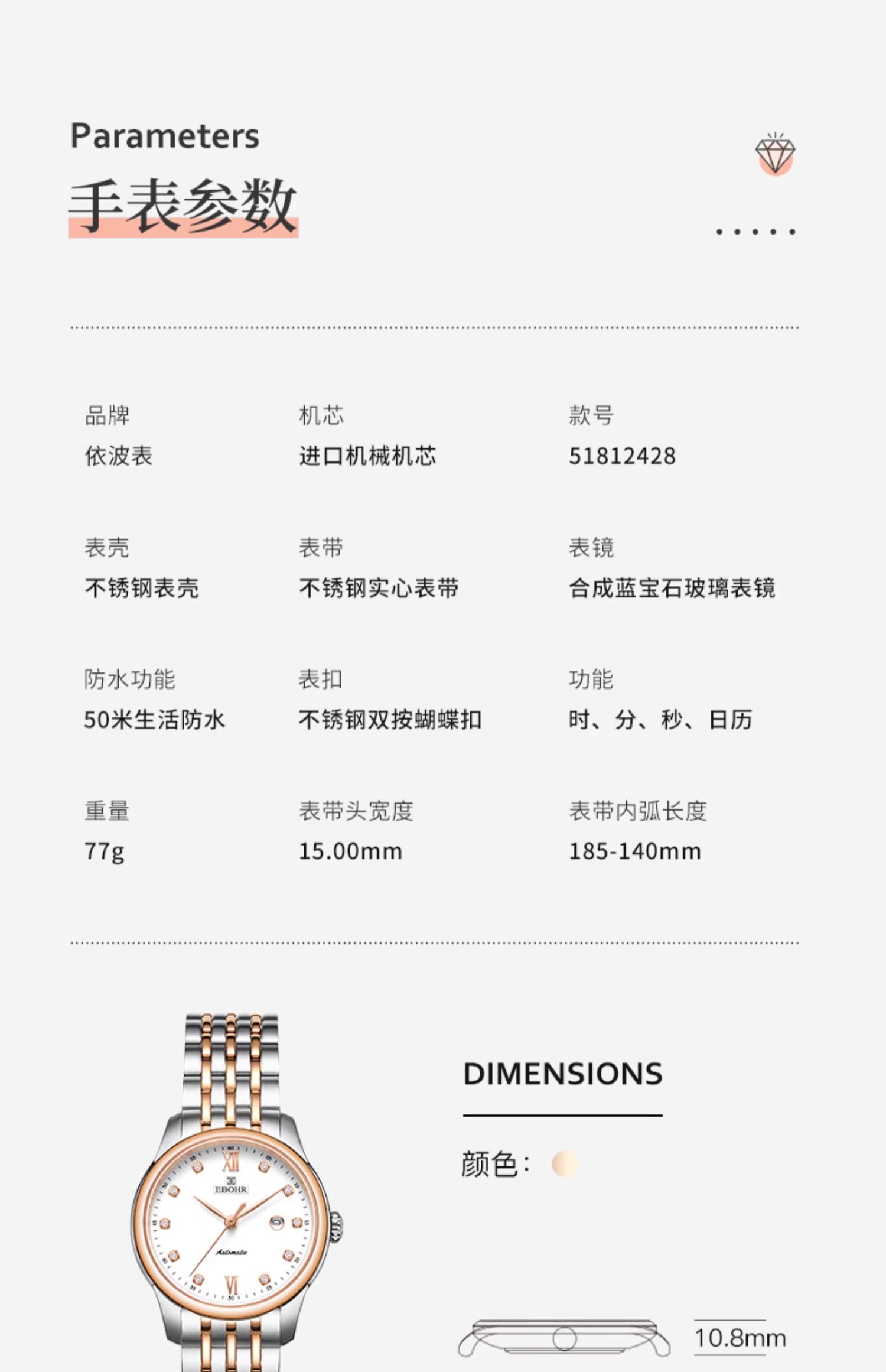依波表手表女款简约气质女士手表百搭机械表手表毕业礼物5181