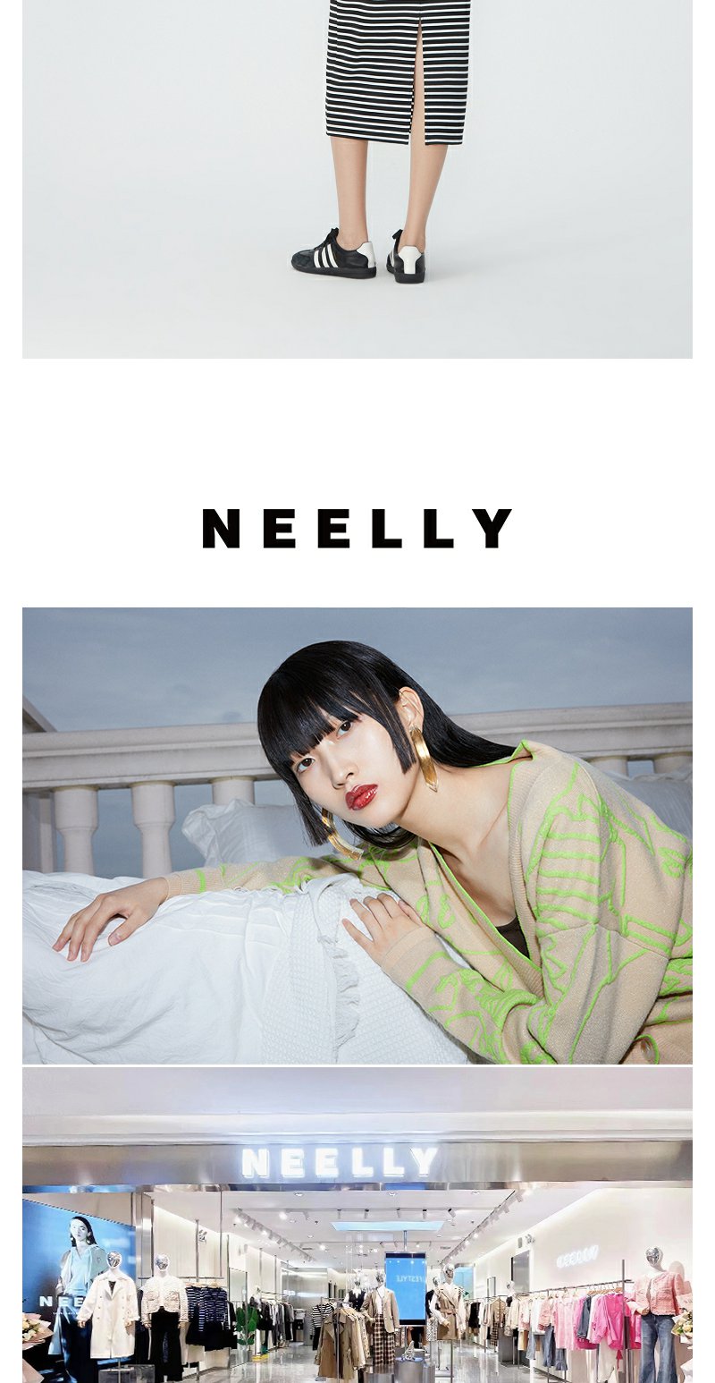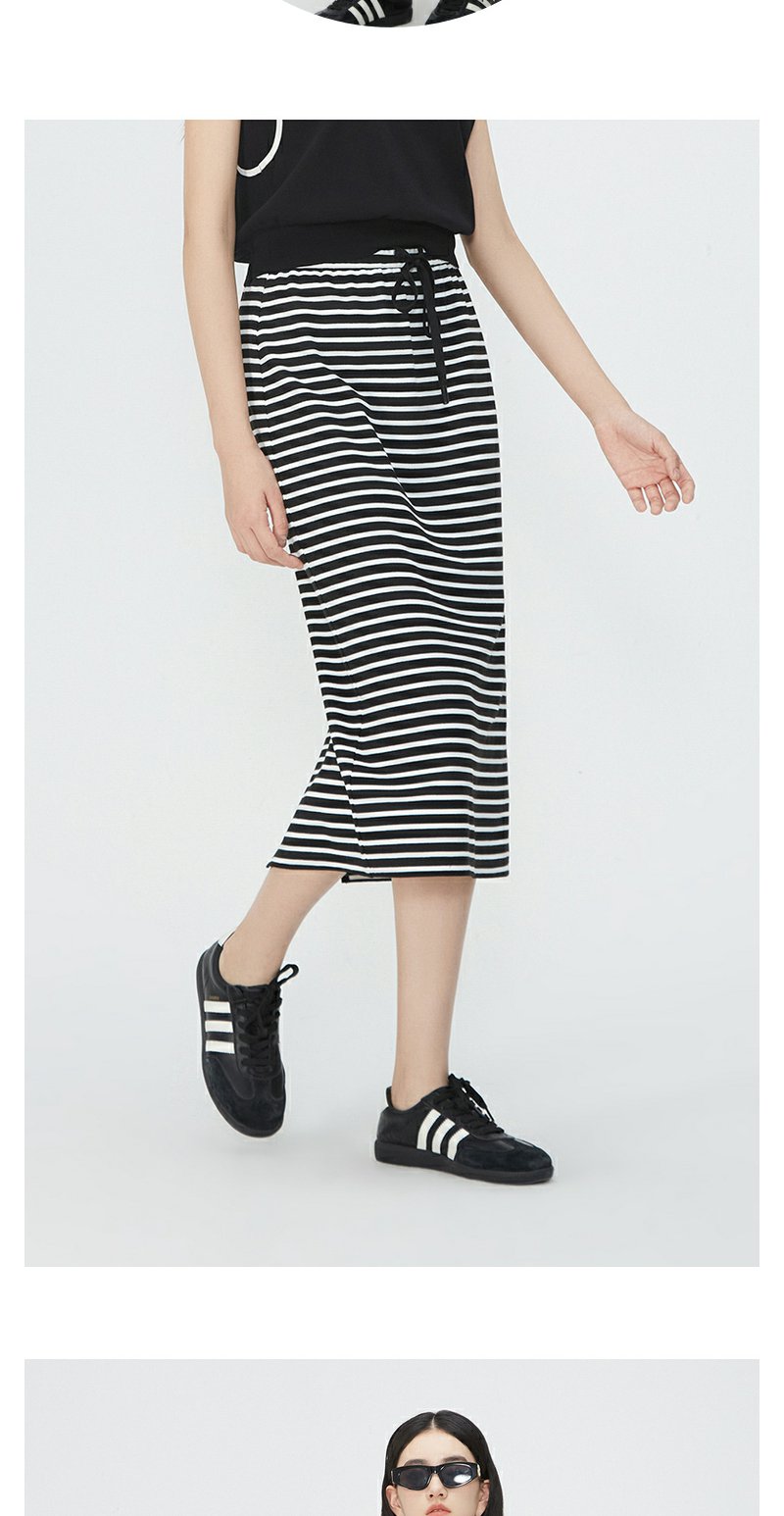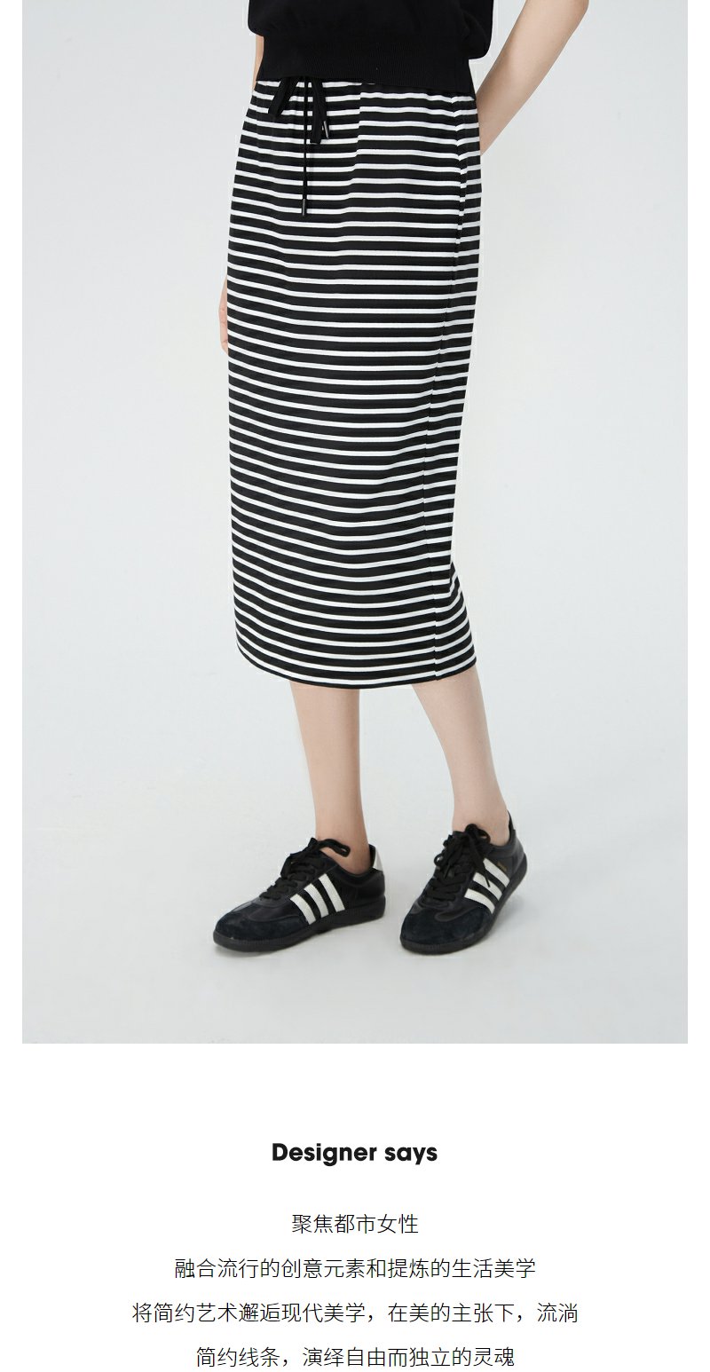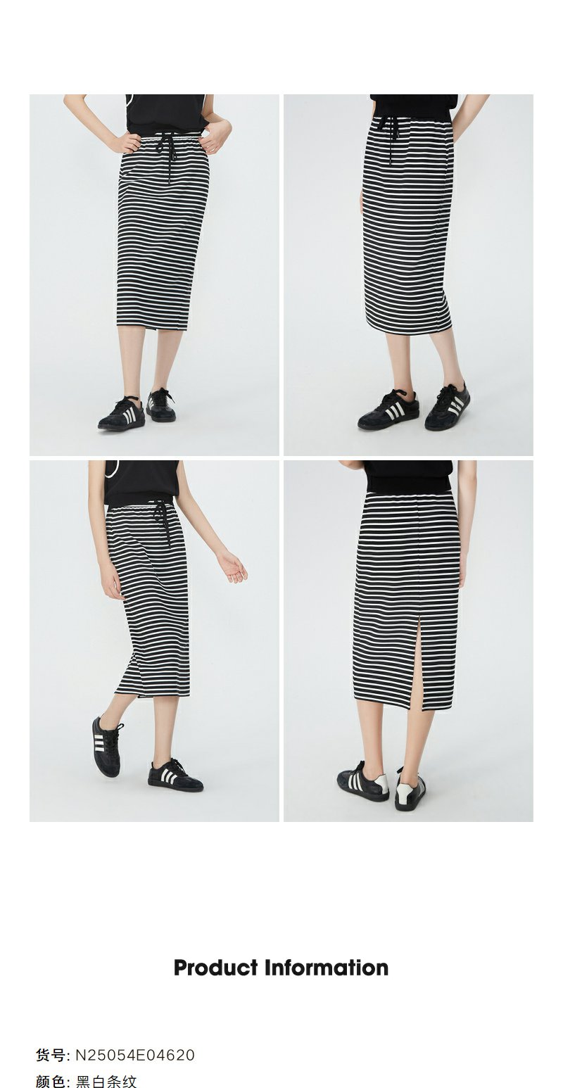 NEELLY纳俪商场同款夏季新款黑白条纹后开叉半身裙女时尚修身长裙N25054E04620
