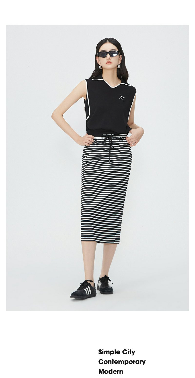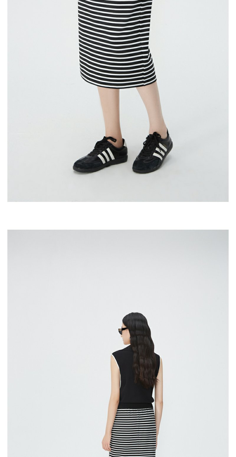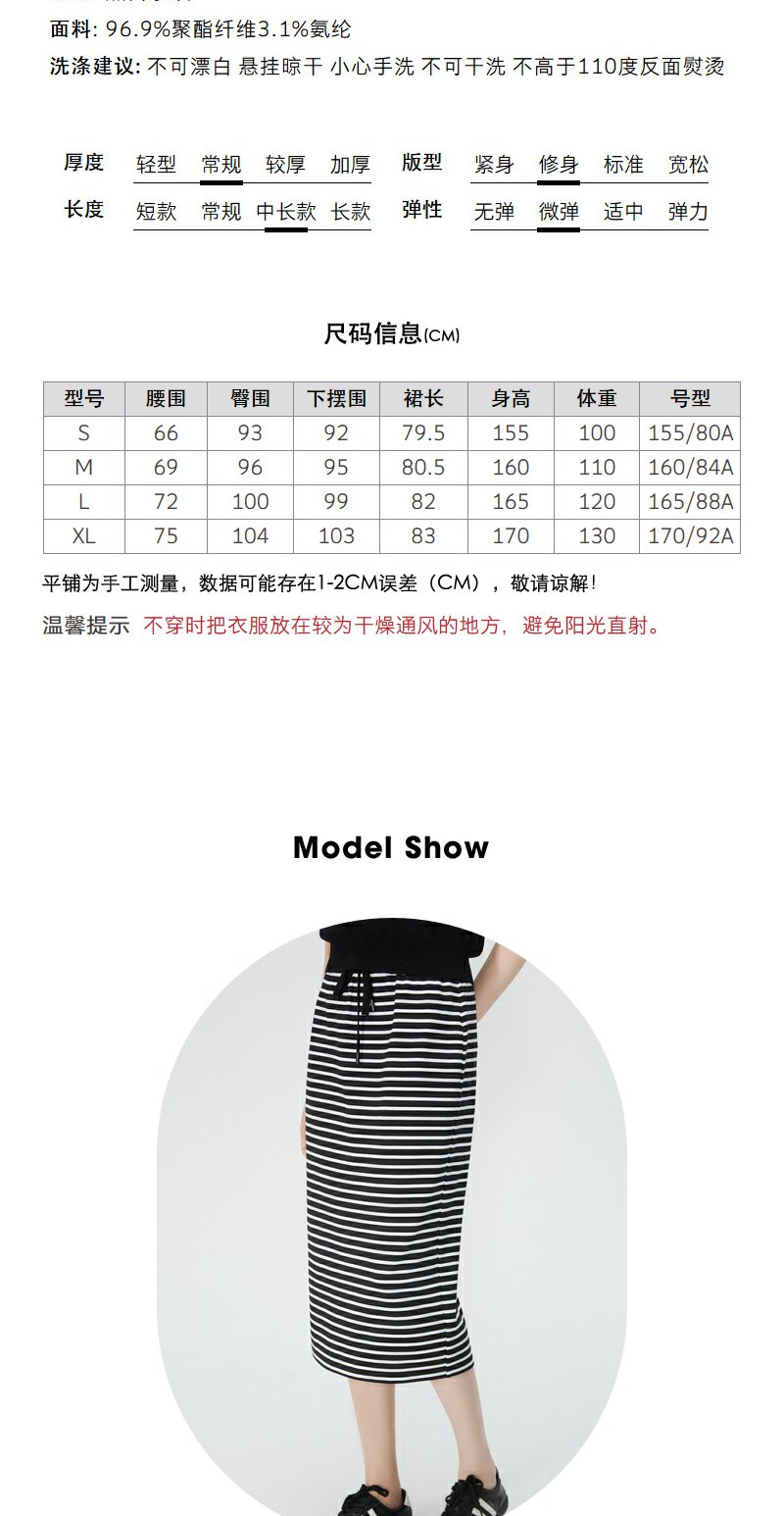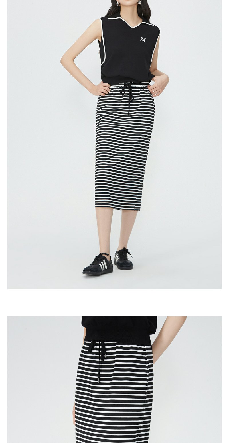 NEELLY纳俪商场同款夏季新款黑白条纹后开叉半身裙女时尚修身长裙N25054E04620