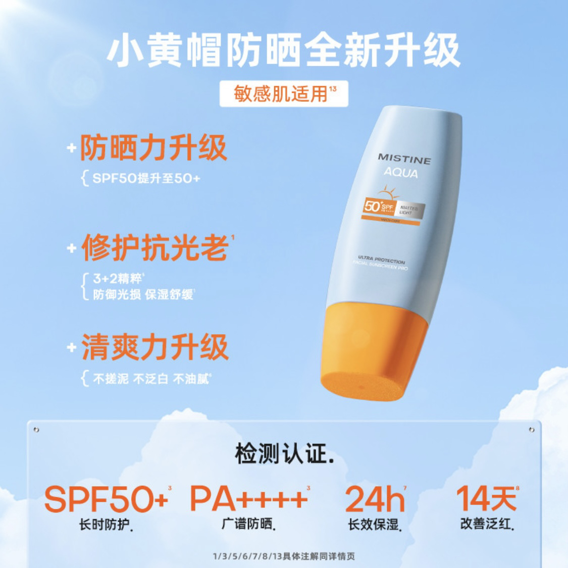 24年新版Mistine蜜丝婷小黄帽小蓝帽防晒霜40ml面部防晒乳 70ml身体防晒乳