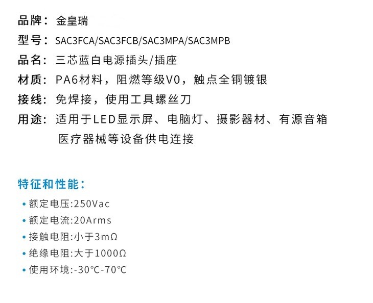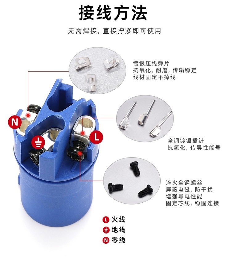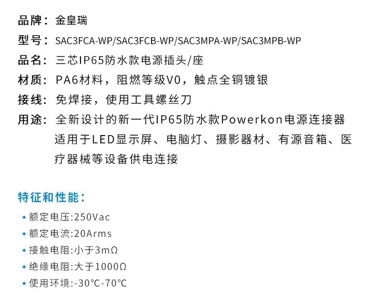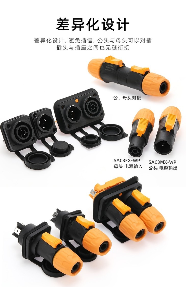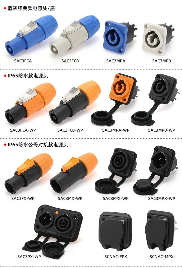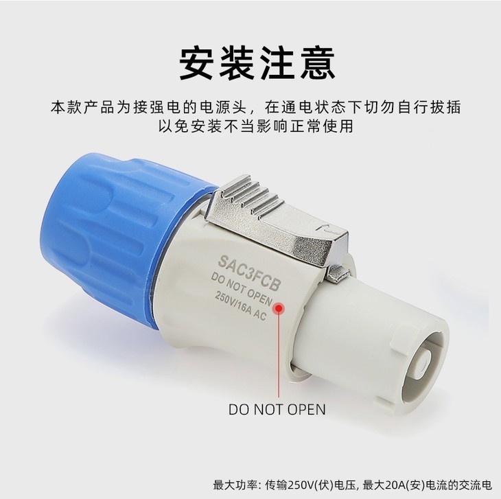 商品名称:【经典款】蓝白LED大屏幕舞台灯光插头插座连接器输入输出接线三芯欧姆电源航空电源插头NAC3FCA工业控制音响演出光束灯显示器电脑灯LED显示大屏电源插头IP65防水舞台灯光音箱航空插座20A