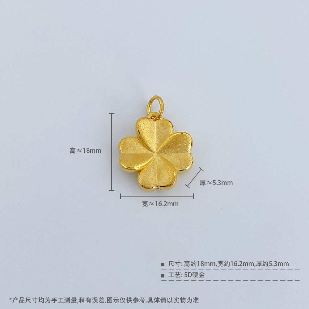 【限时7.5折】【定价黄金】足金 无氰5D硬金空心幸运四叶草吊坠(不含链)(V5DDZ00014)(预售产品下单后不退款不退货不换货不补差价)(预售产品下单后不退款不退货不换货不补差价)