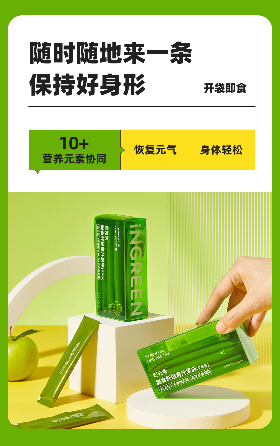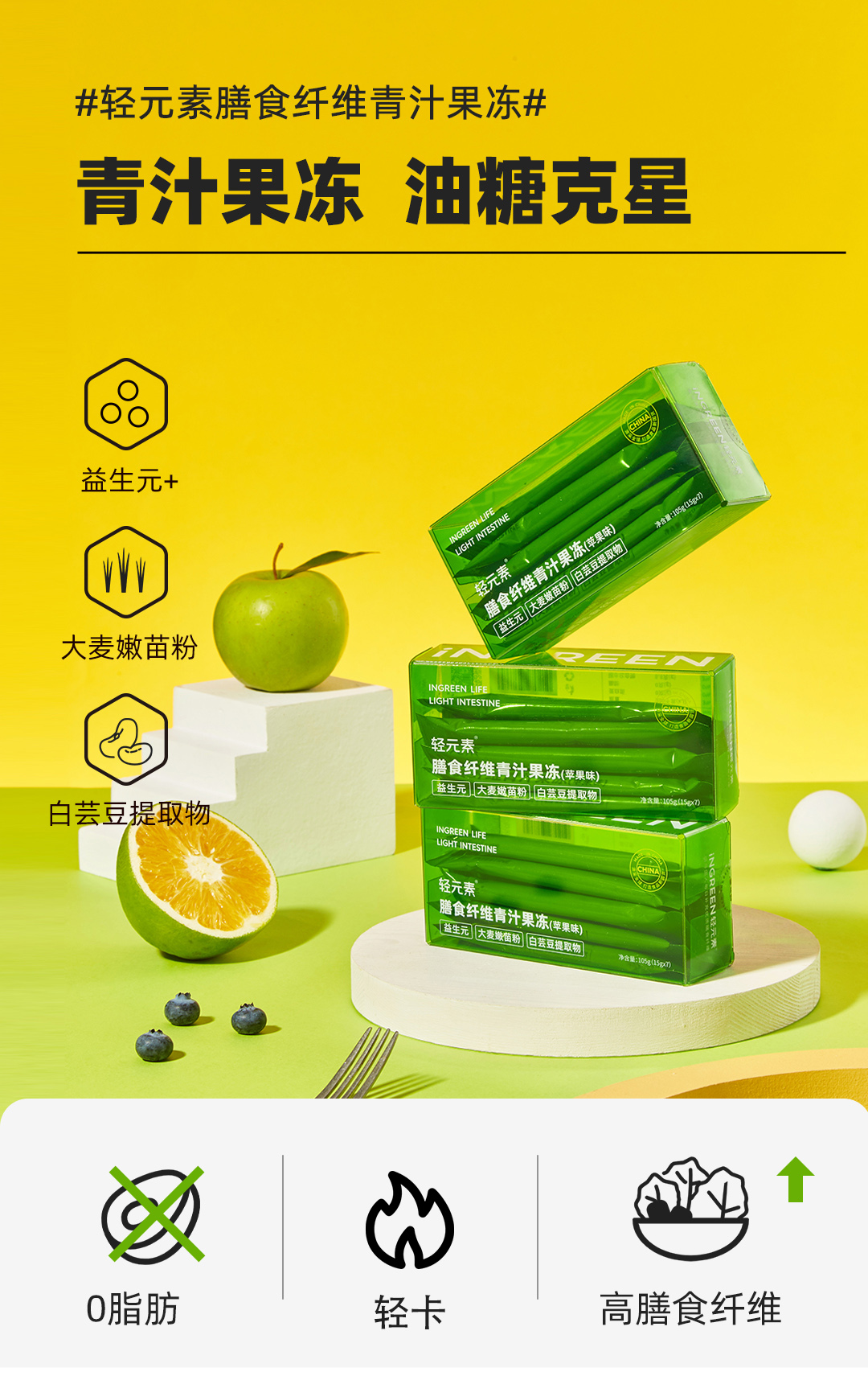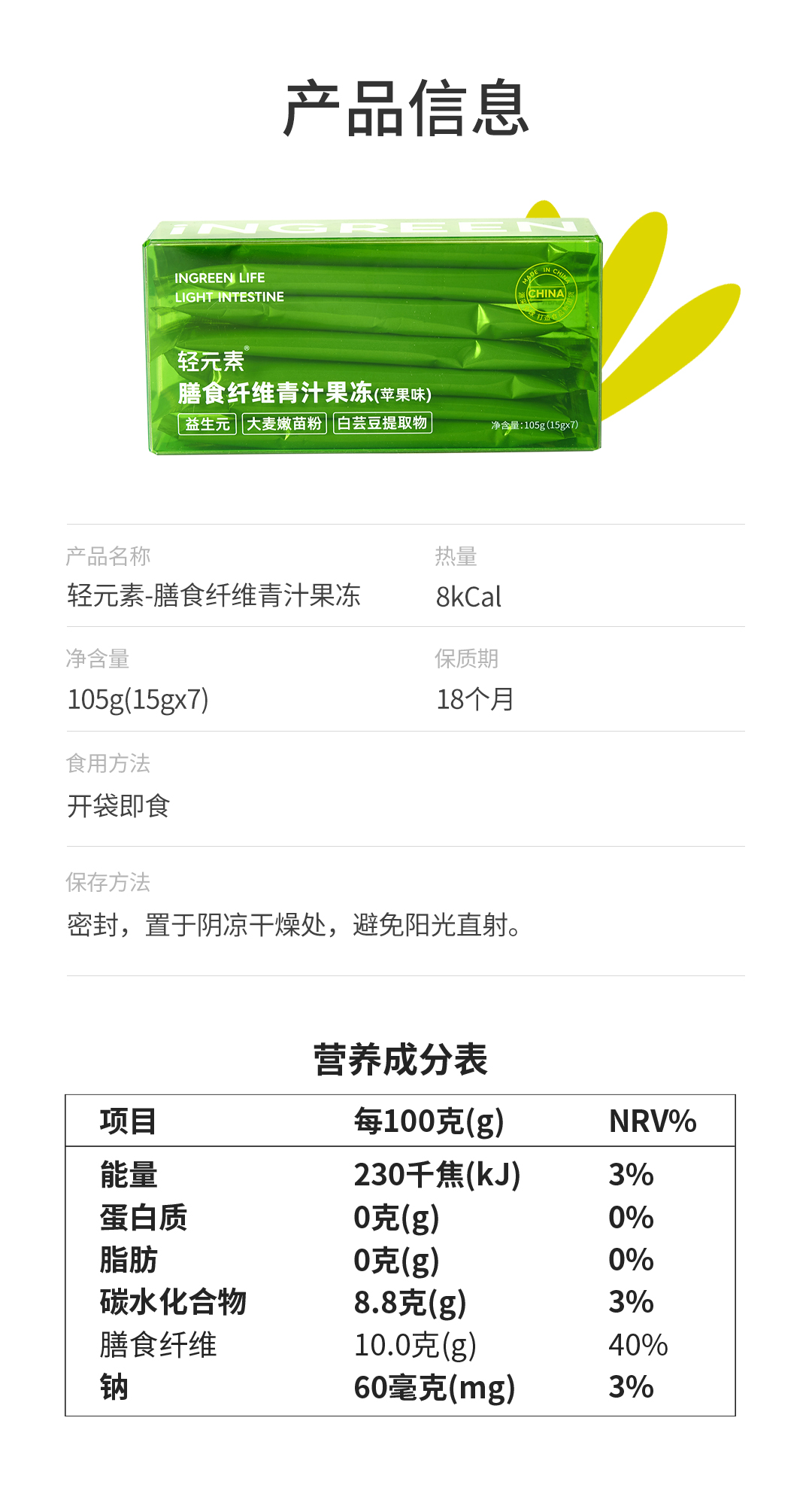 iNGREEN/轻元素 膳食纤维青汁果冻 15g*7条×4盒 苹果味单品