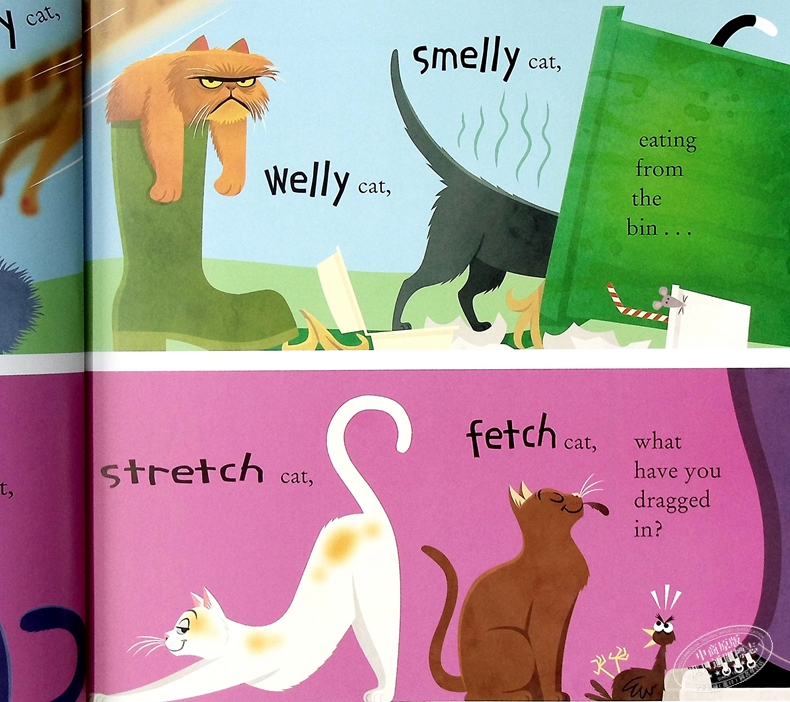 这本让人捧腹大笑的图画书是一本精彩的押韵读物,在傻乎乎的场景中大声读着一群猫。跟着猫捉老鼠的次要情节,寻找无穷无尽的有趣细节,让你读了又读。