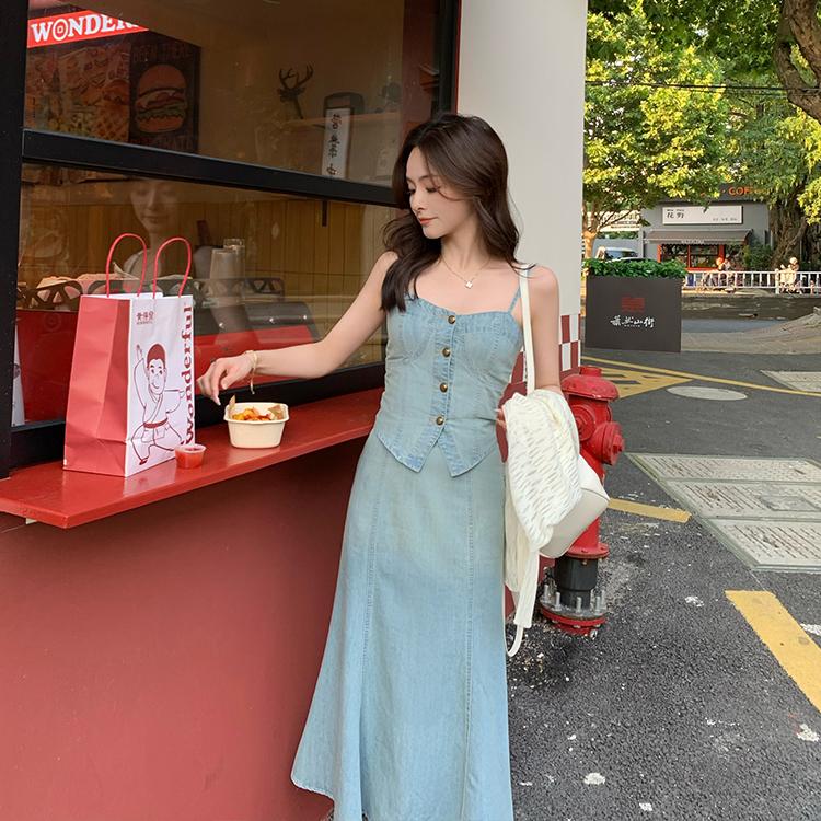 金蘑菇菇 硬核轻氧牛仔 套组/100纯棉水洗渐变复古牛仔套