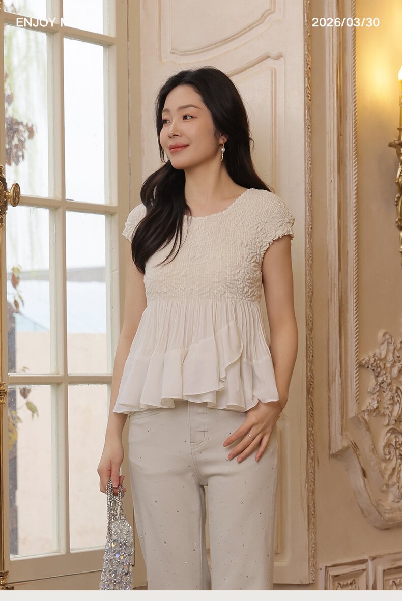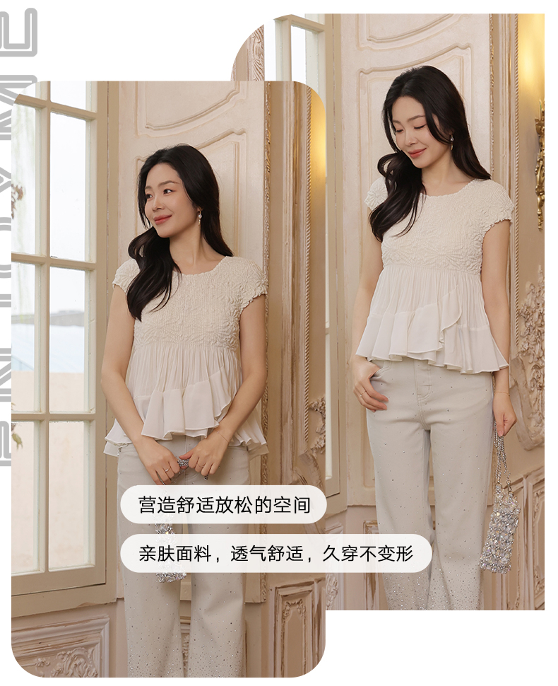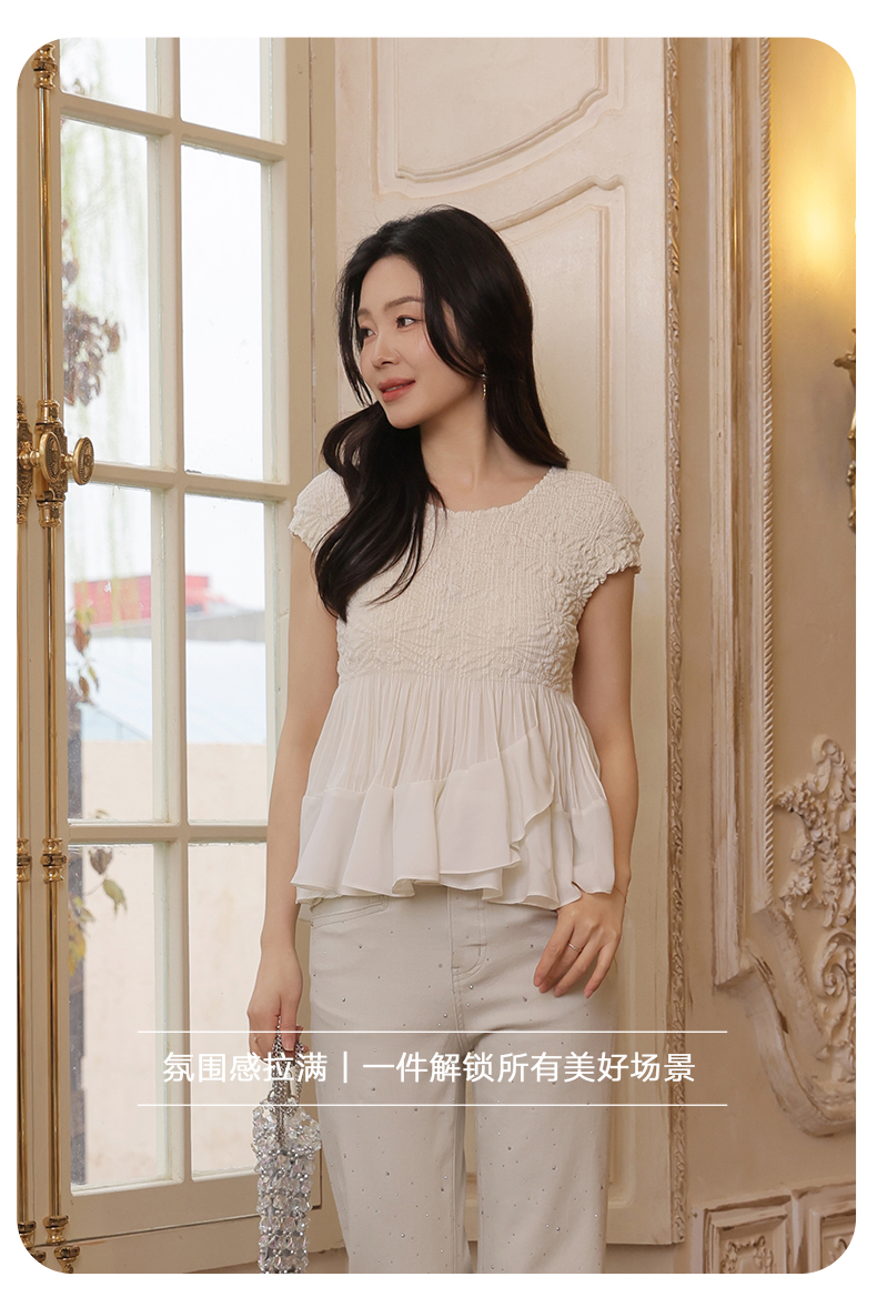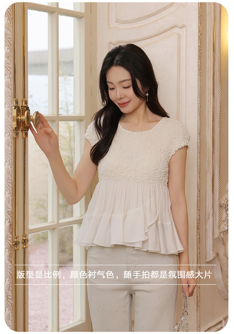 【门店同款】ENJOY夏季三宅褶皱燕尾摆上衣 170793251