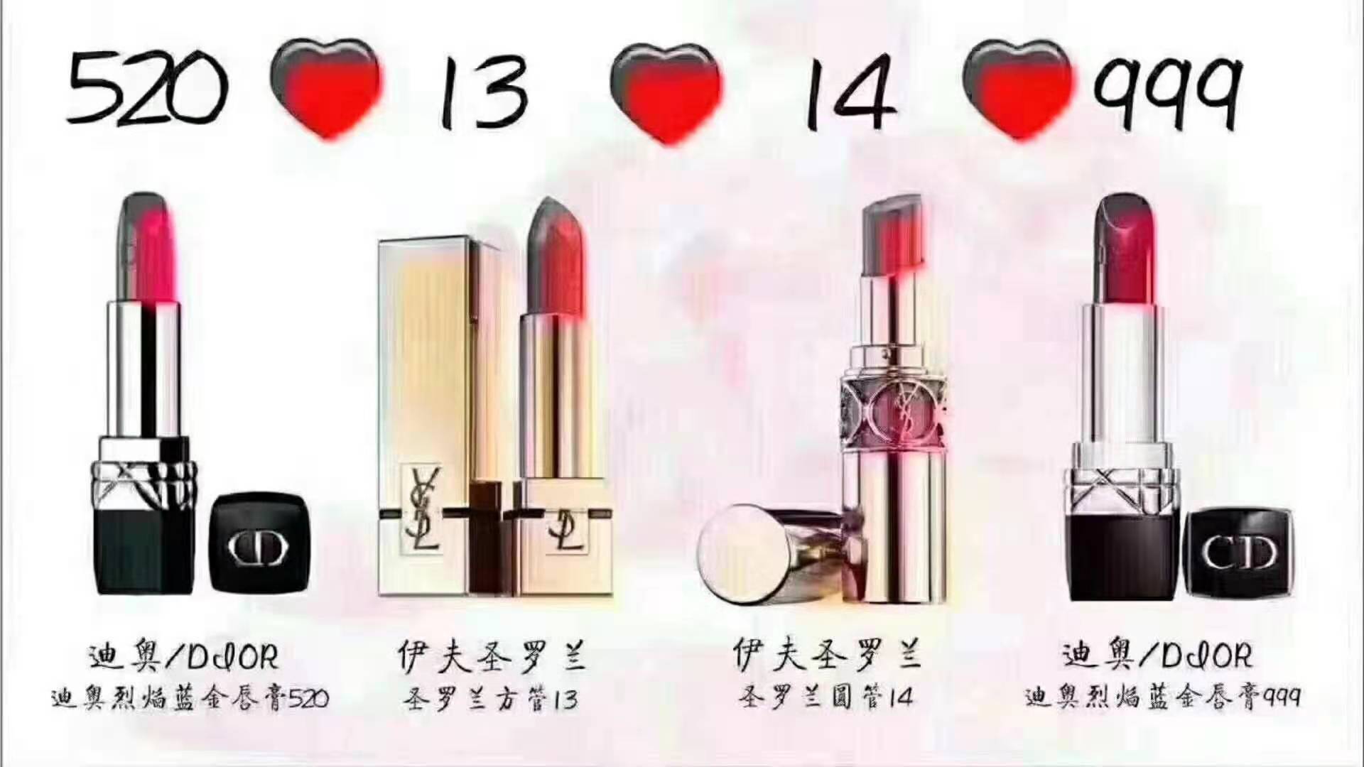 迪奥、圣罗兰、阿玛尼、纪梵希(含小羊皮、小粉皮)、娇兰、香奈儿、雅诗兰黛、植村秀等(口红、唇釉随机)