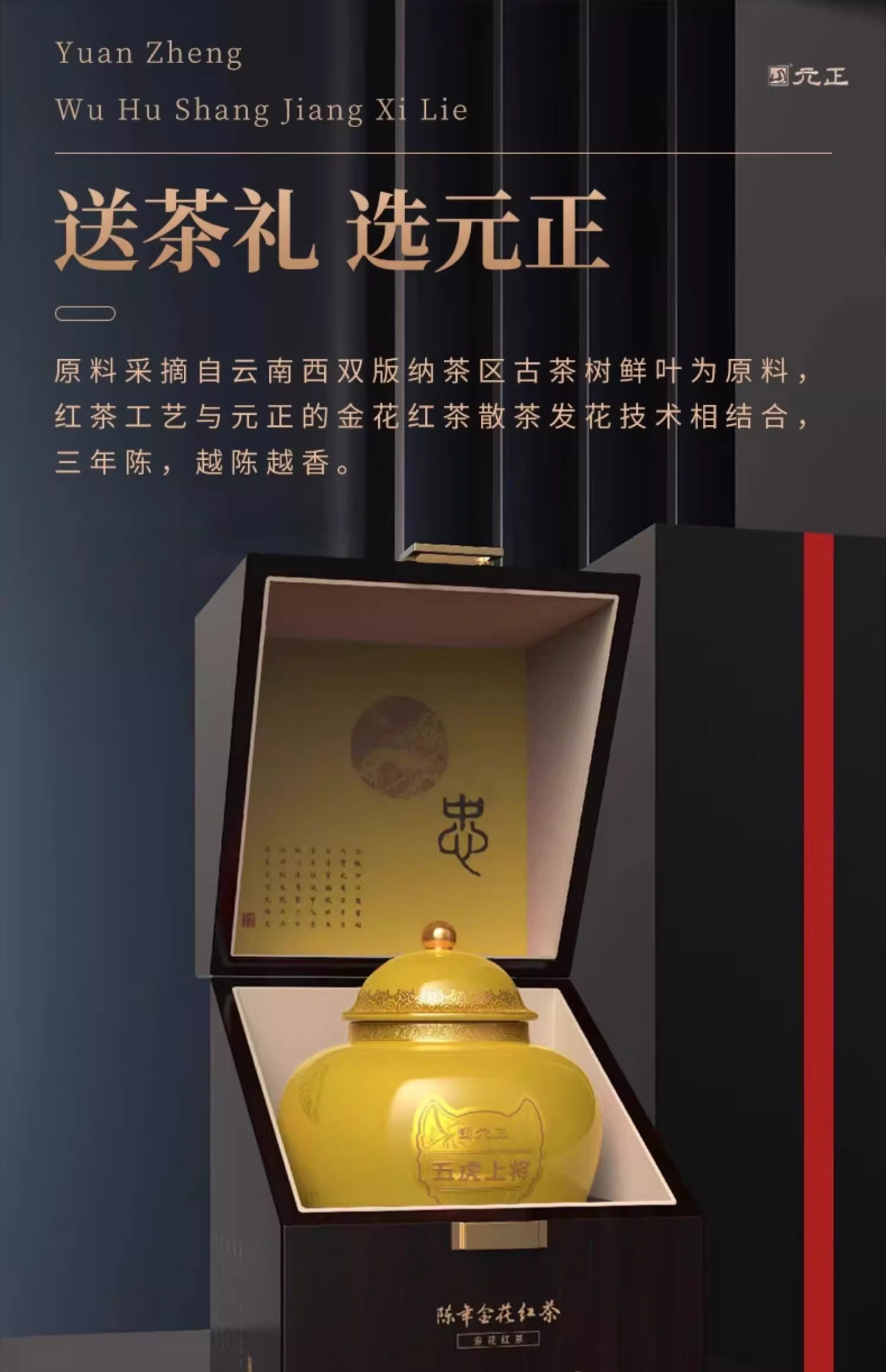 【限量收藏】元正五虎上将系列创新工艺金花红茶散花收藏礼盒400g