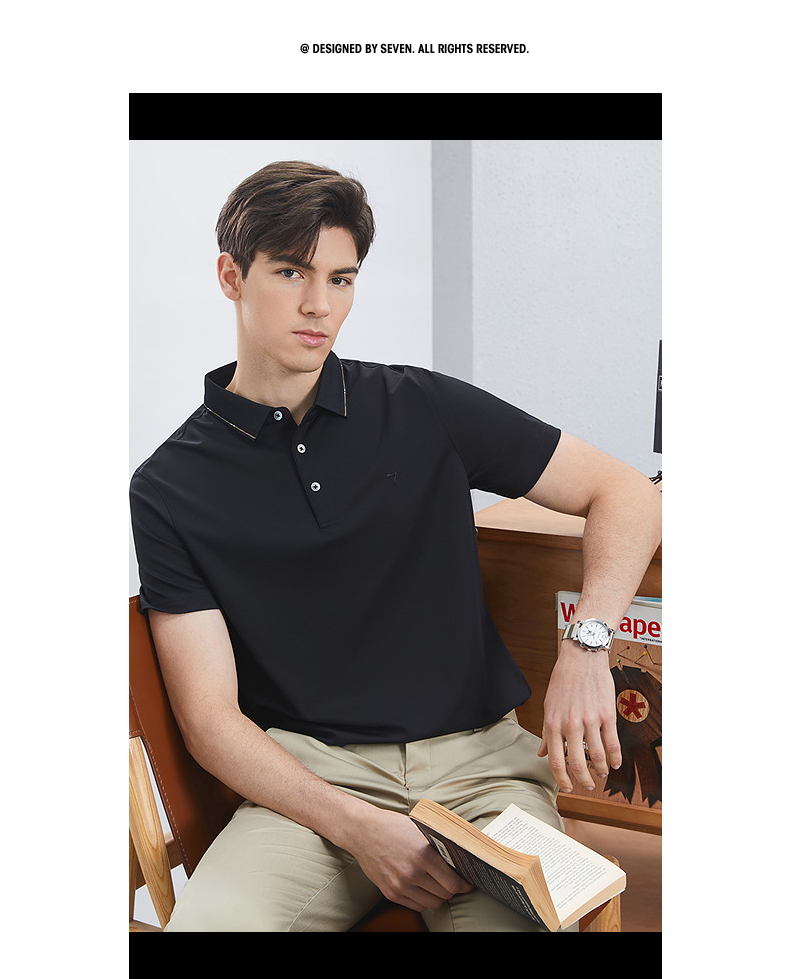 【含桑蚕丝】柒牌polo衫短袖男2024夏季新款通勤商务休闲翻领T恤 126T71280