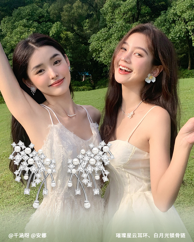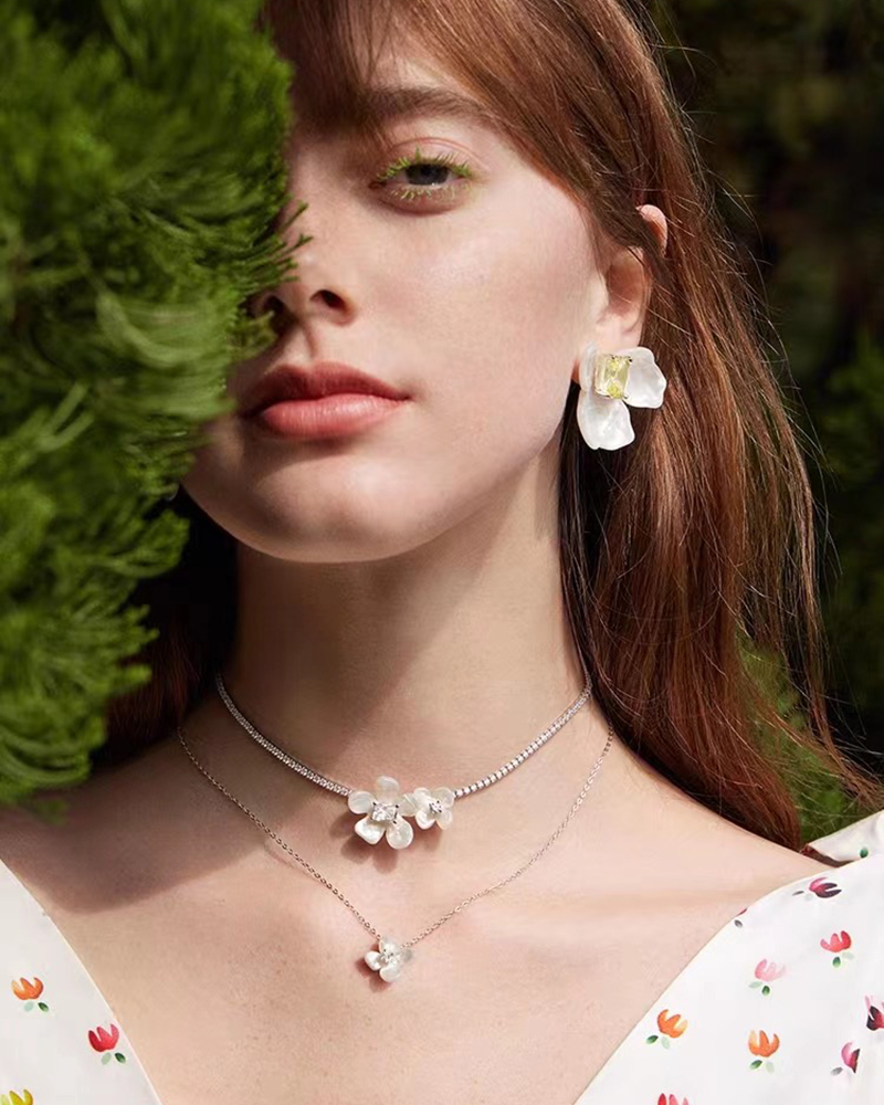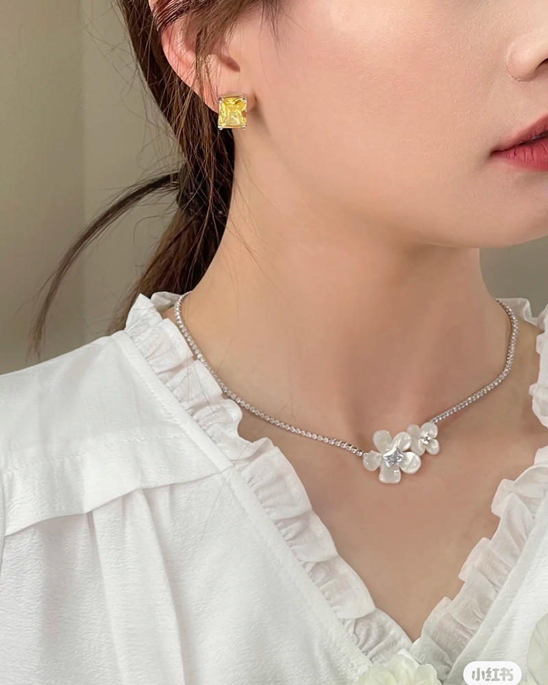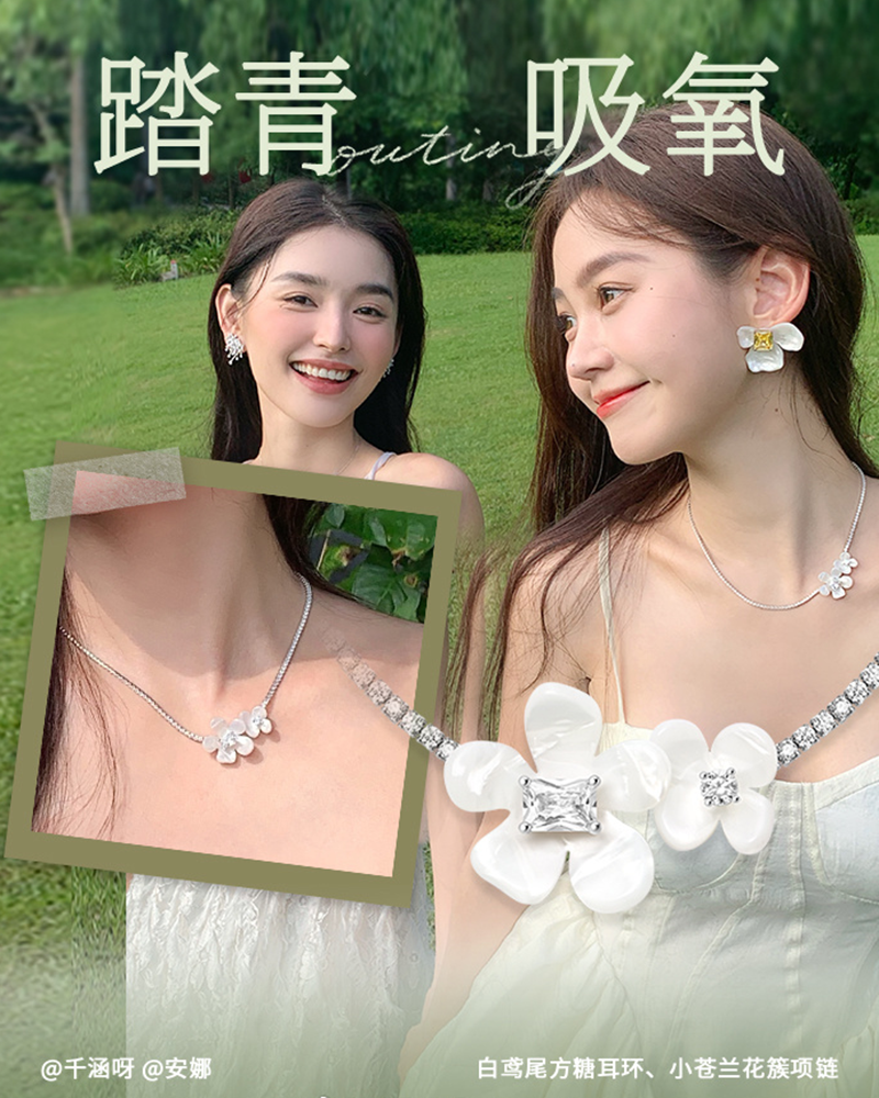 | 尺寸 | 花簇锁骨链尺寸:33.5cm+延长链10cm 吊坠:3*2cm 吊坠项链尺寸41cm+延长链5cm 吊坠:1.5*1.5 花朵耳钉3.5*3 分开钻饰耳钉1.5*1cm 戒指花饰:3*2cm |