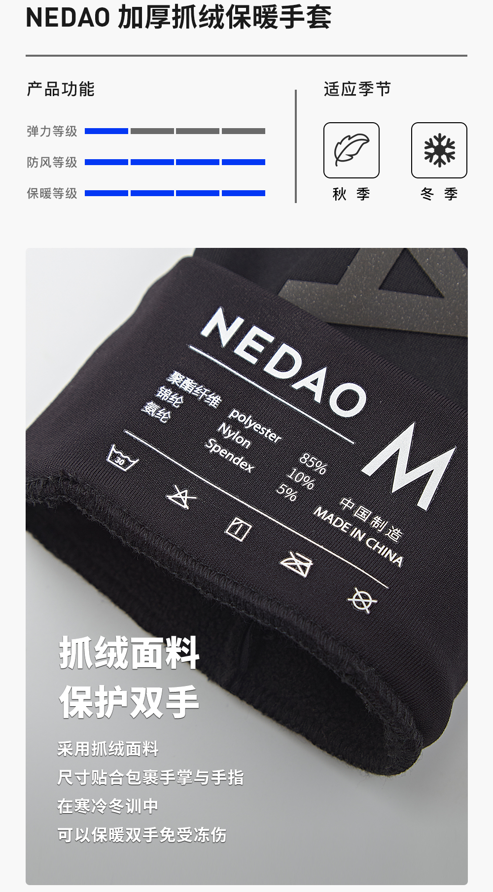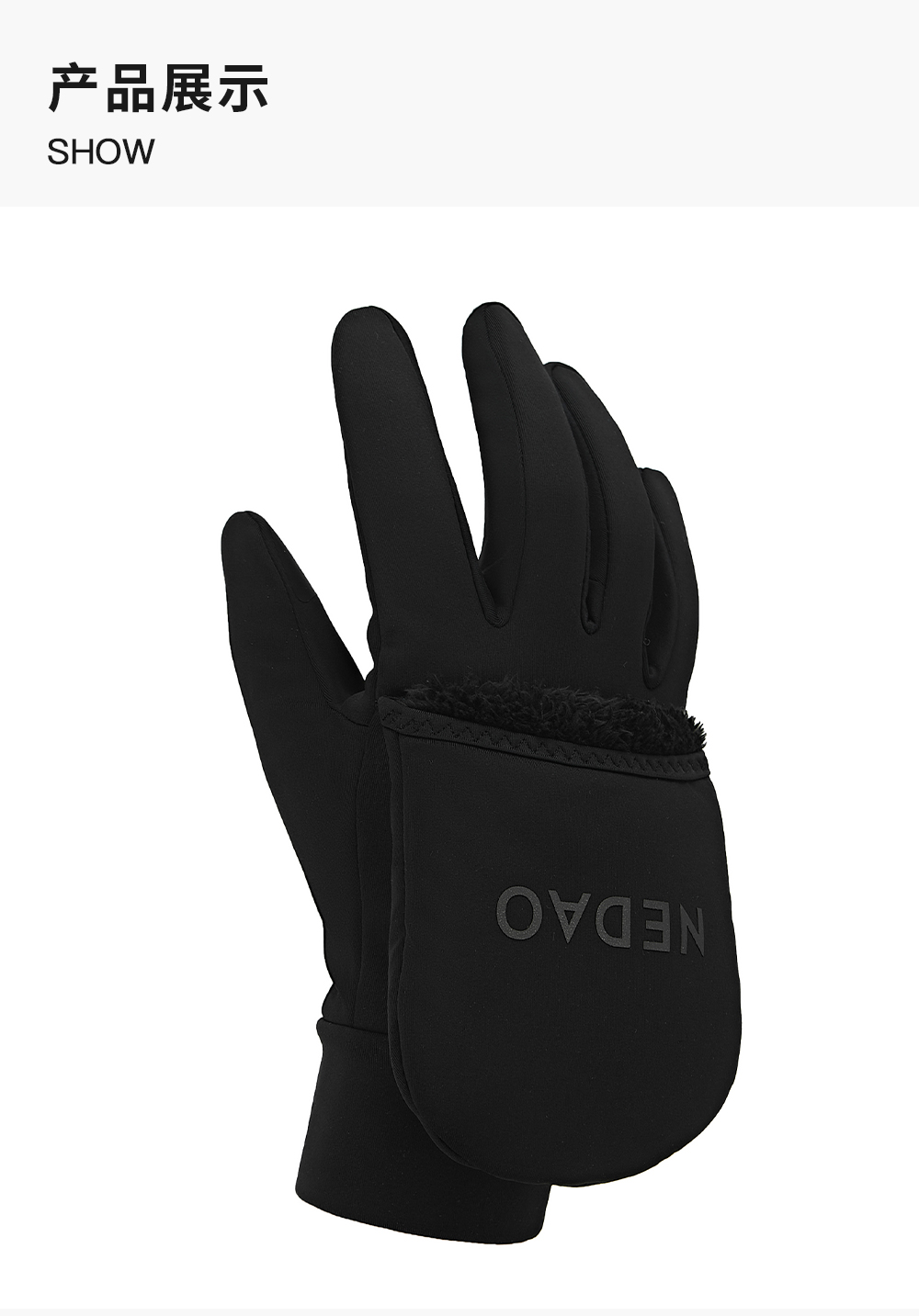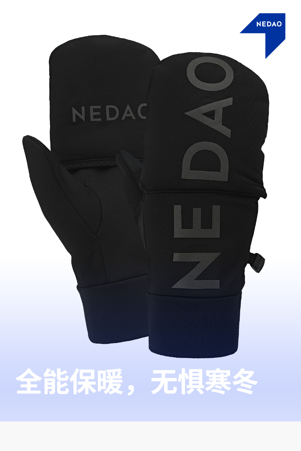 NEDAO内道全指翻盖冬季御寒马拉松训练越野跑步防风加厚运动手套