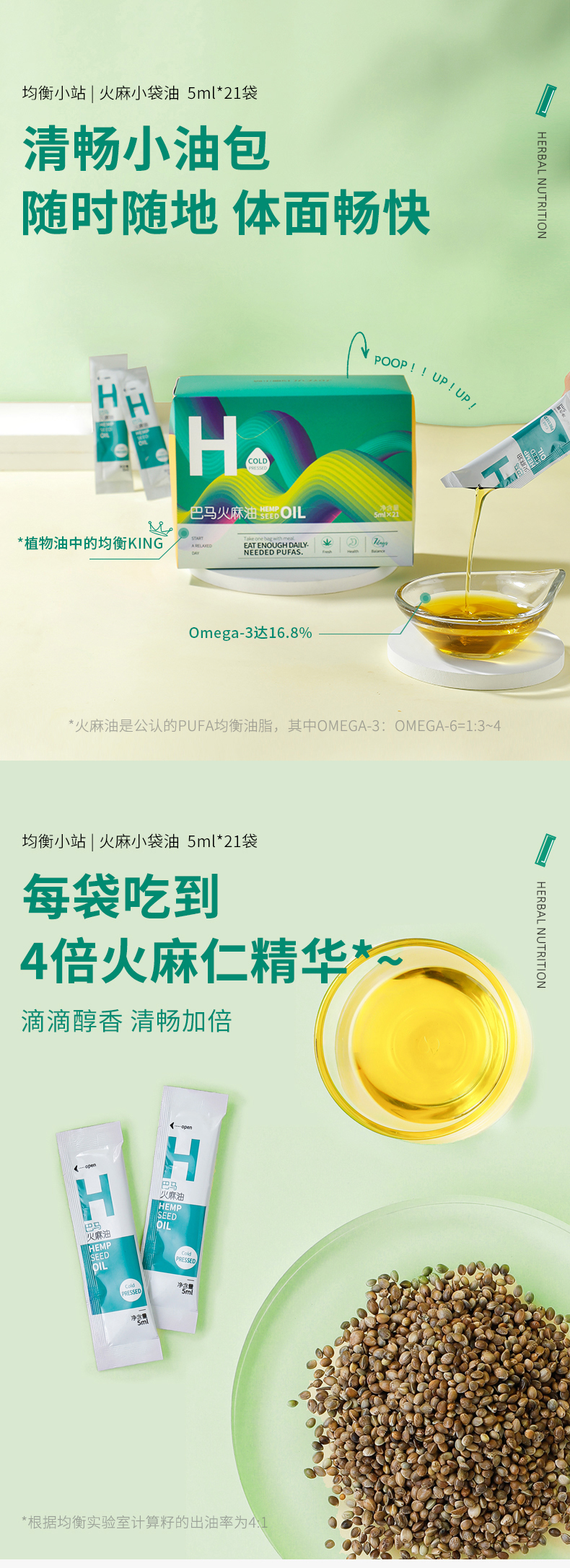 晟麦巴马火麻油(5ml*21袋/盒)