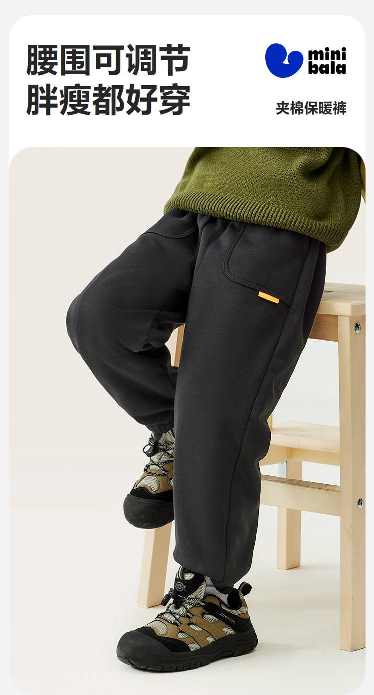 迷你巴拉男童女童裤子2025冬新品儿童保暖腰头可调节长裤