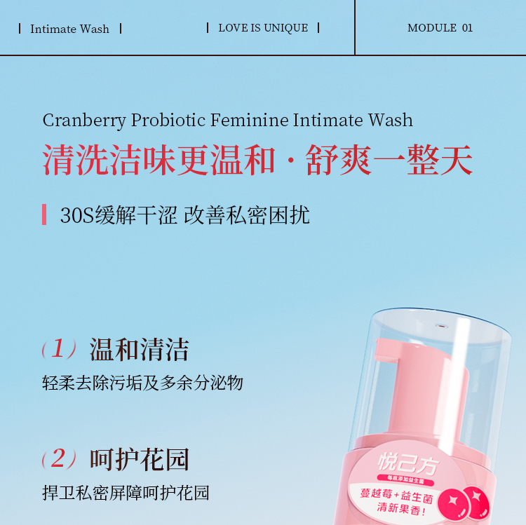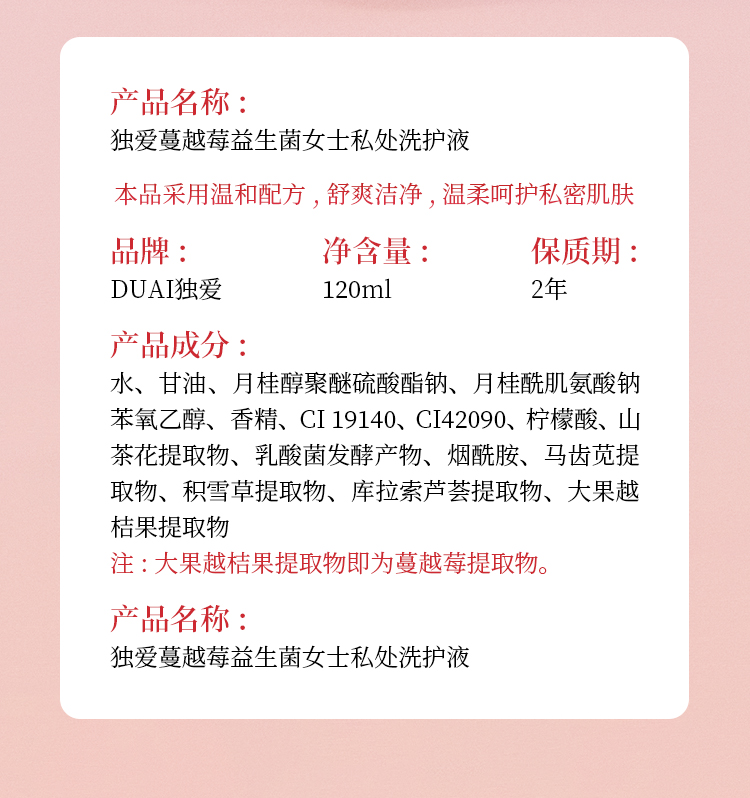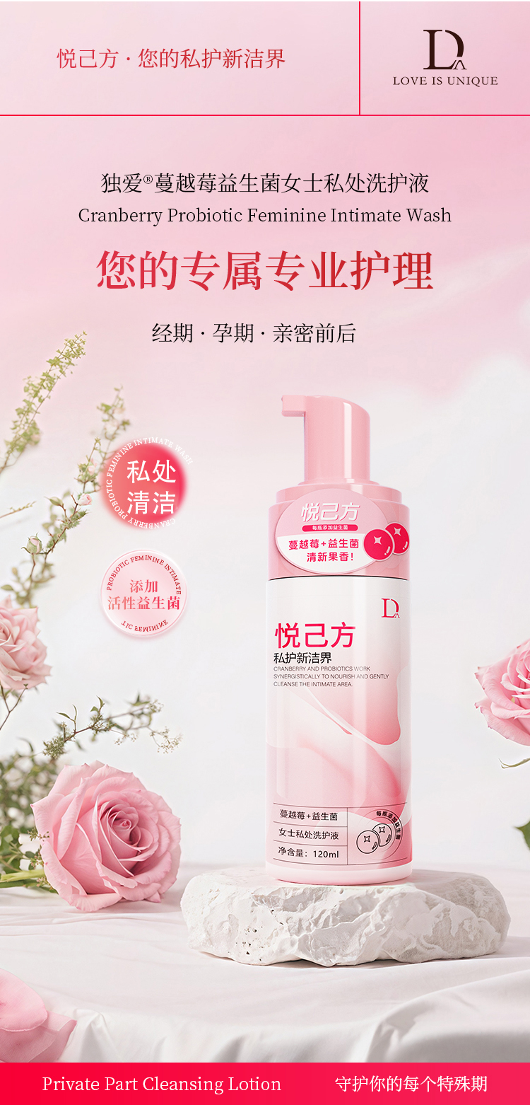 独爱 蔓越莓益生菌女士私处洗护液 清洗液女私密护理液外阴清洗剂女性抑菌洗液