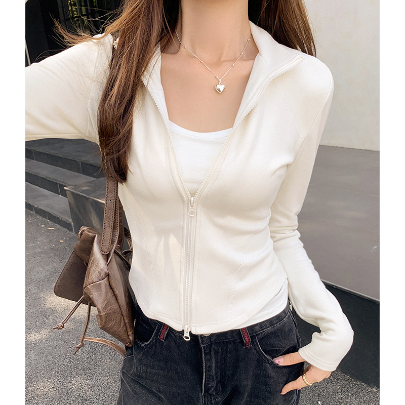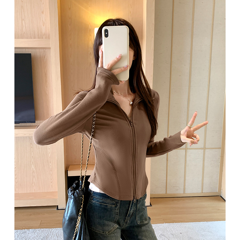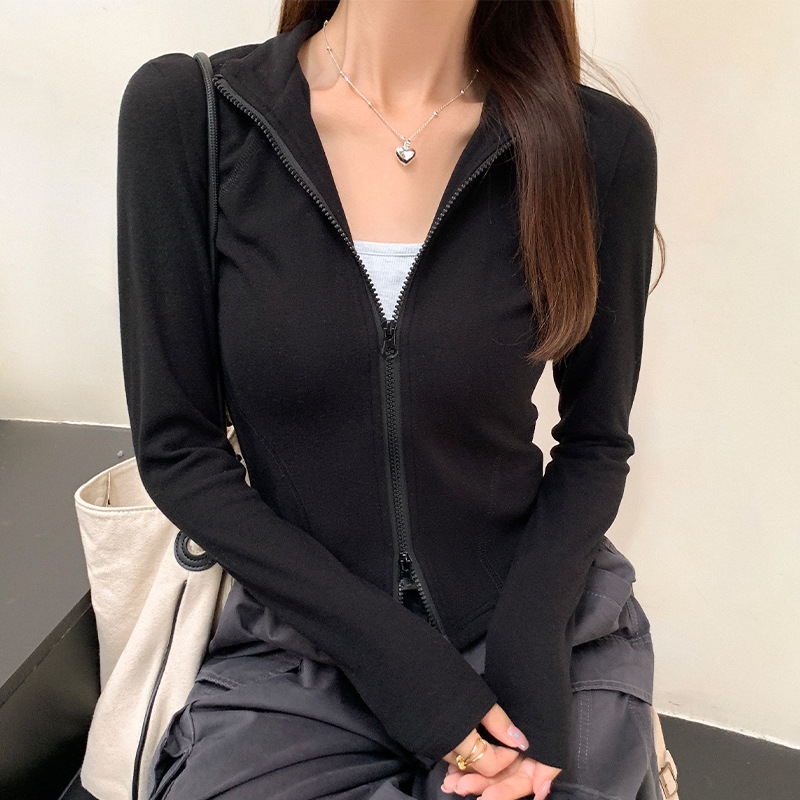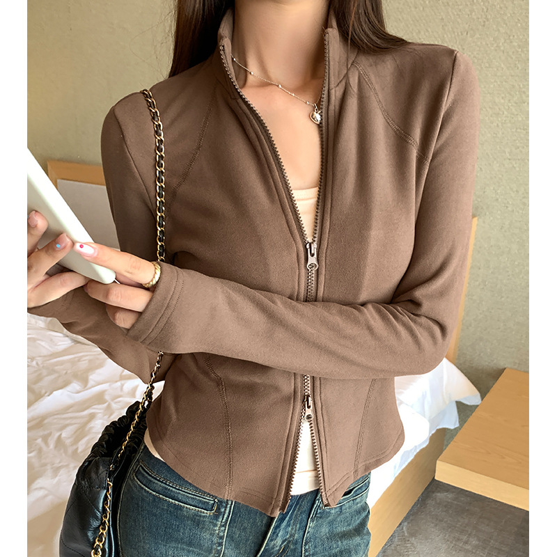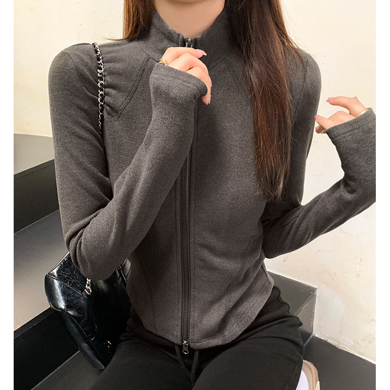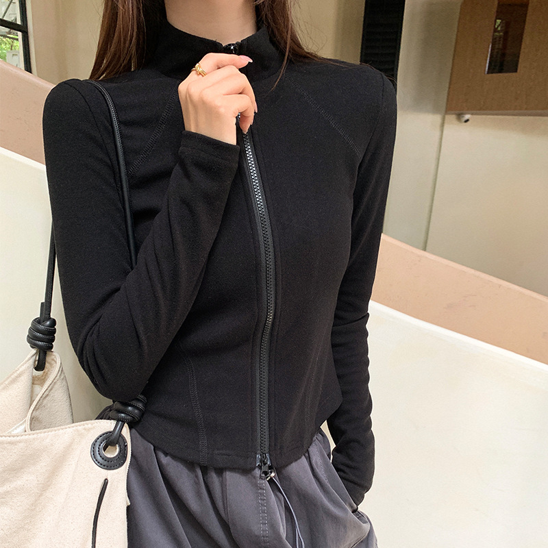 美式立领保暖拉链长袖打底衫 秋冬内搭外穿开衫修身显瘦外套