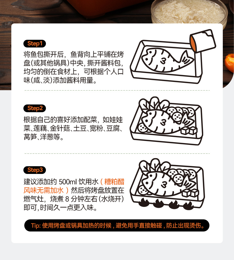 糟粕醋烤鱼规格:净含量1.15kg(烤鱼500g+650g酱料包)