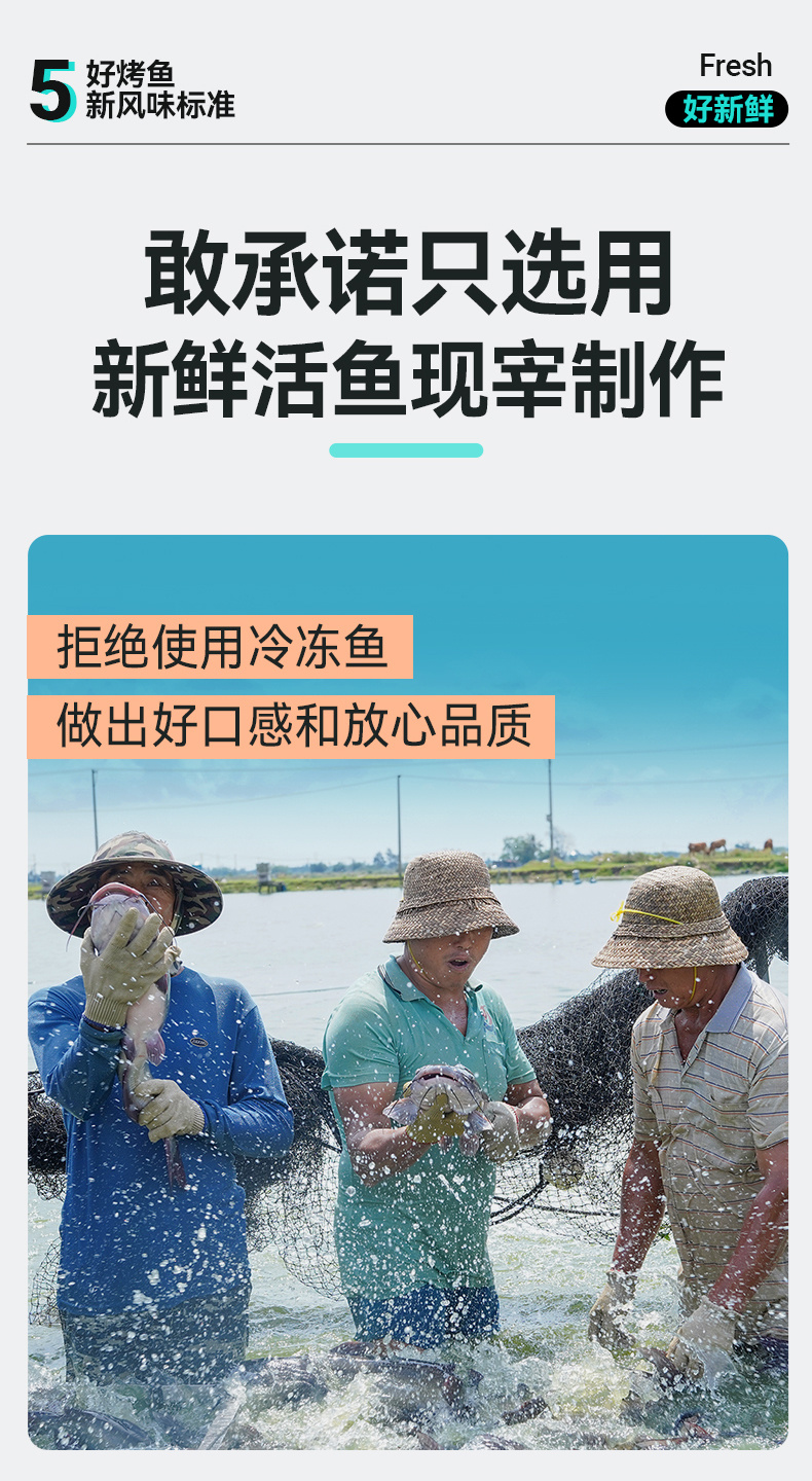 1.烤鱼500g:甄选鮰鱼口感鲜嫩,富含优质蛋白质,只有一根主次,无细刺,老人小孩放心吃,只用活鱼现宰制作