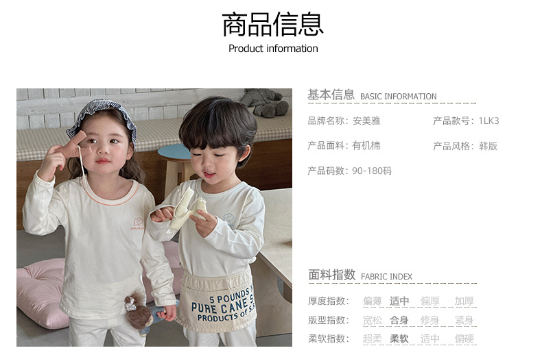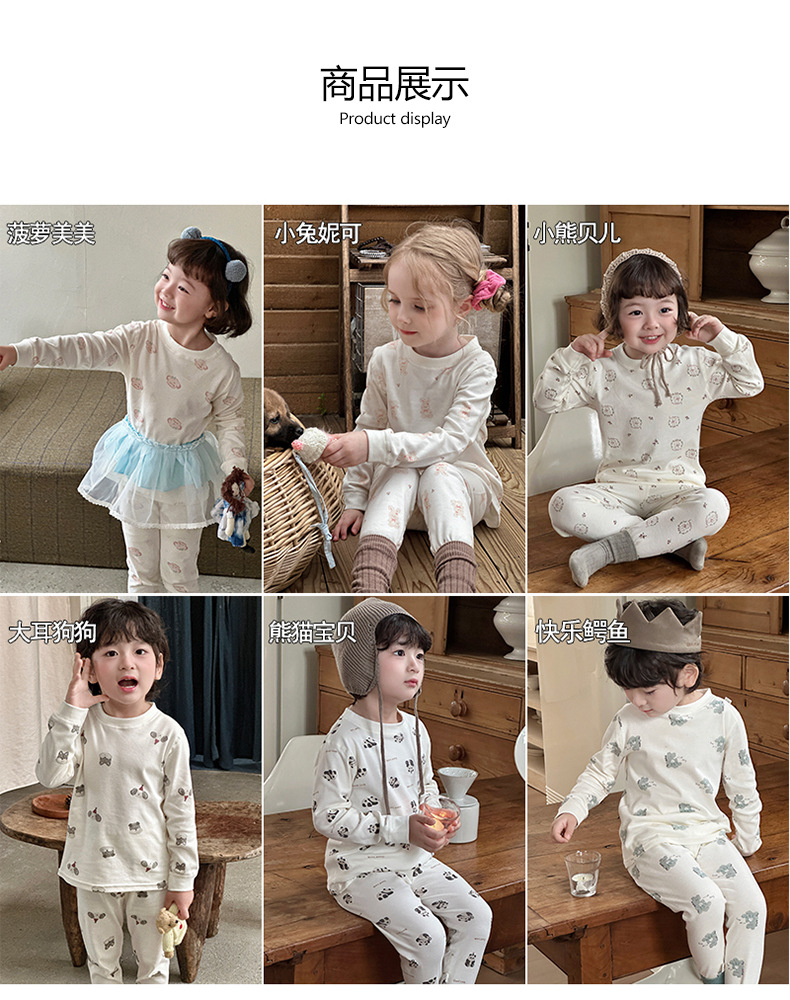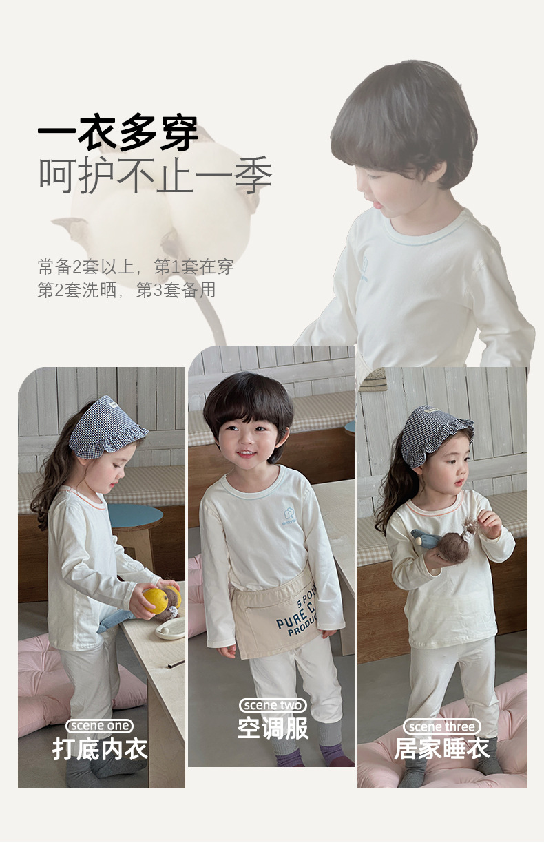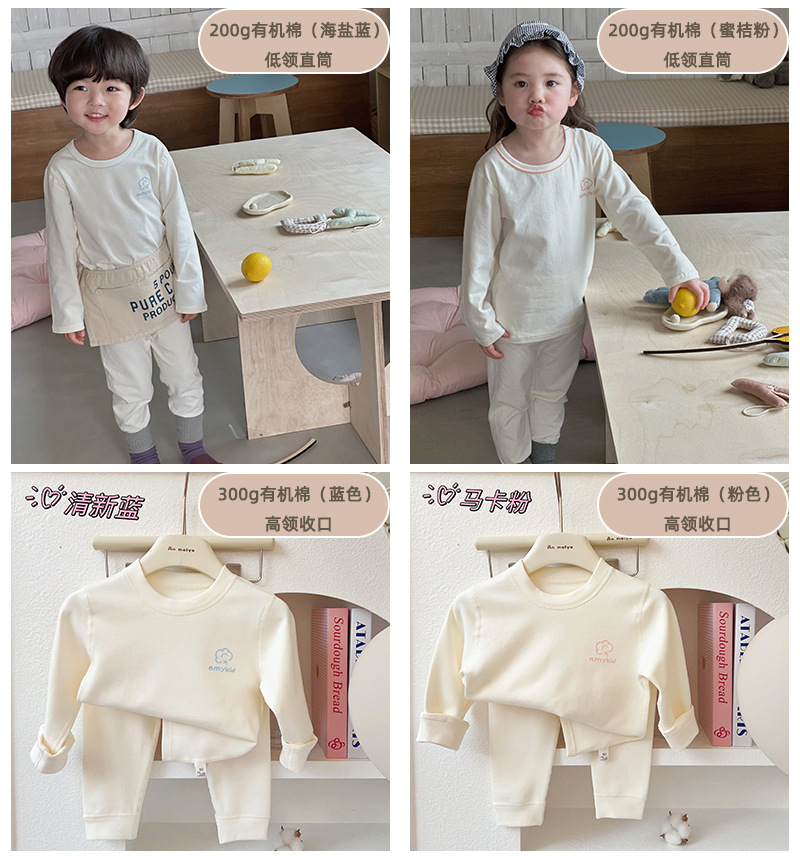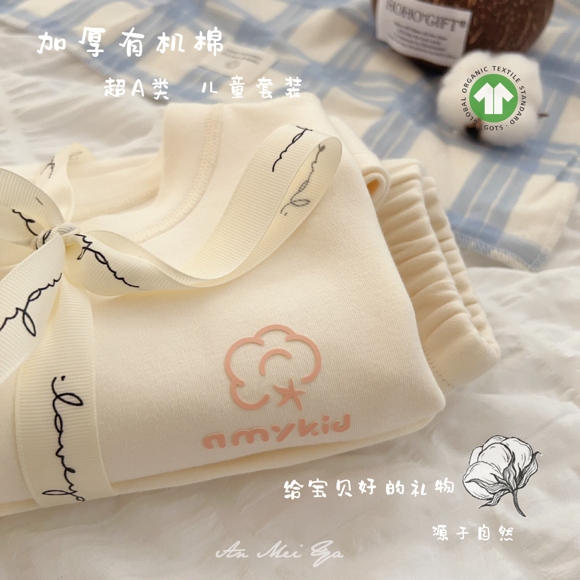 【69元起2套】安美雅儿童有机棉内衣套装 韩版男女童纯棉磨毛秋衣秋裤
