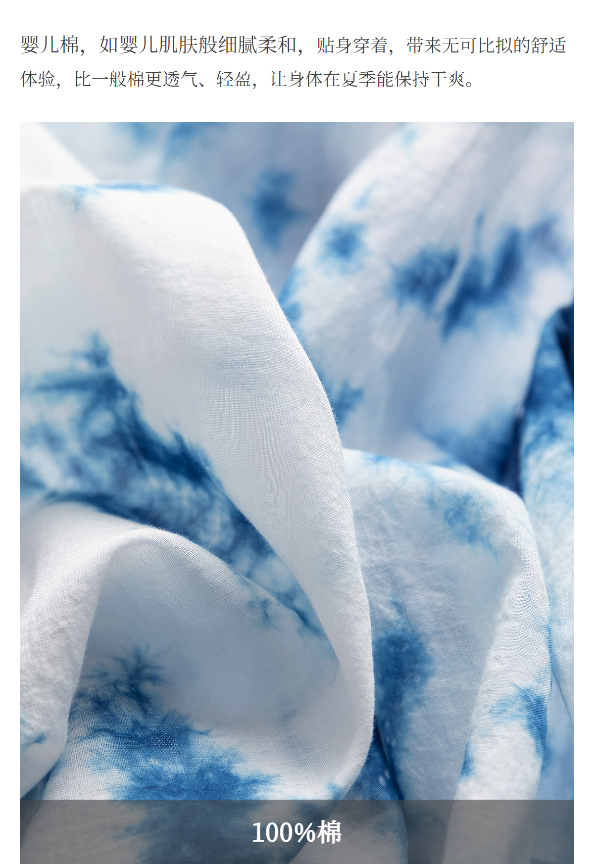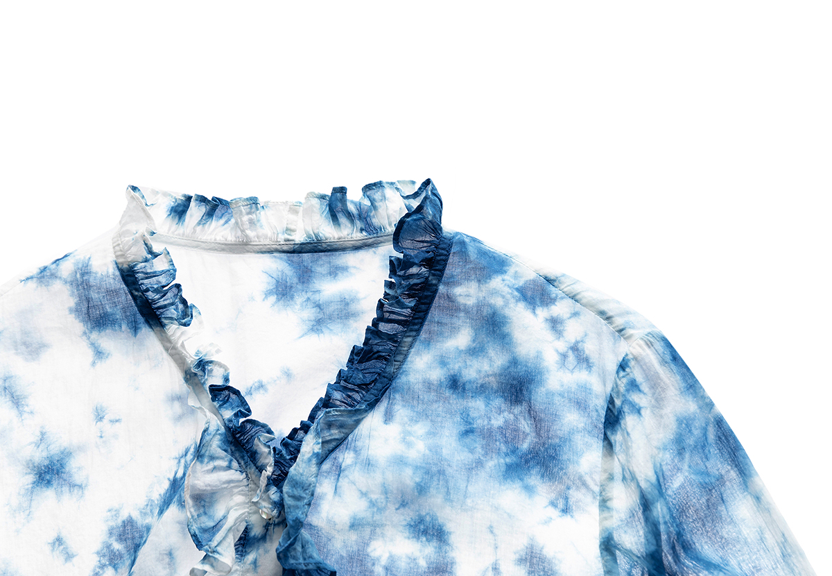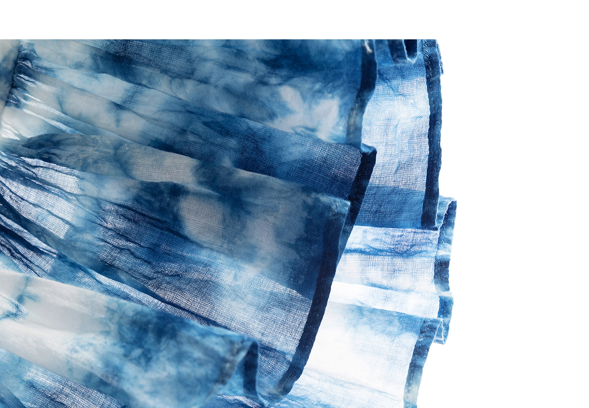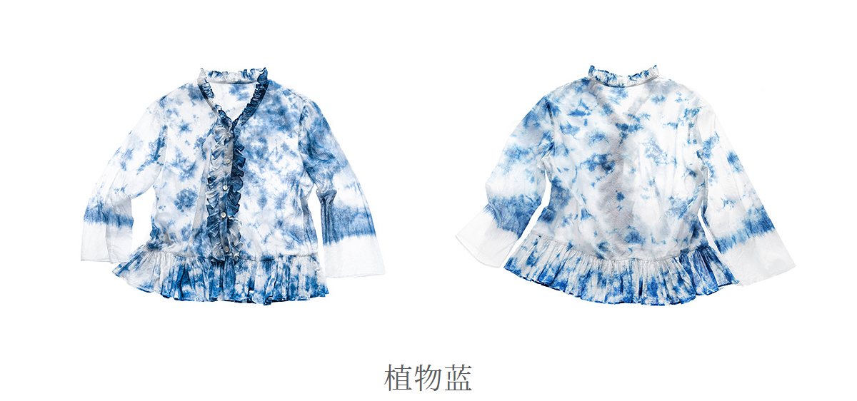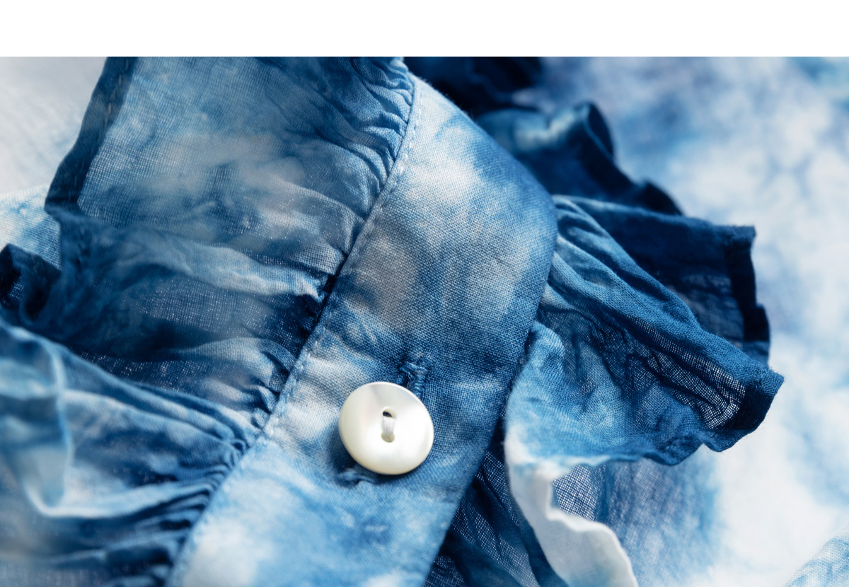 【林栖设计小店】植物染色|手工植物蓝云染优雅花边2026夏新款婴儿棉衬衣1962048