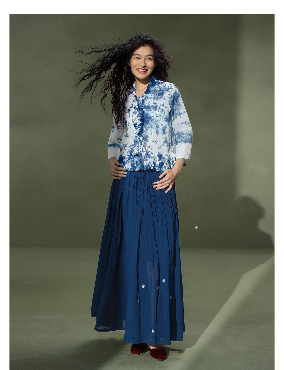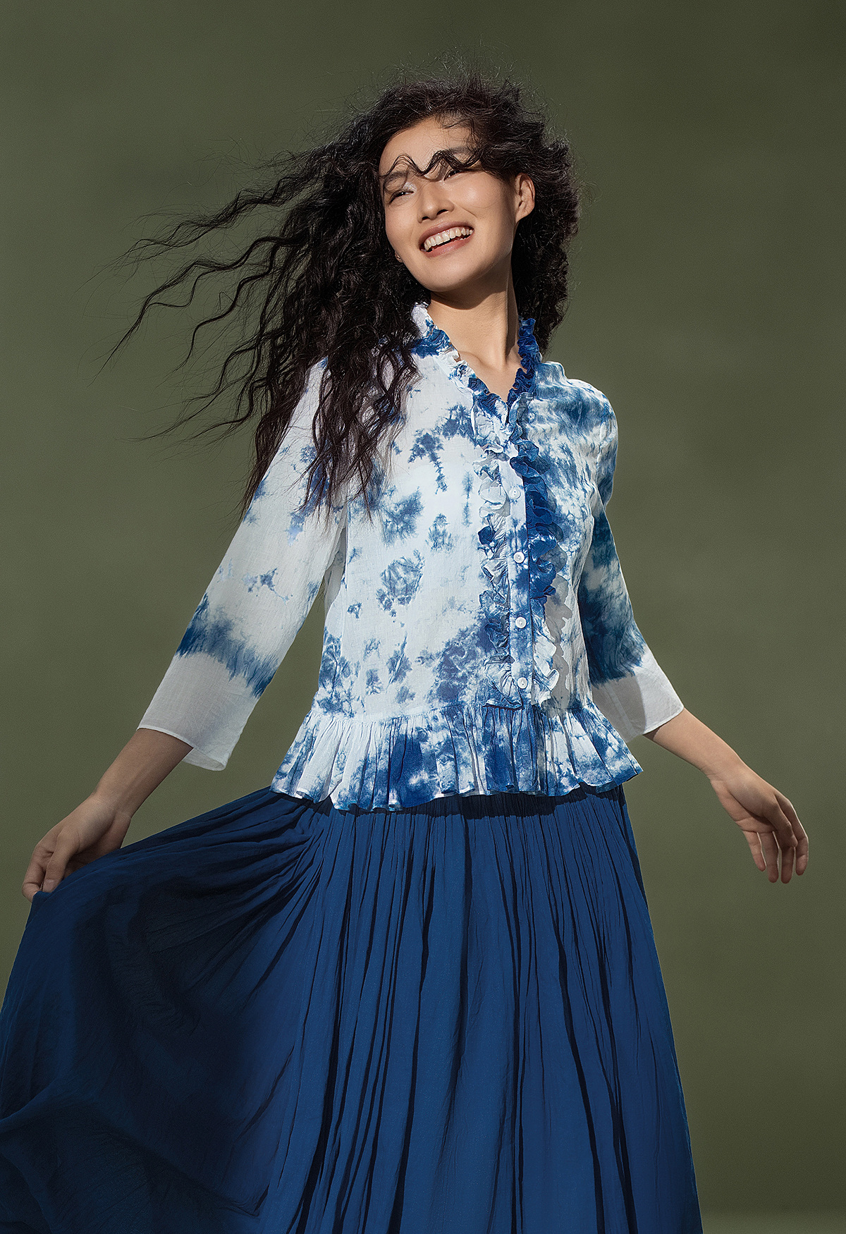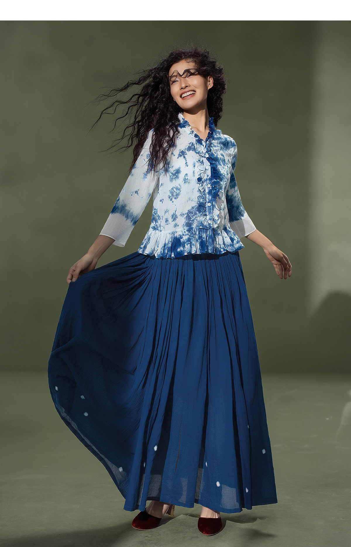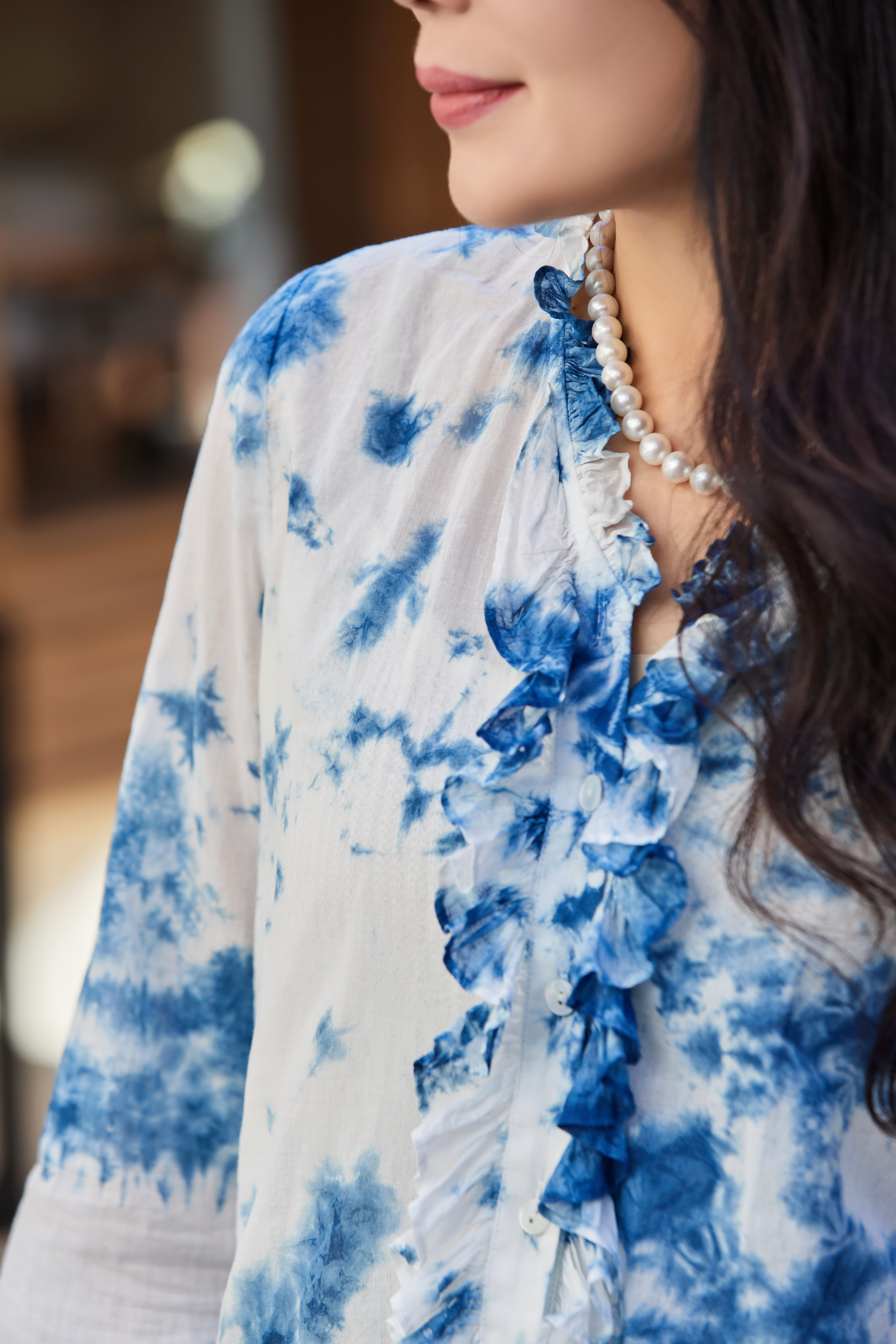 【林栖设计小店】植物染色|手工植物蓝云染优雅花边2026夏新款婴儿棉衬衣1962048