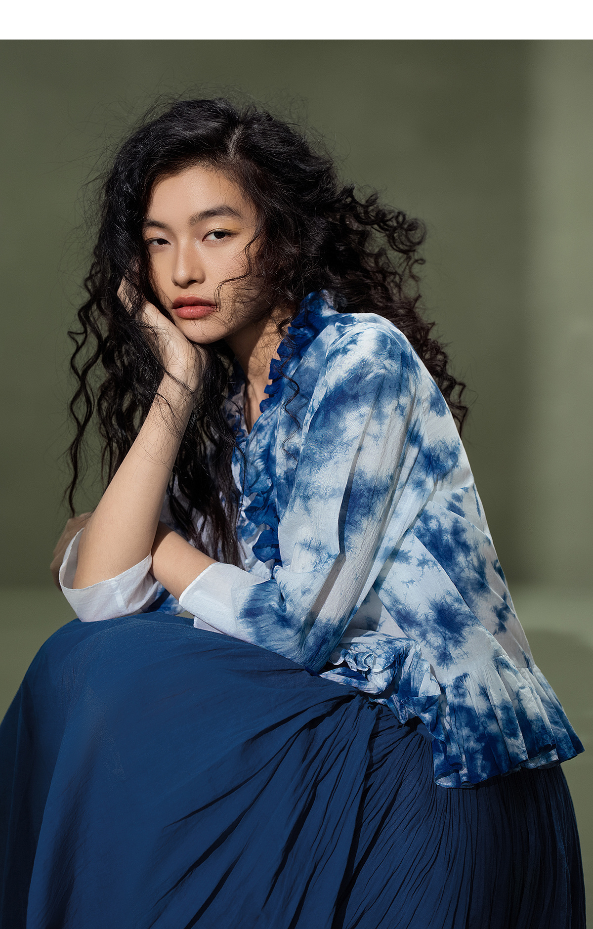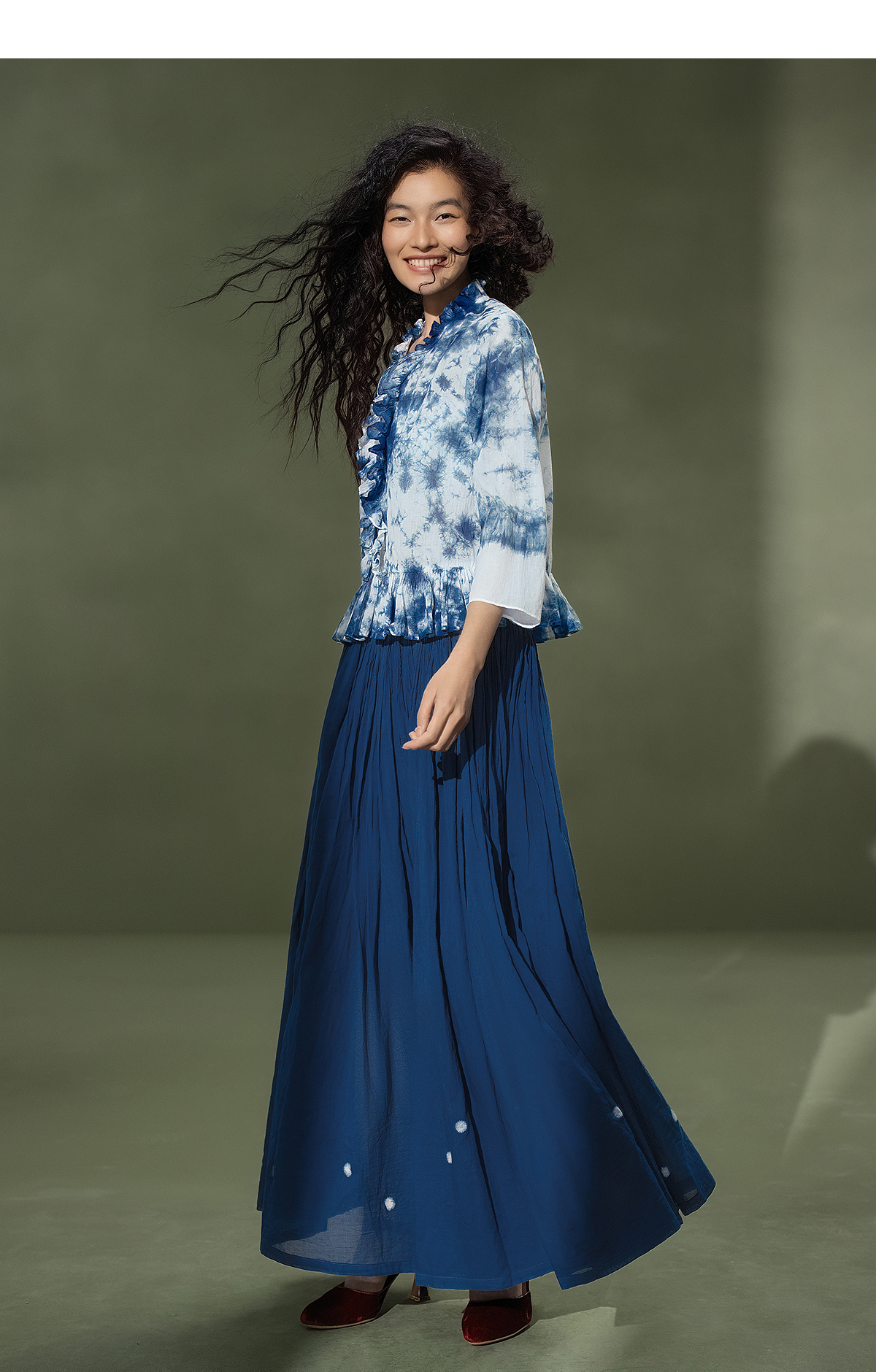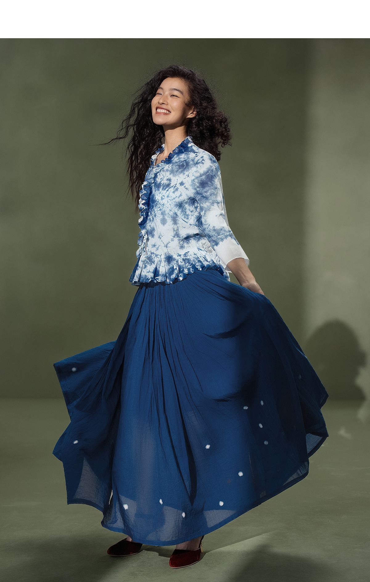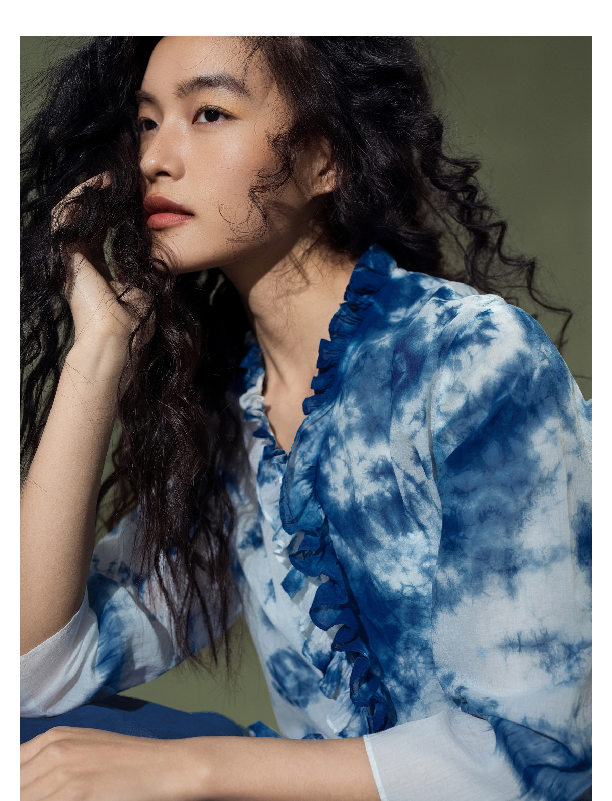 【林栖设计小店】植物染色|手工植物蓝云染优雅花边2026夏新款婴儿棉衬衣1962048
