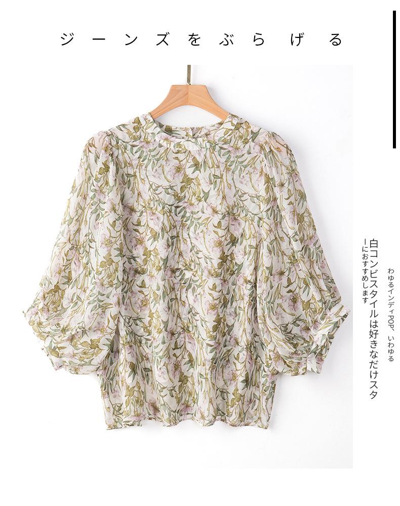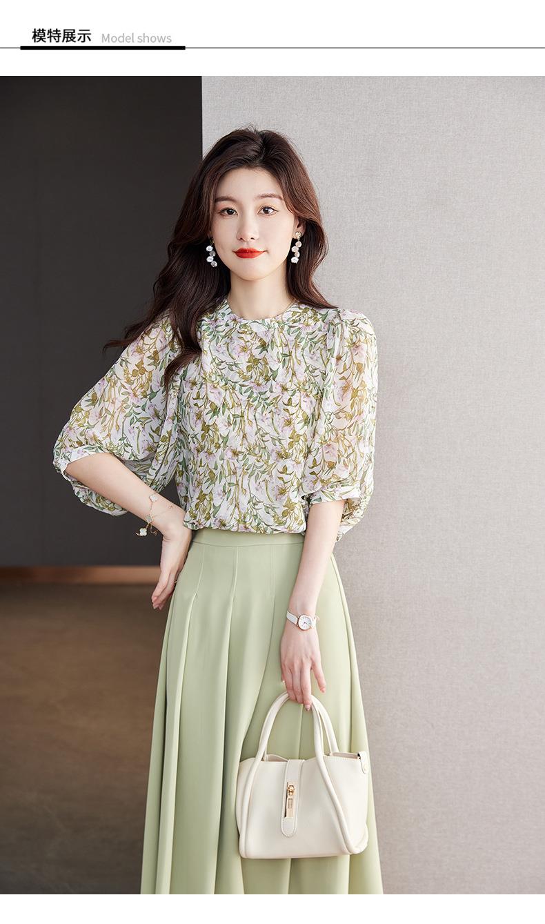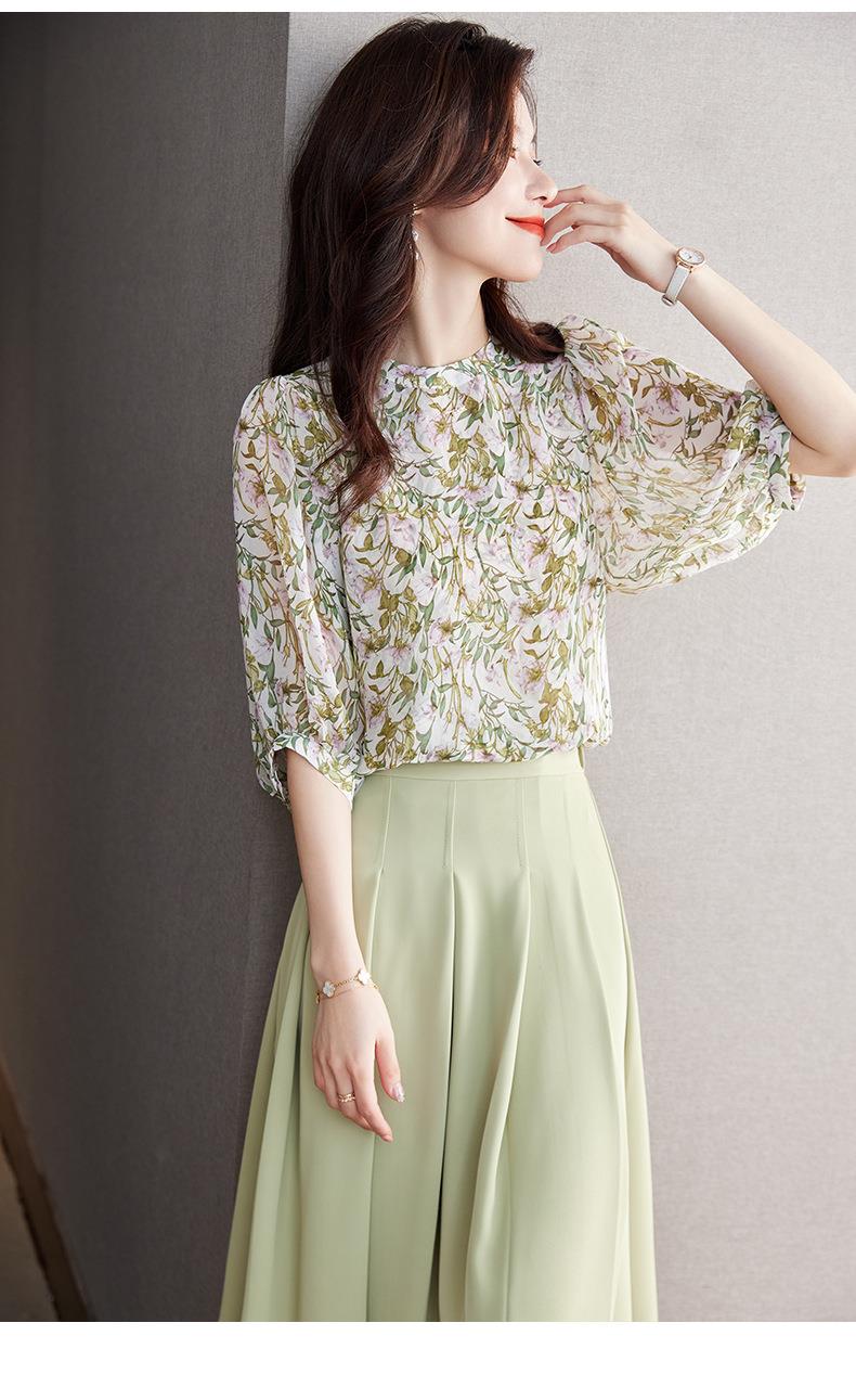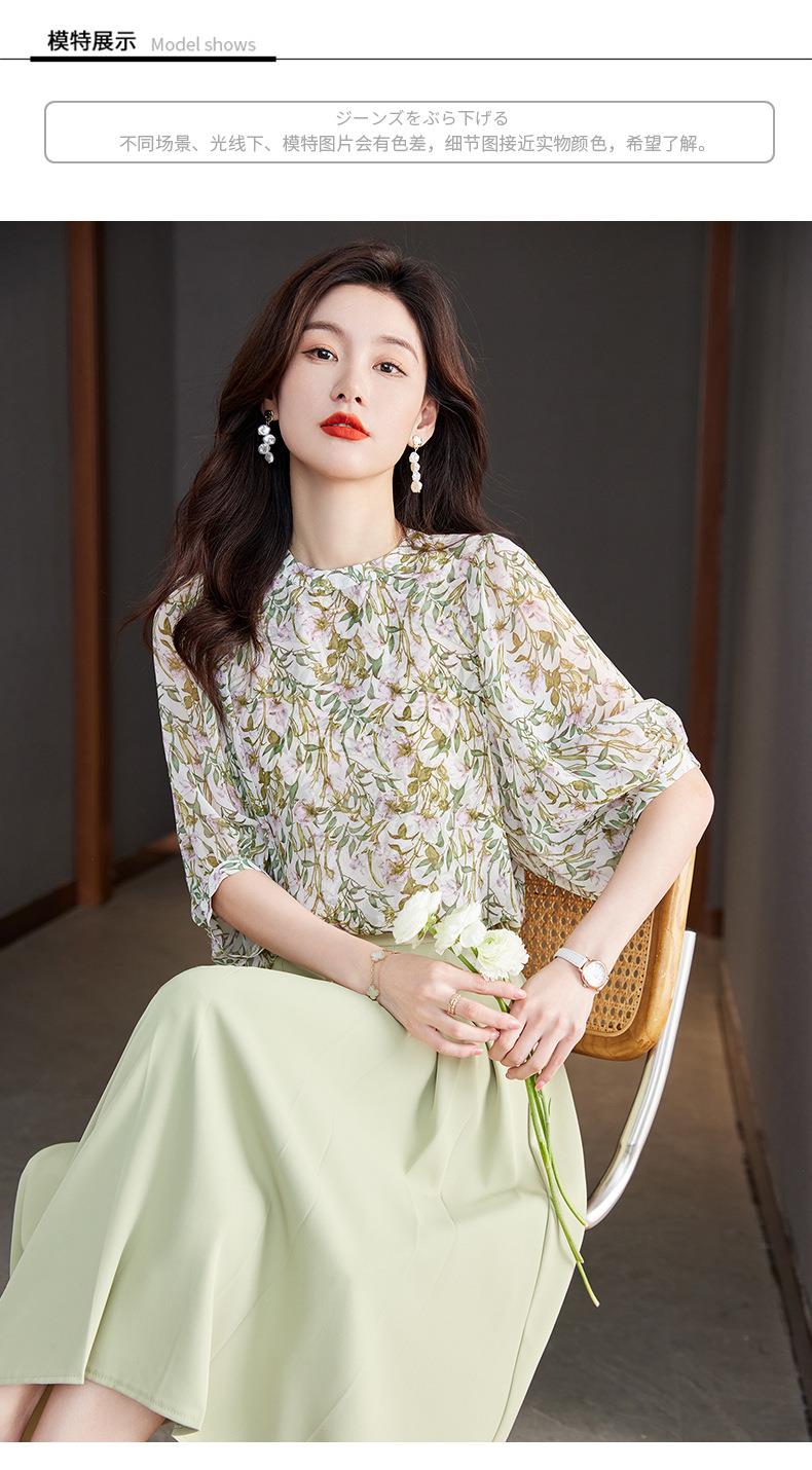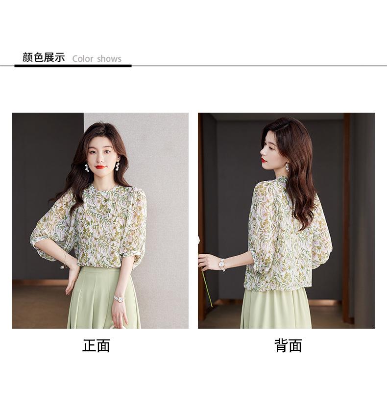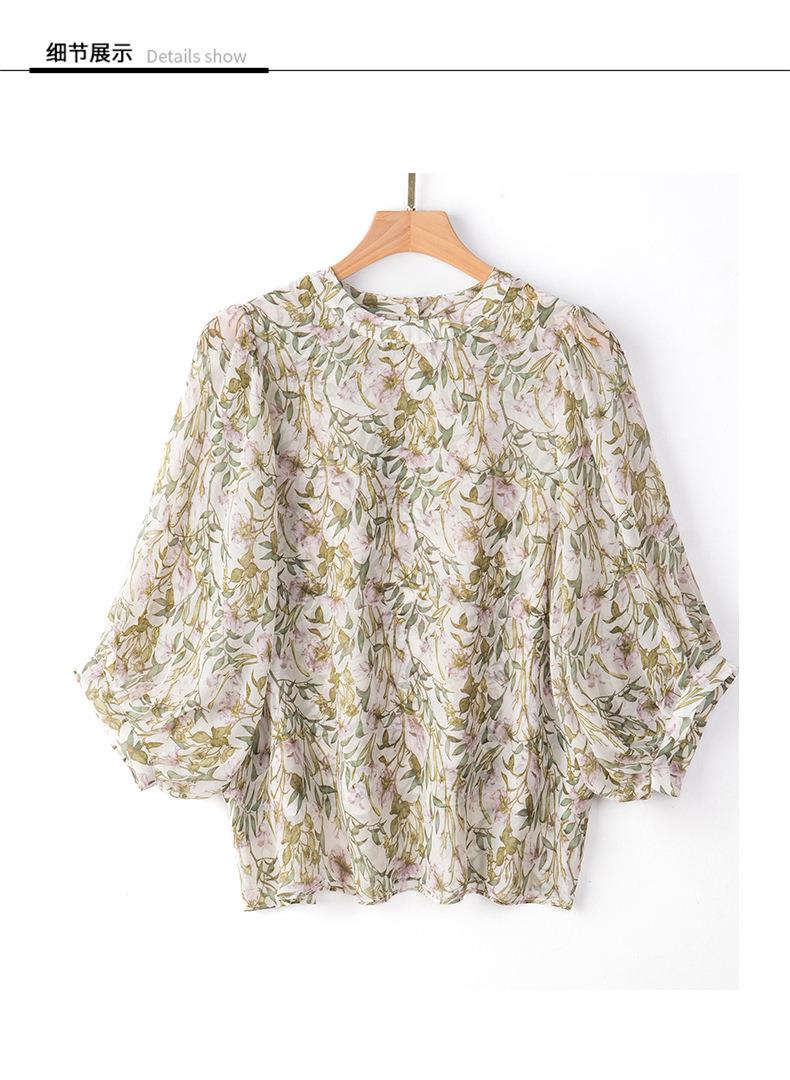 2023夏季新款雪纺衫七分袖衬衫女大码T恤圆领小衫5015