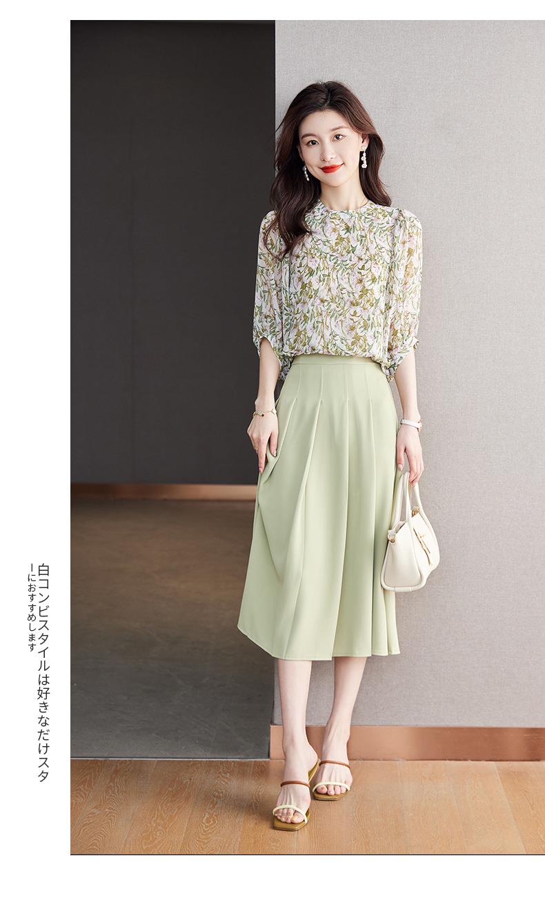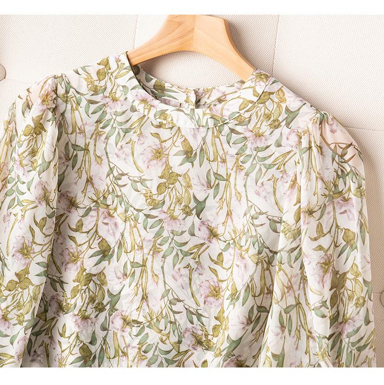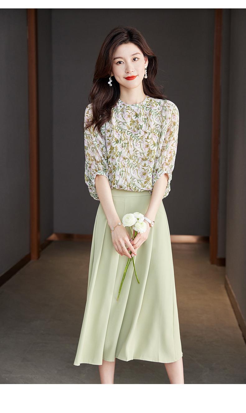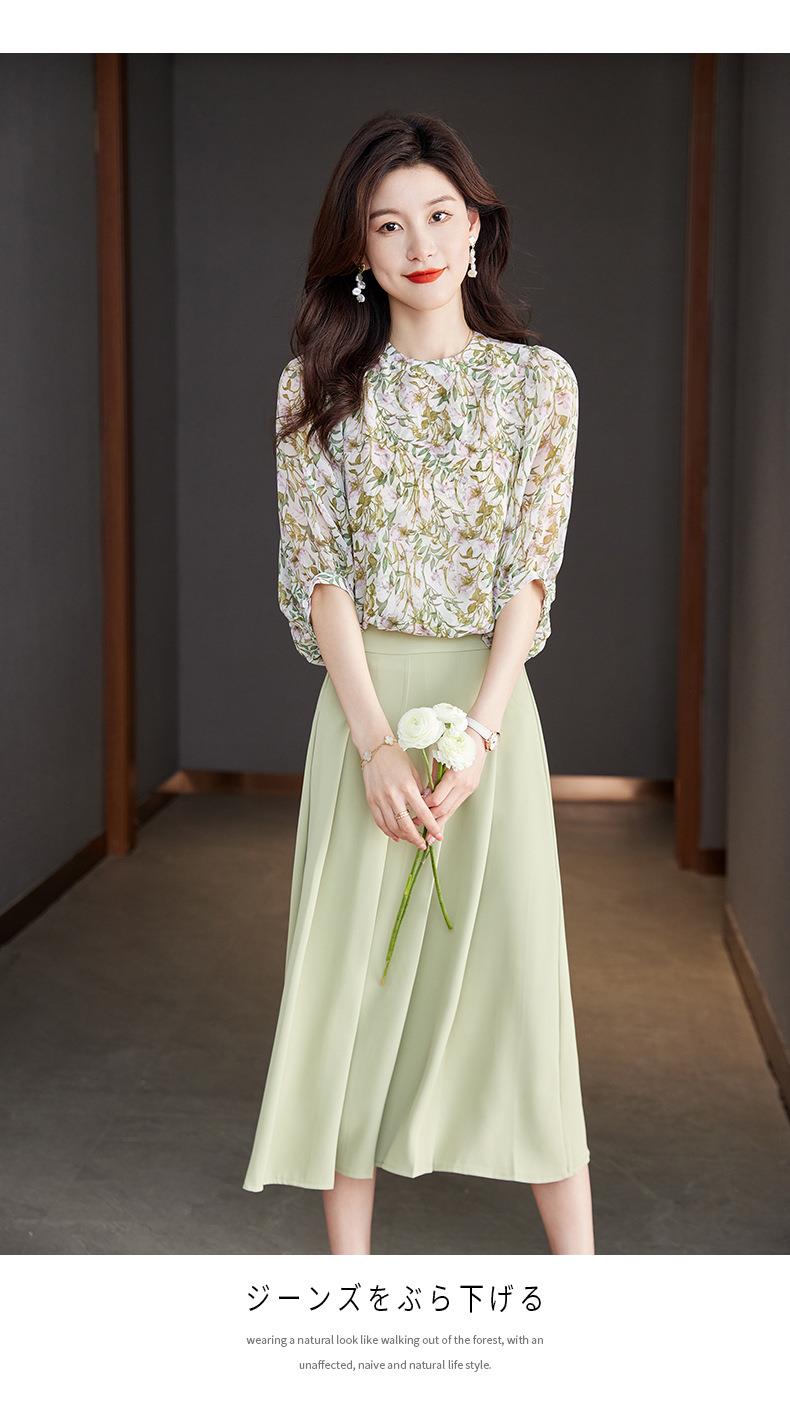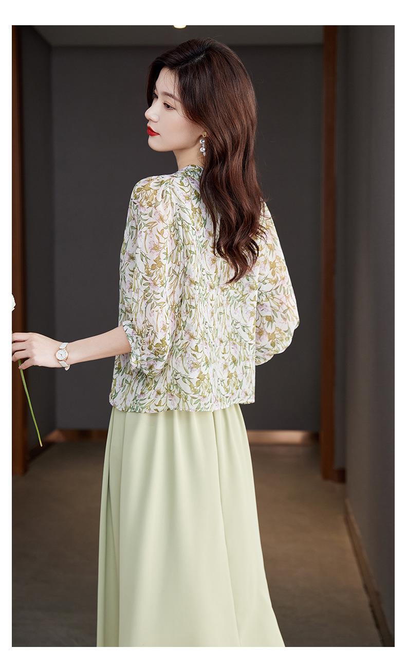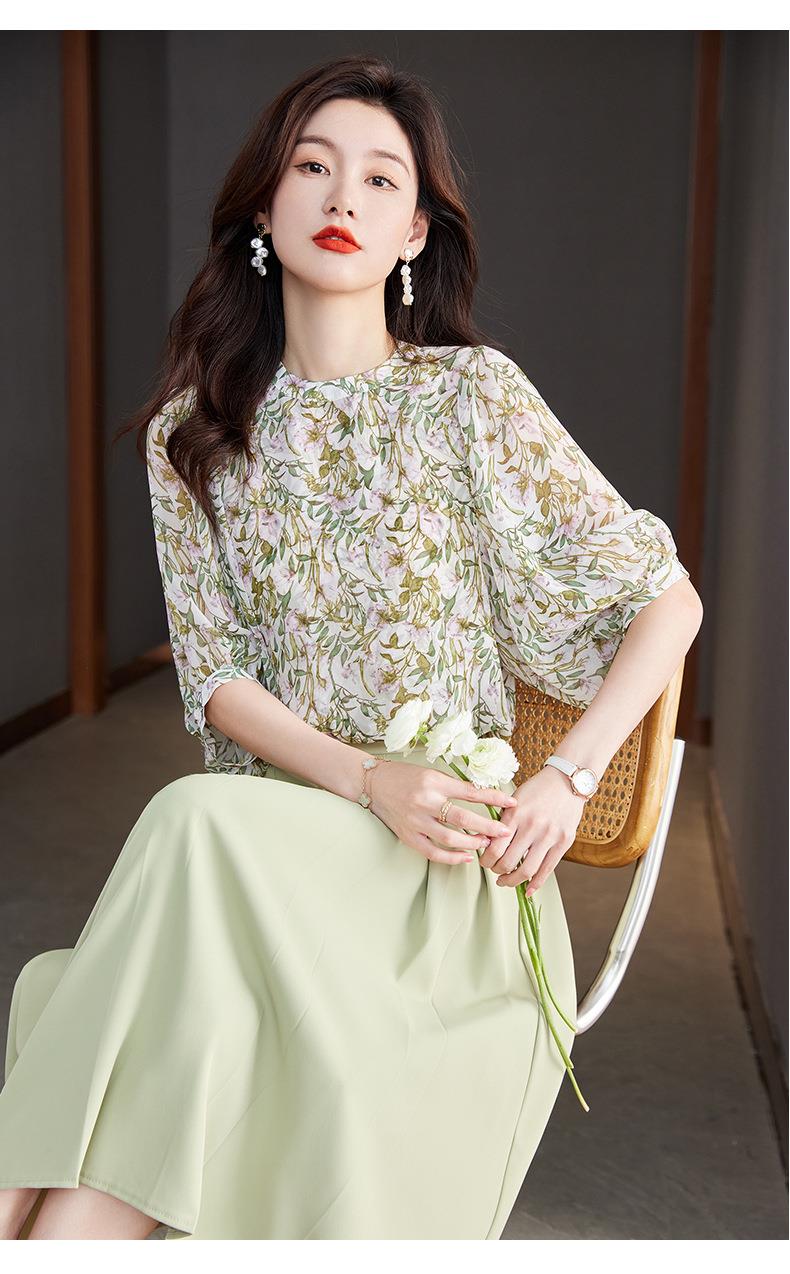 2023夏季新款雪纺衫七分袖衬衫女大码T恤圆领小衫5015
